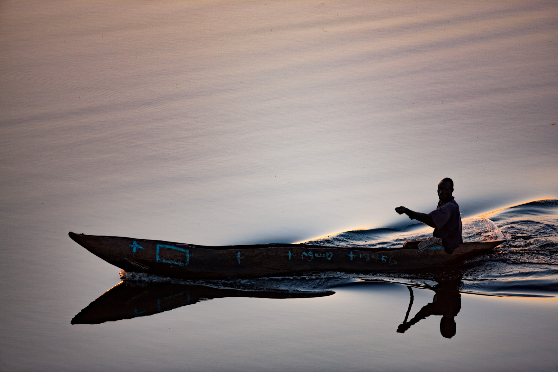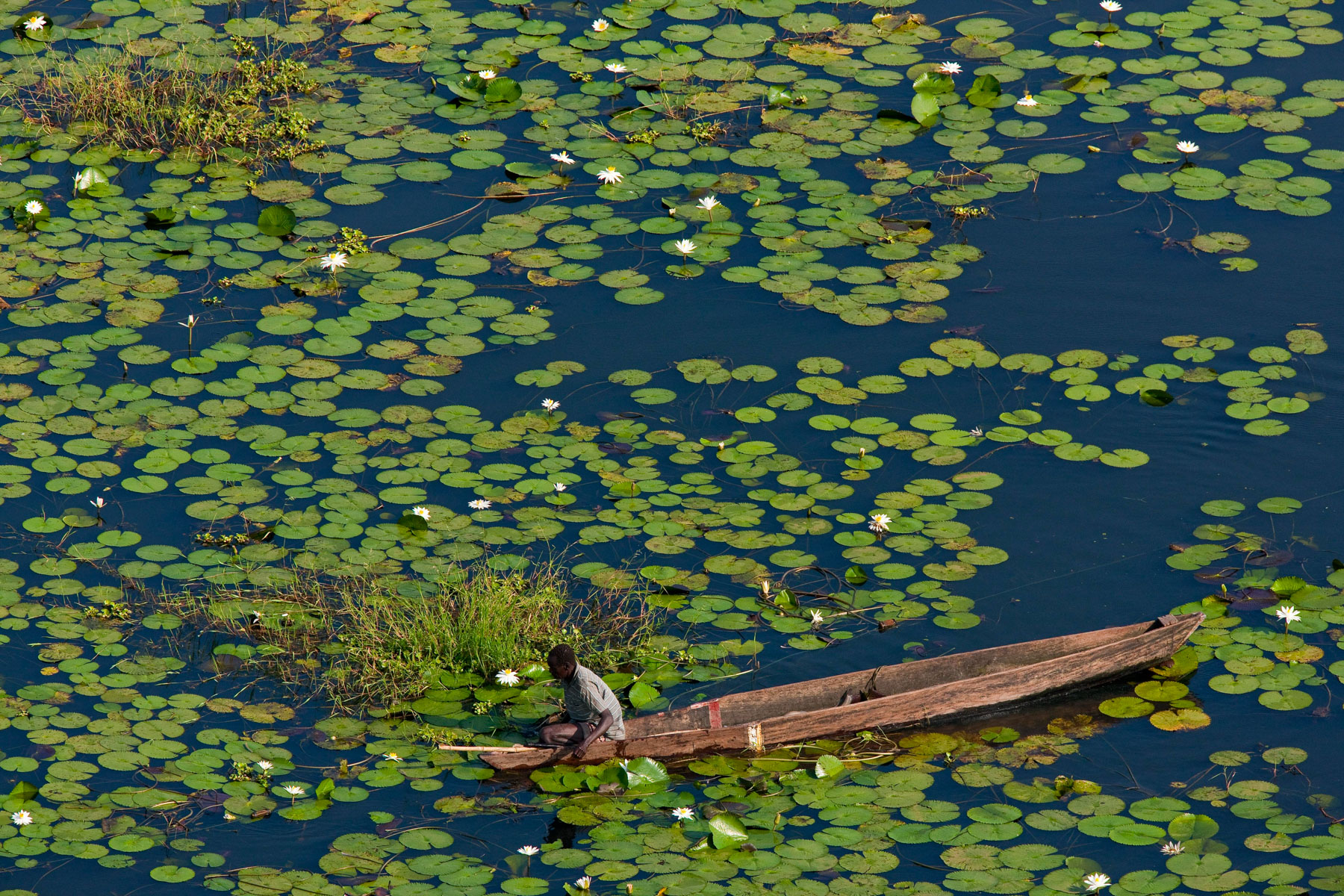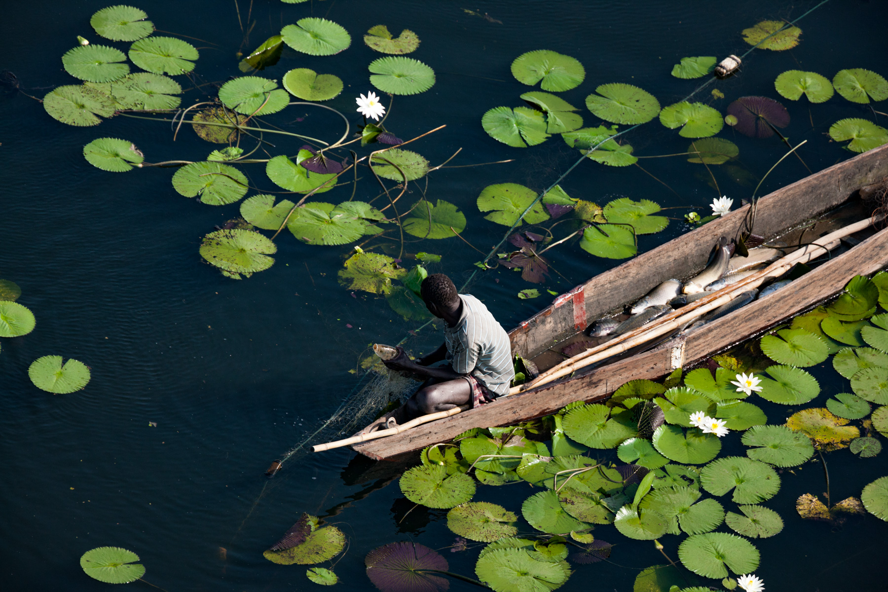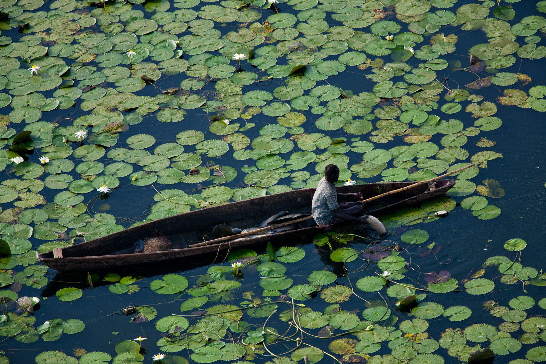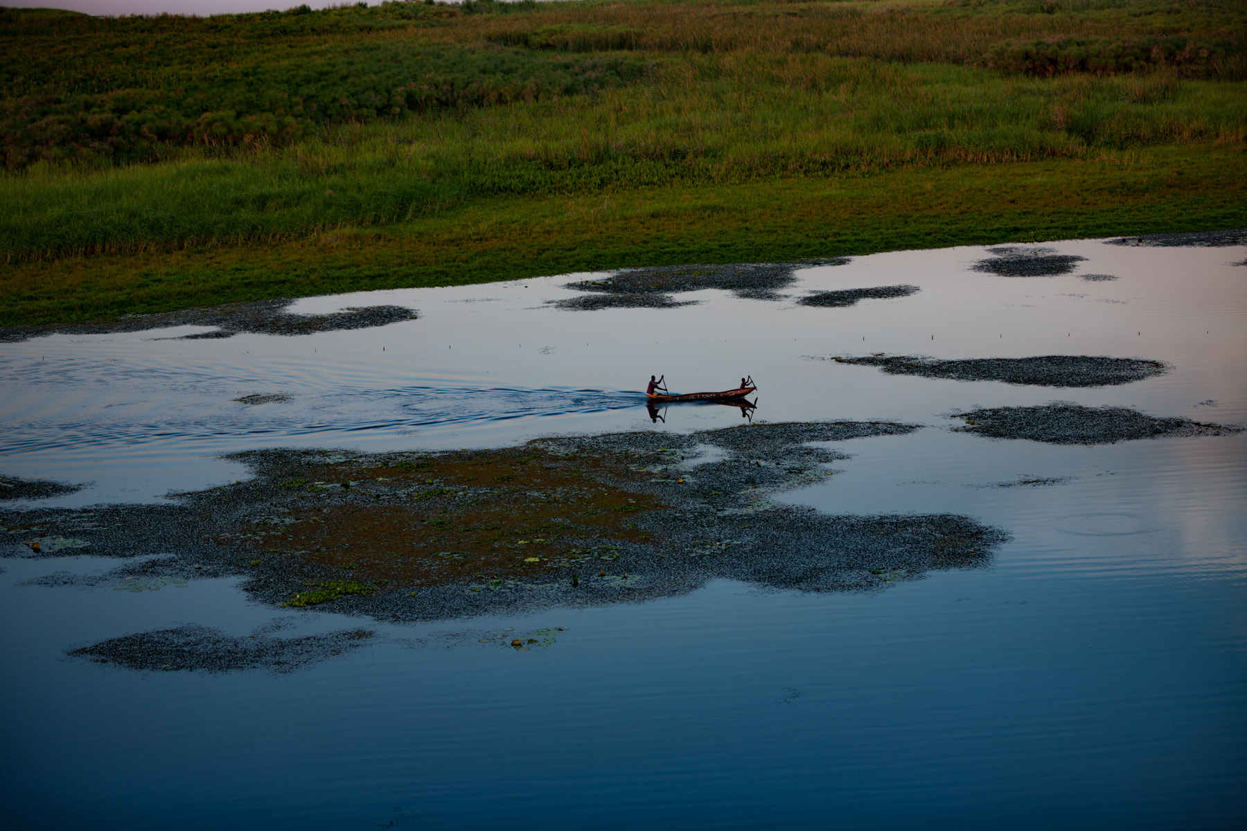 Pirogue sur un lac près de Juet, état de Jonglei, Soudan du Sud (6°43'17.07"N - 31°21'4.07"E)