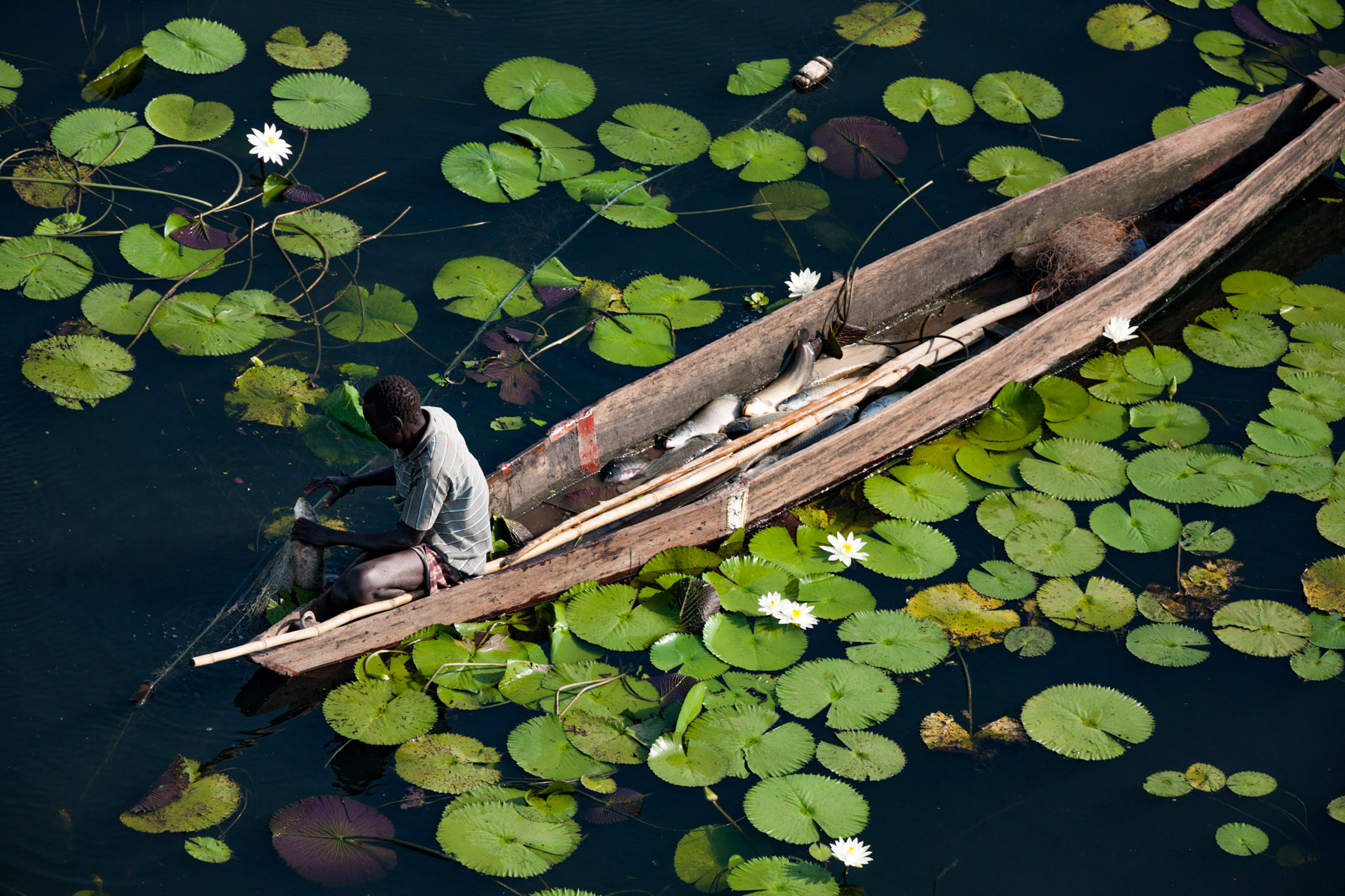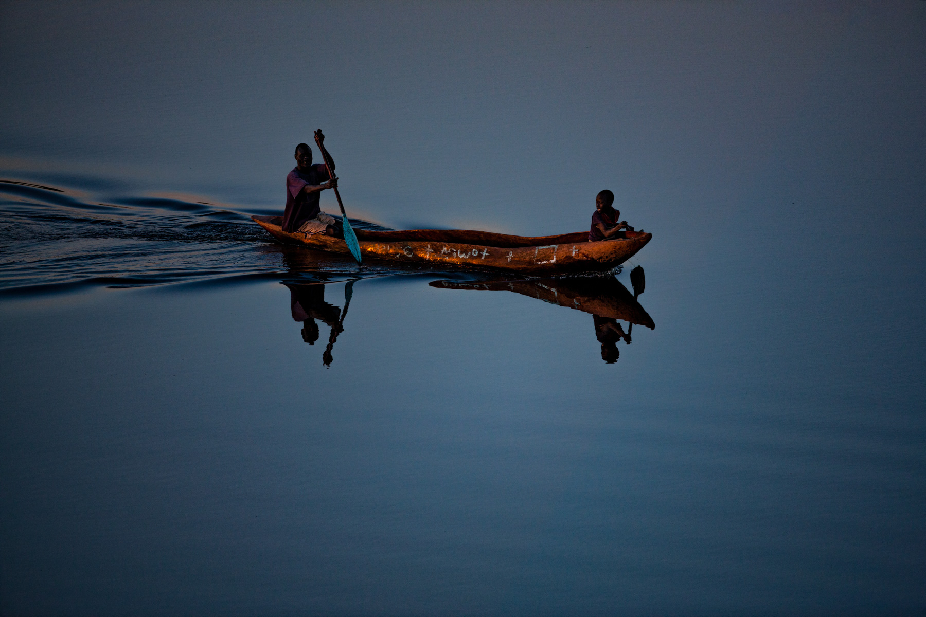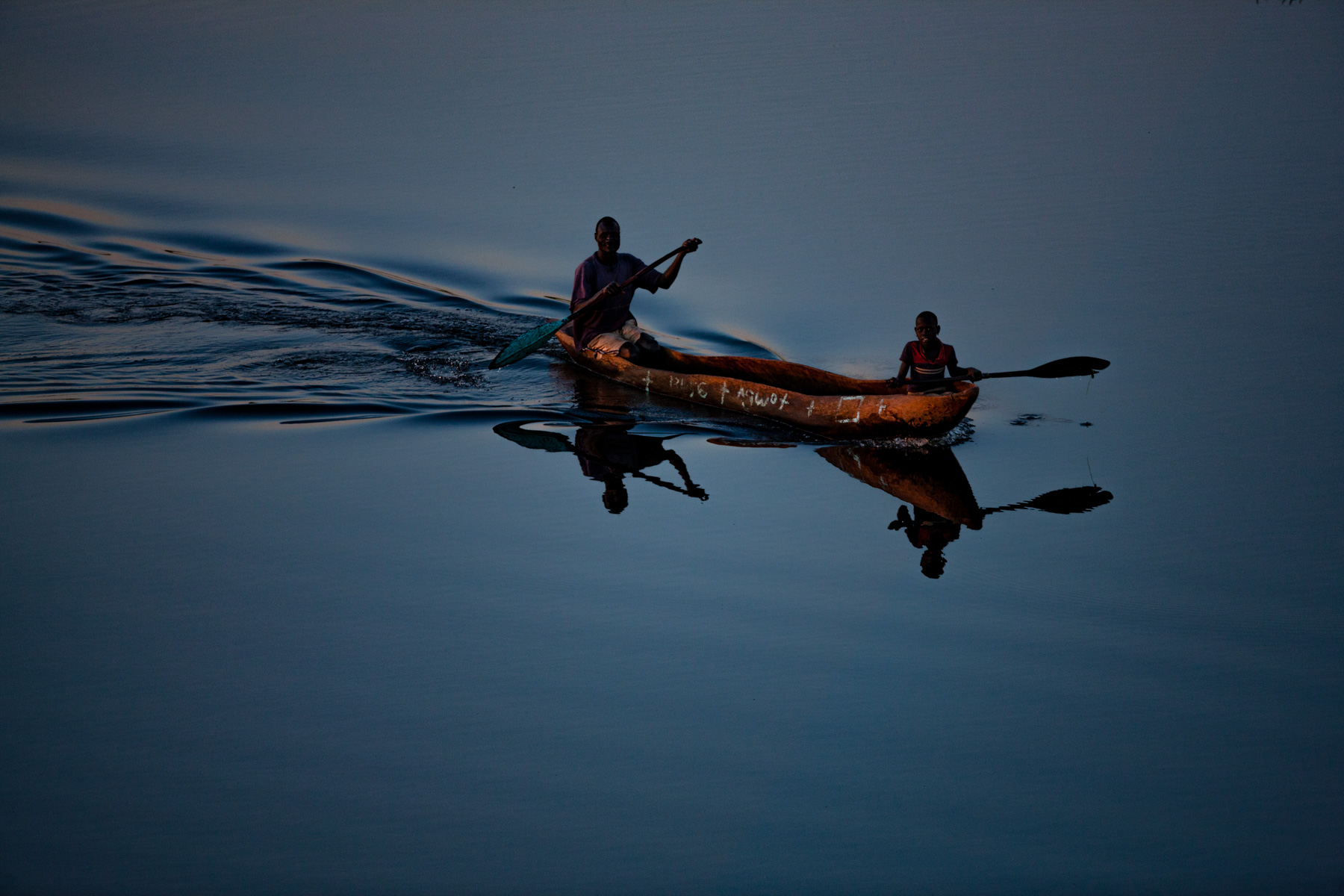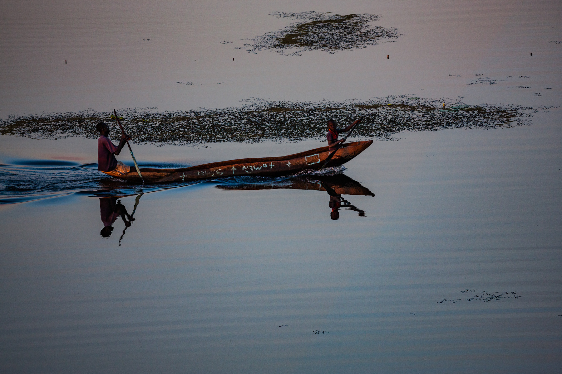 Pirogue sur un lac près de Juet, état de Jonglei, Soudan du Sud (6°43'17.07"N - 31°21'4.07"E)