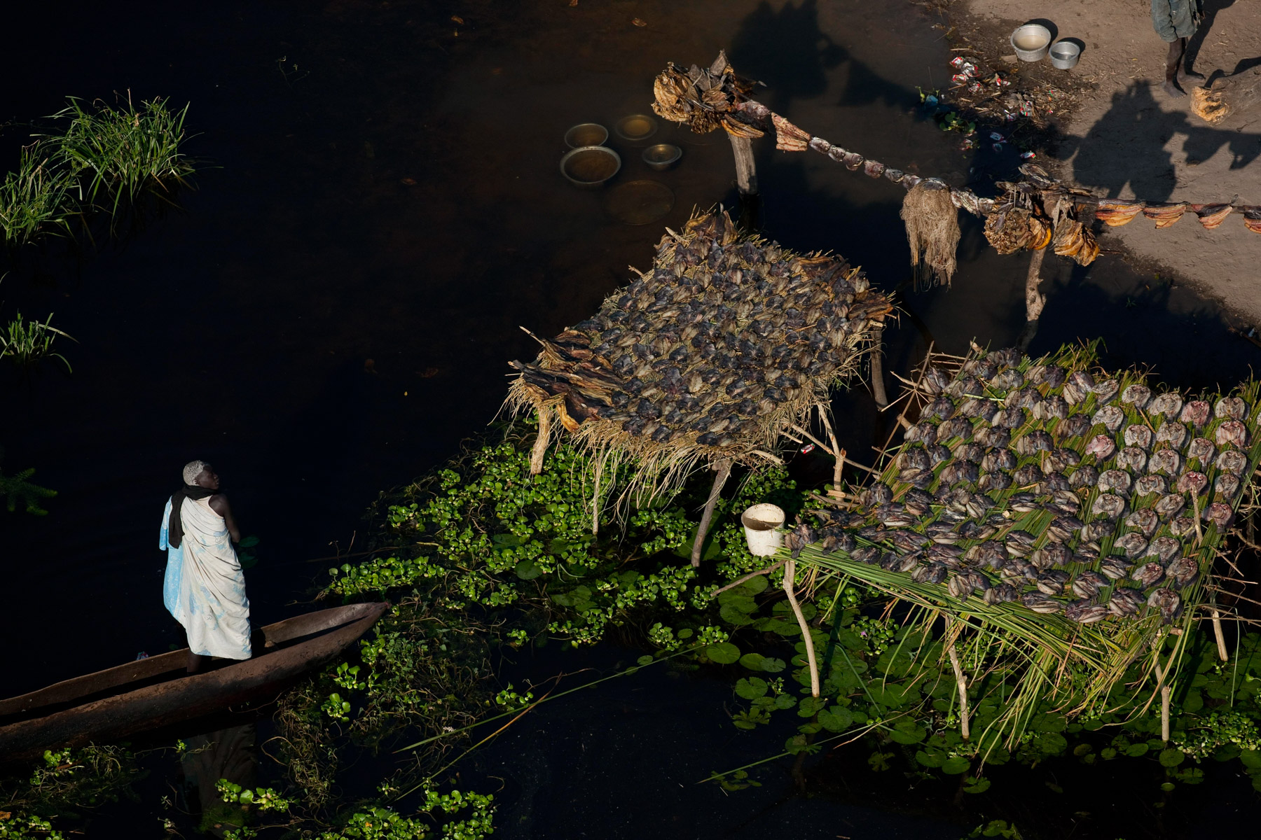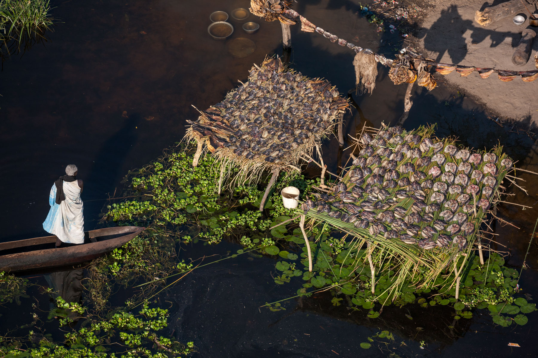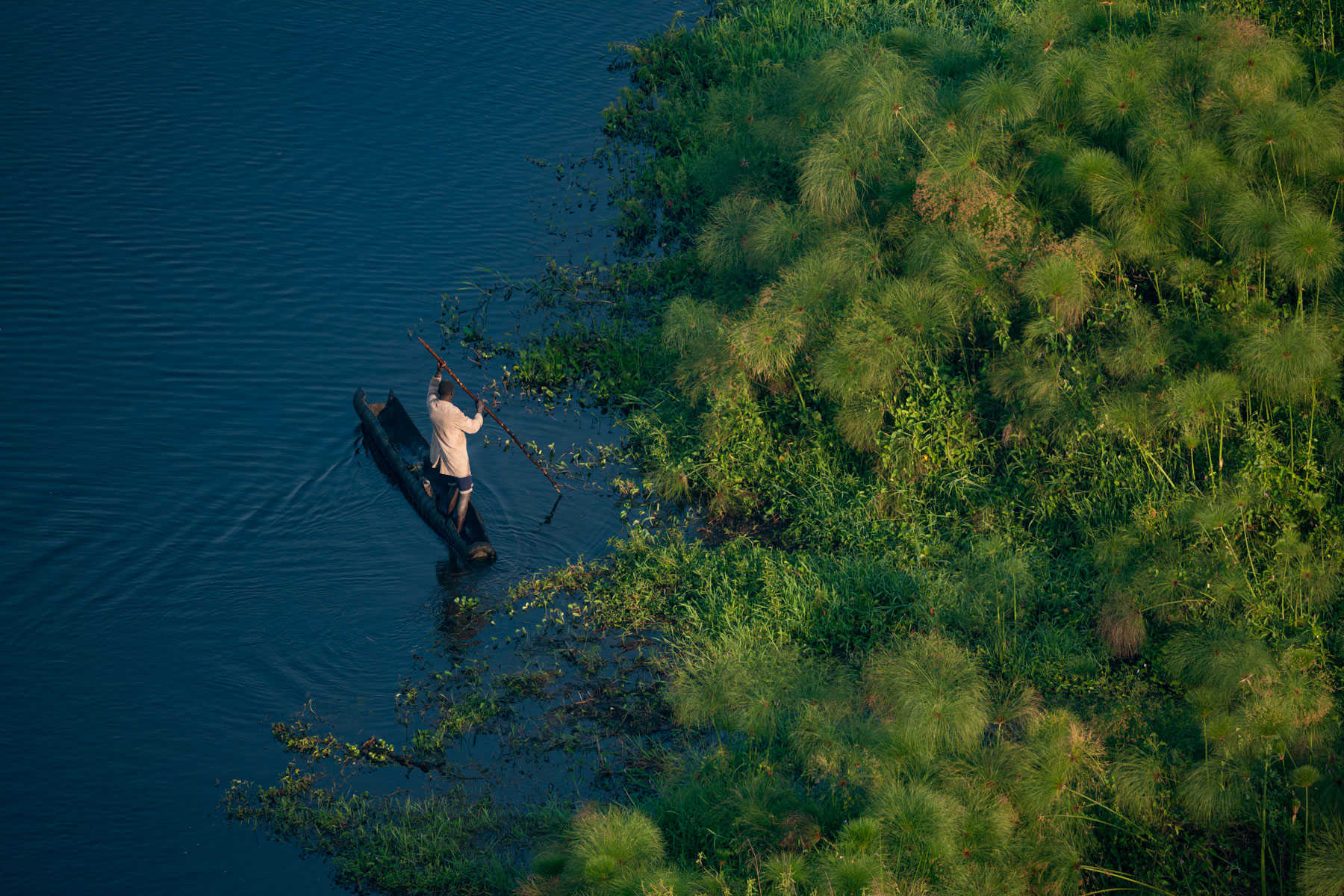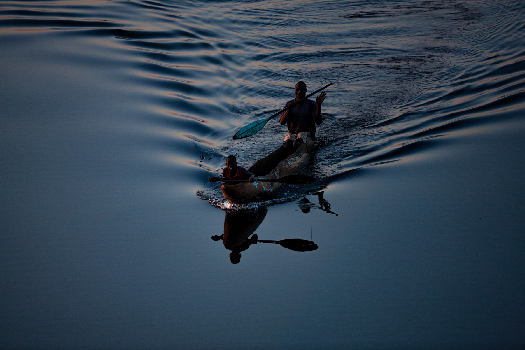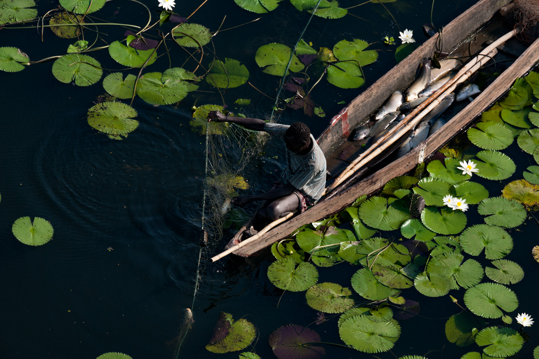 Pirogue sur un lac près de Juet, état de Jonglei, Soudan du Sud (6°43'17.07"N - 31°21'4.07"E)