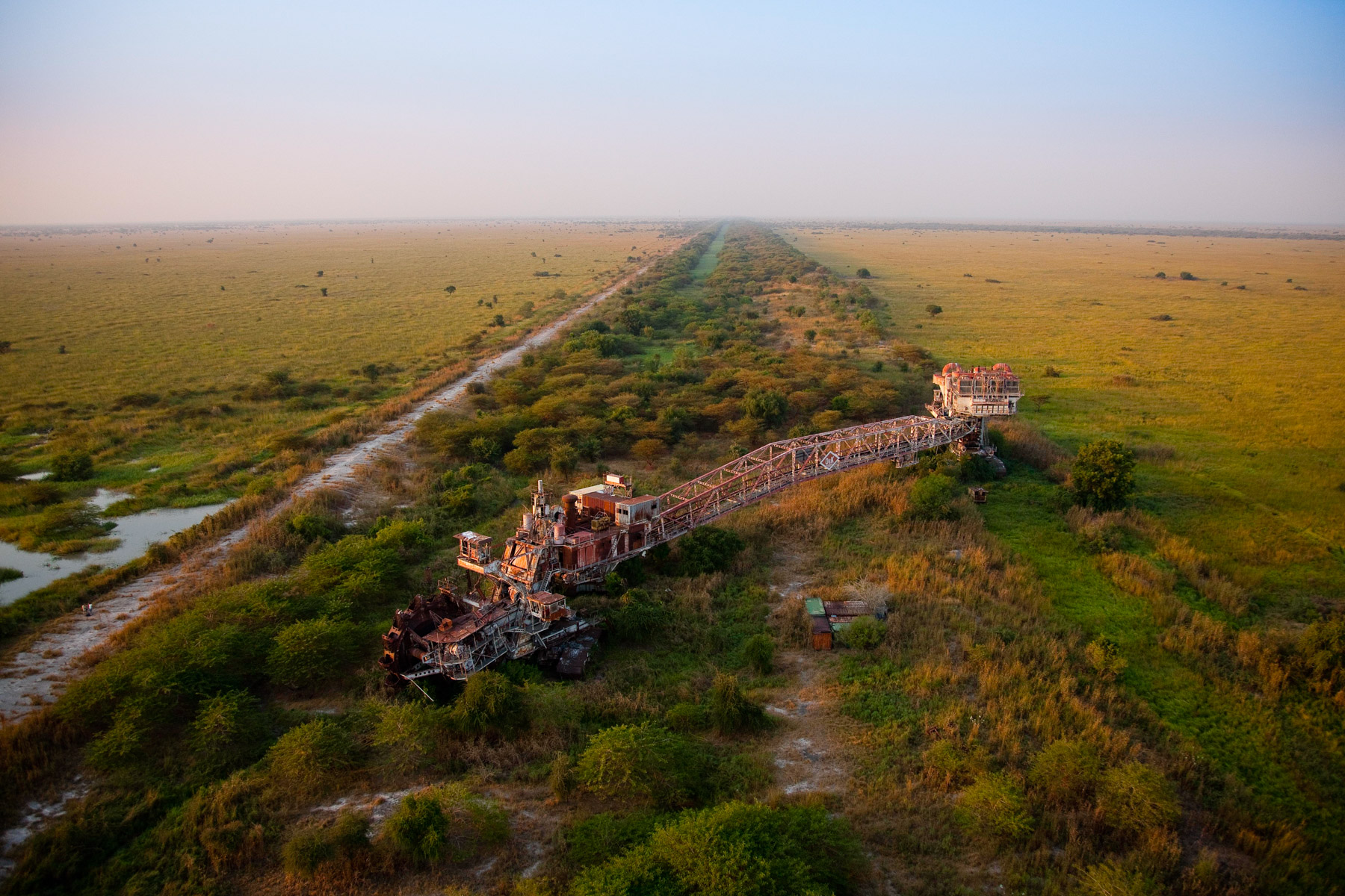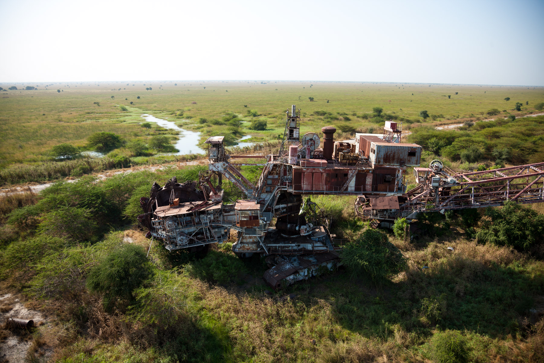 Excavatrice du projet de canal de Jonglei abandonné, état de Jonglei, Soudan du Sud (7° 0'47.44"N- 31°30'29.31"E)