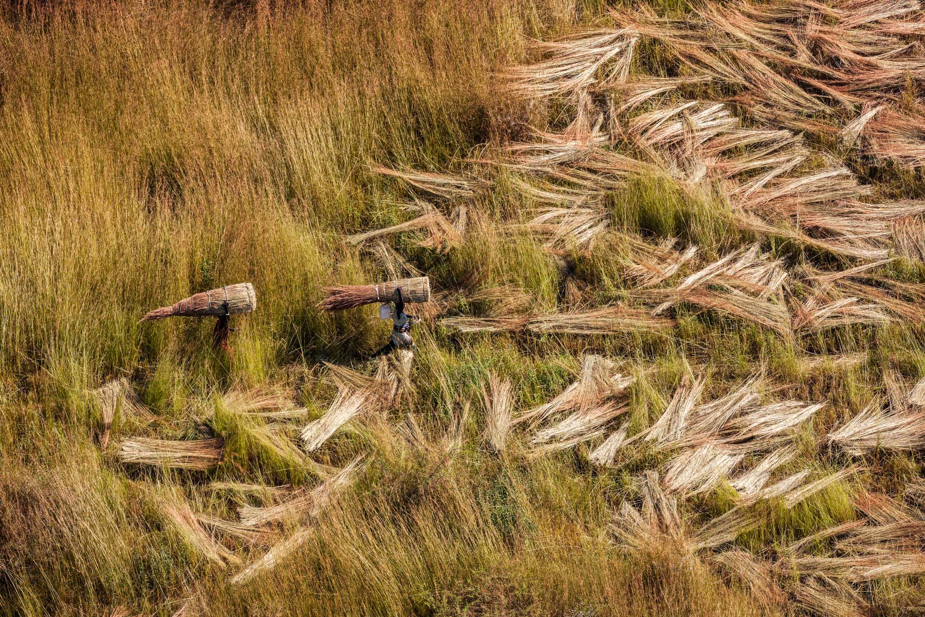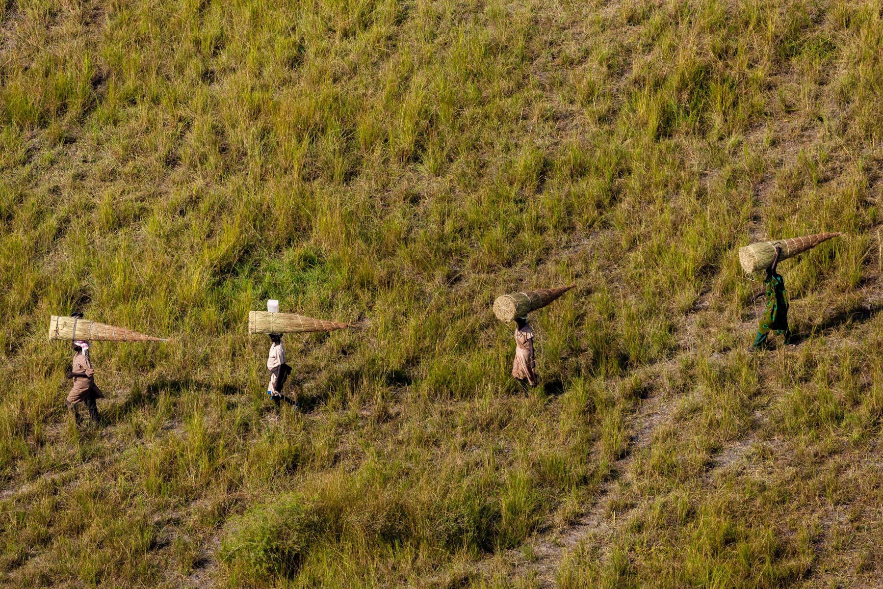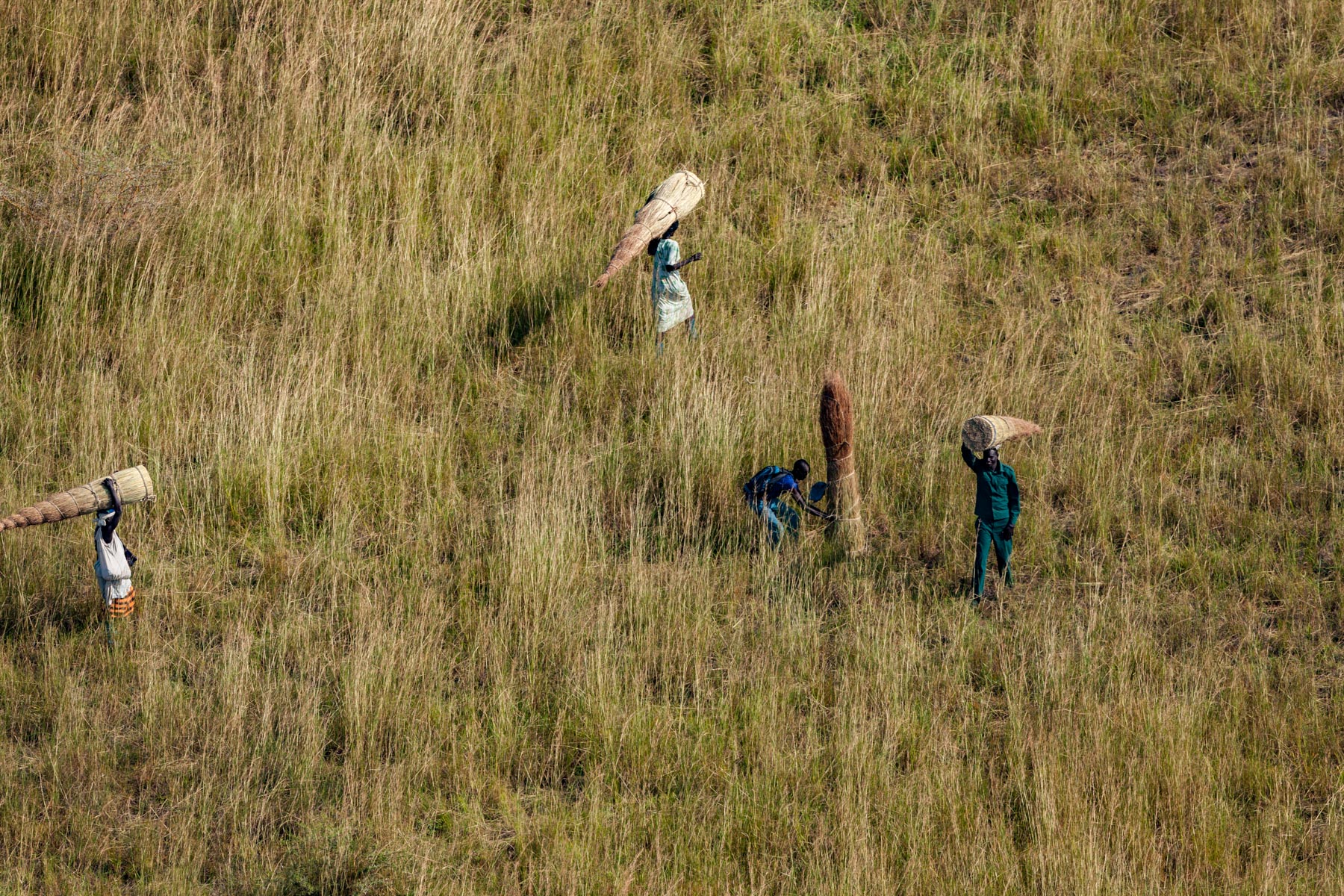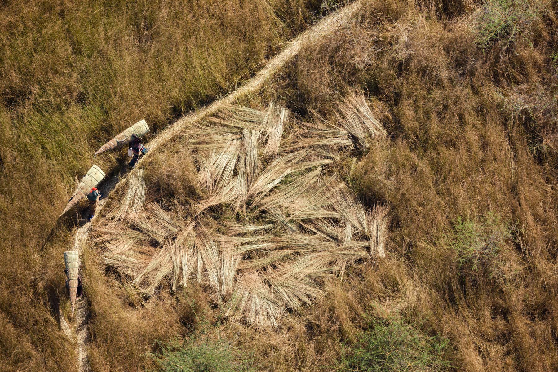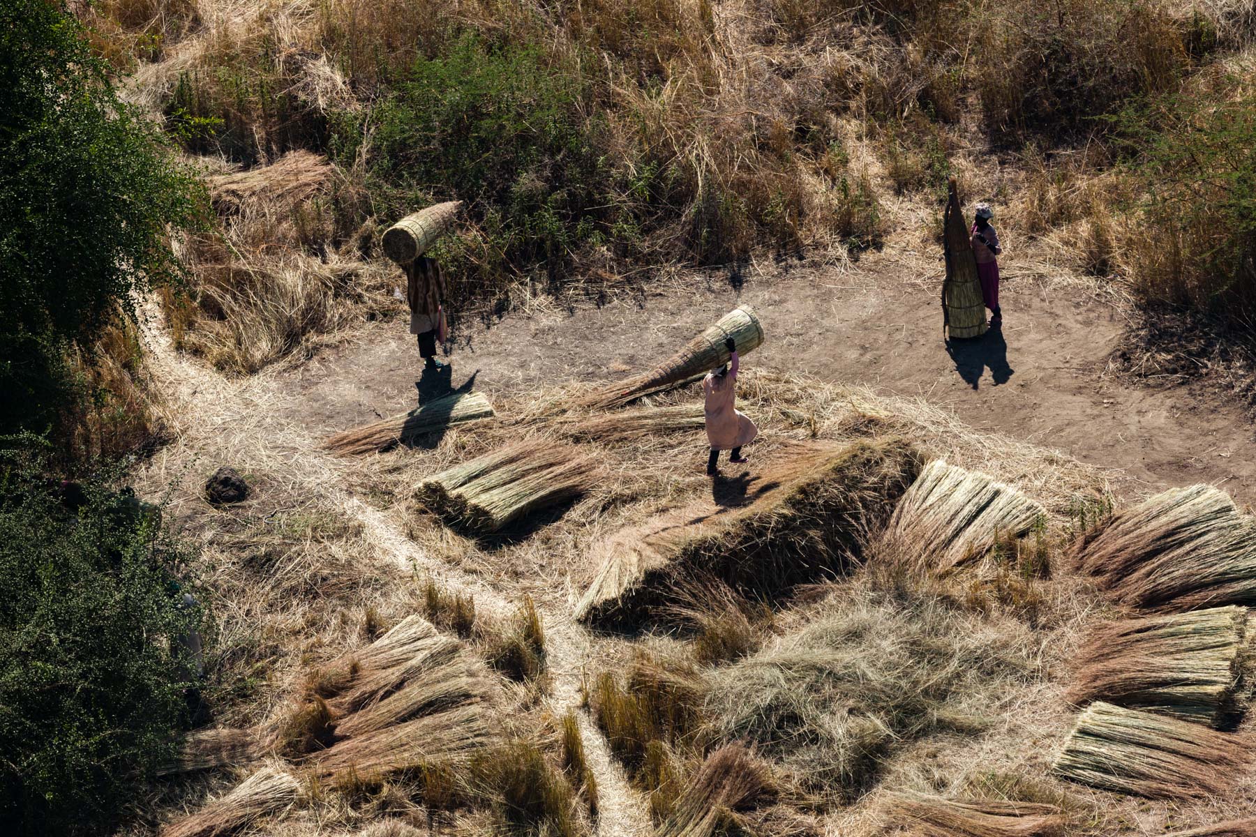 Coupeurs de roseaux, près de Bor, état de Jonglei, Soudan du Sud (6°28' N - 31°34' E).