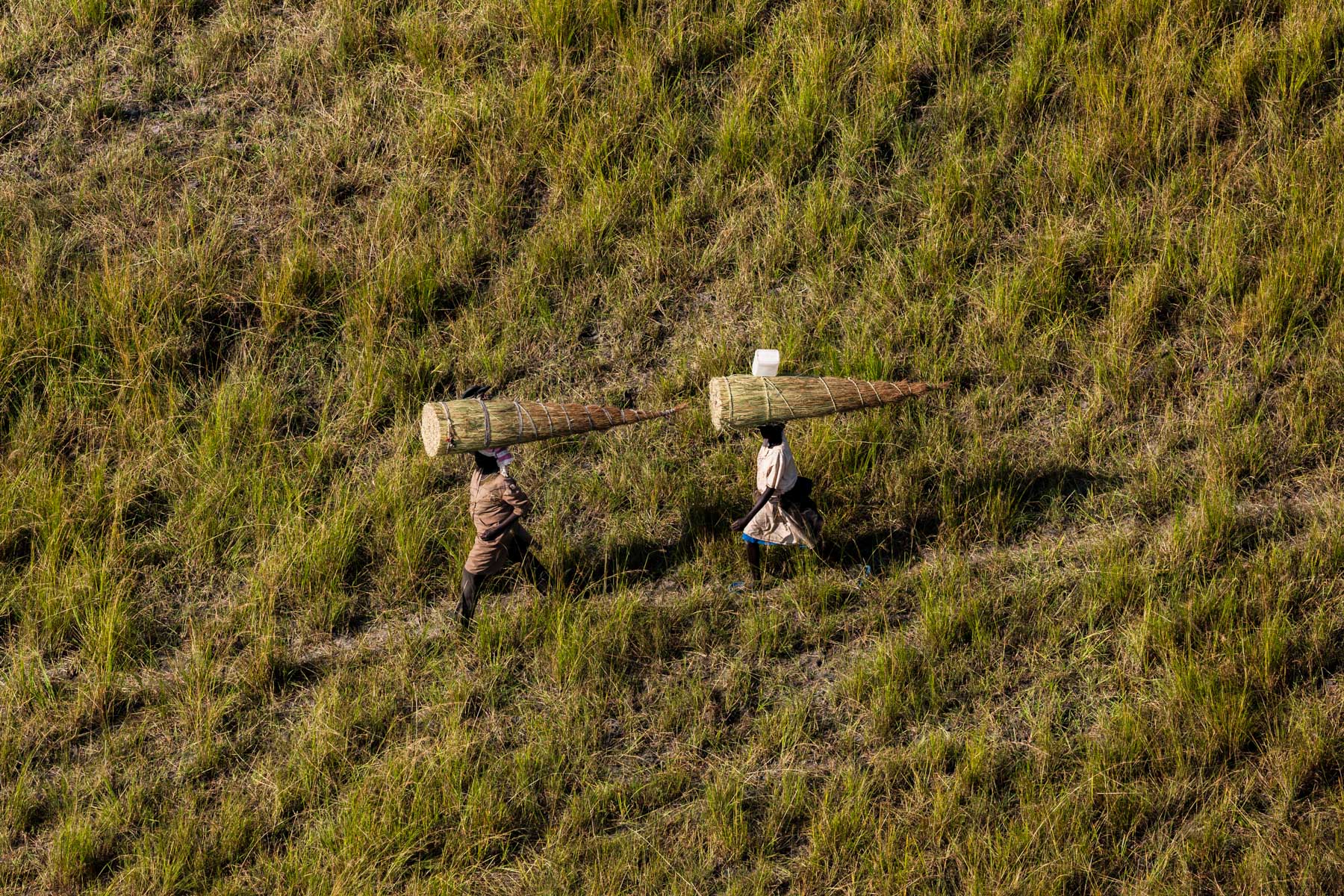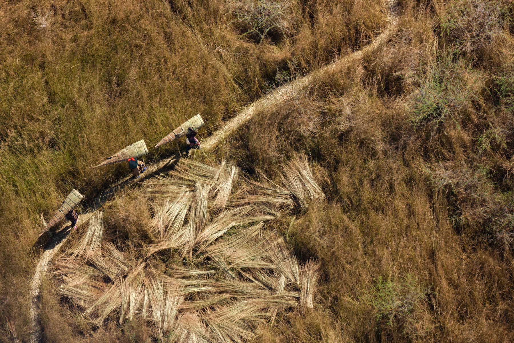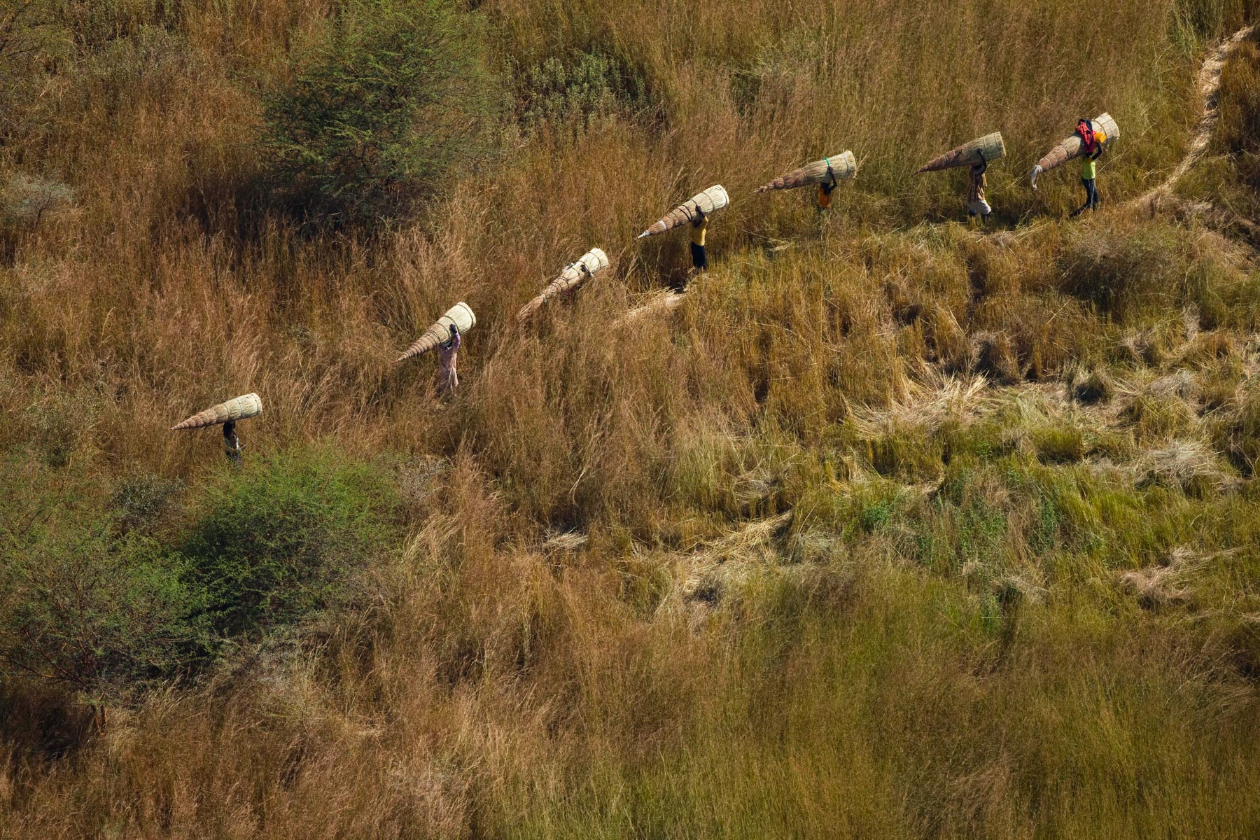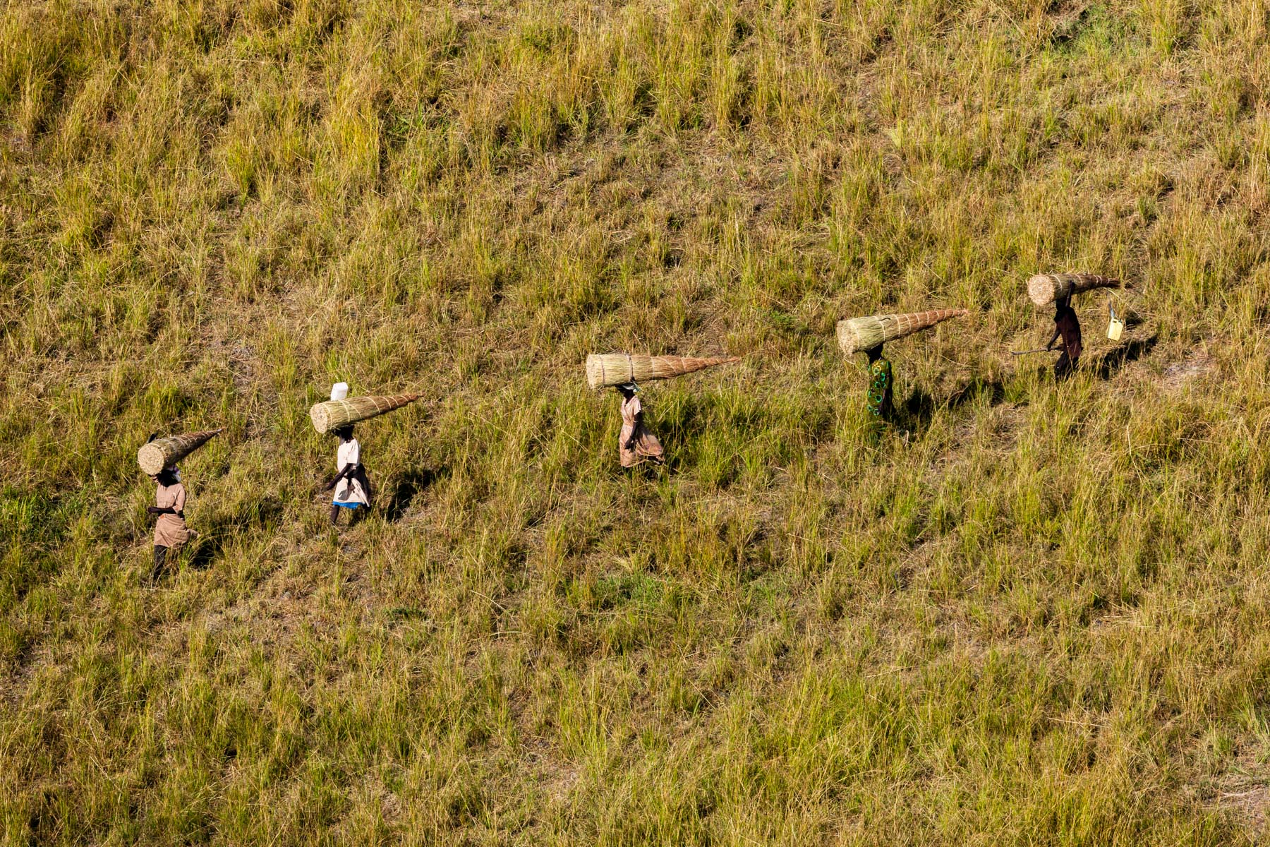 Coupeurs de roseaux, près de Bor, état de Jonglei, Soudan du Sud (6°28' N - 31°34' E).