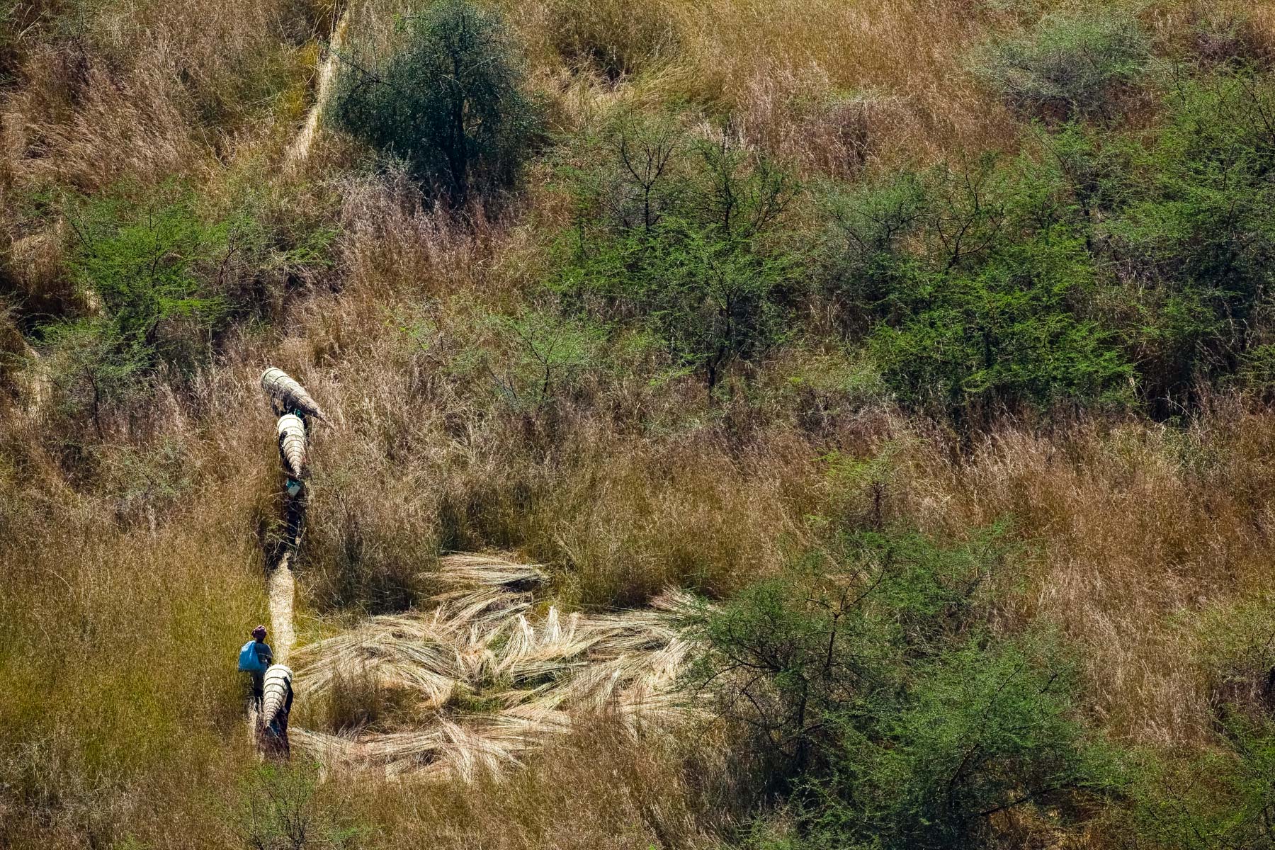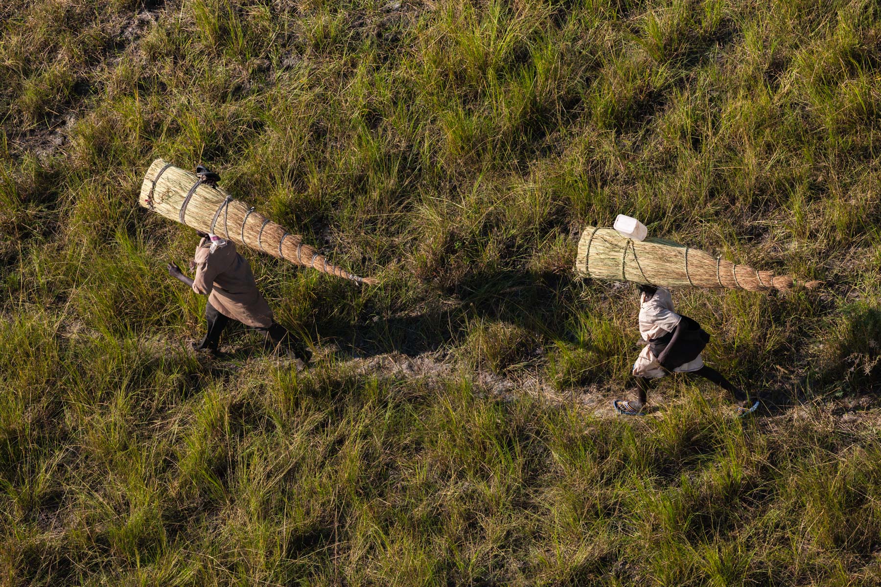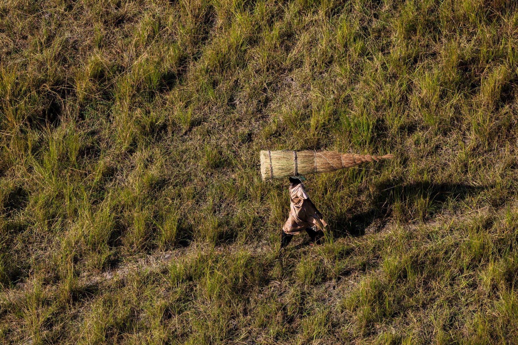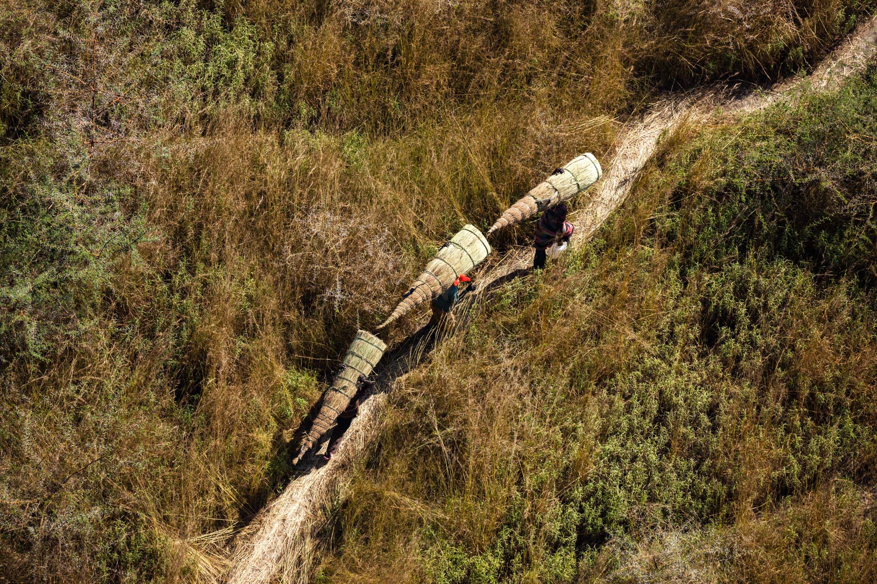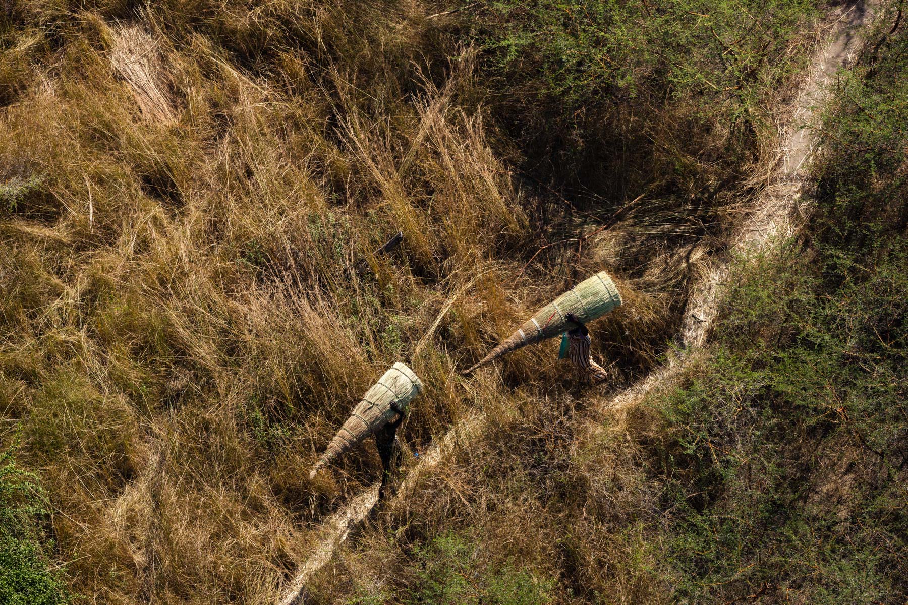 Coupeurs de roseaux, près de Bor, état de Jonglei, Soudan du Sud (6°28' N - 31°34' E).