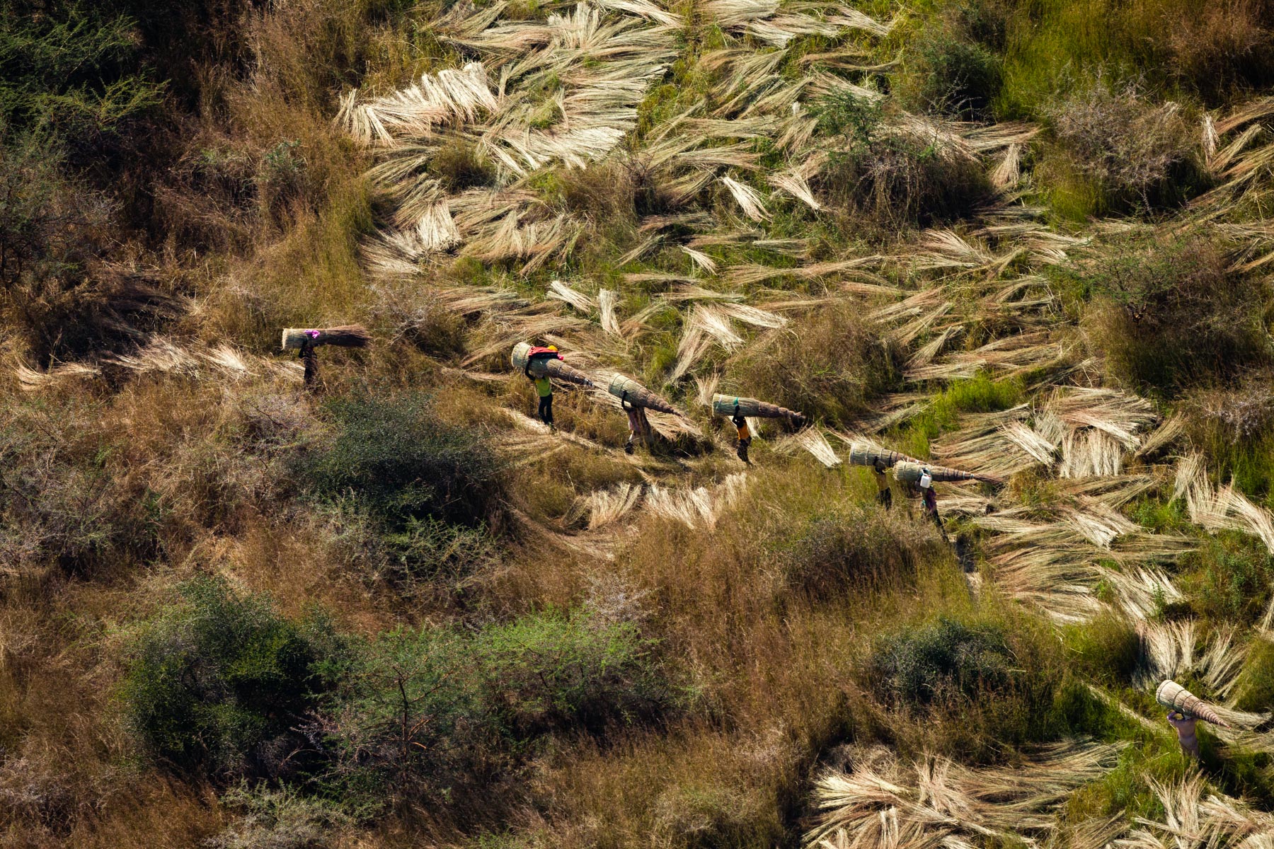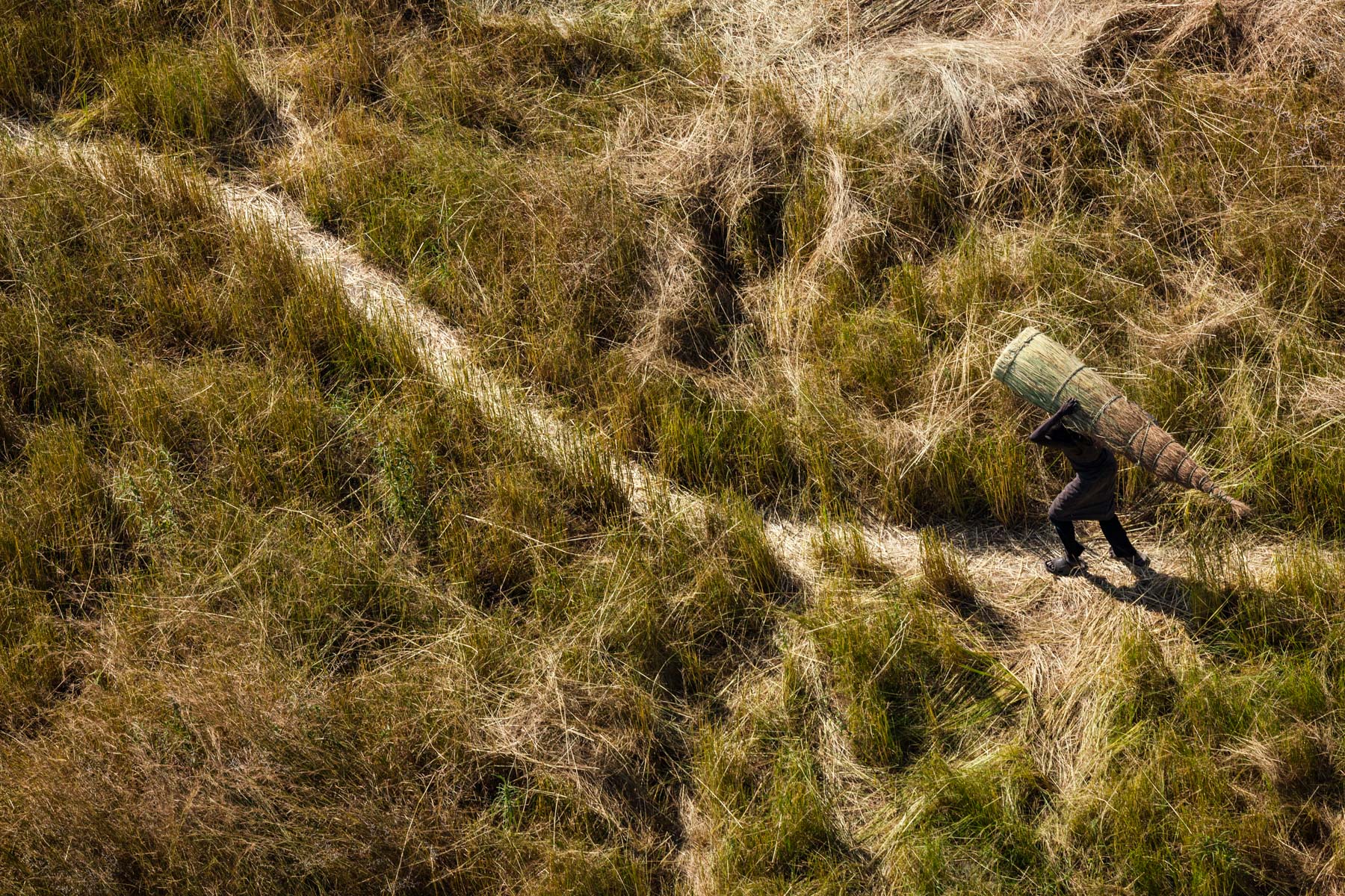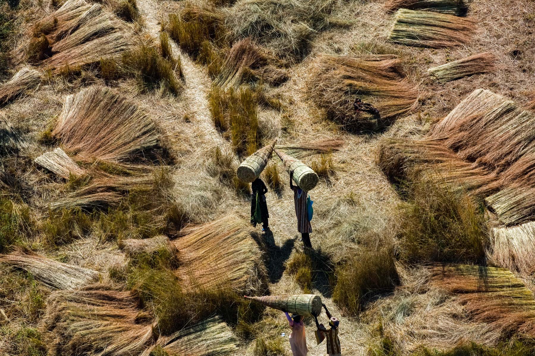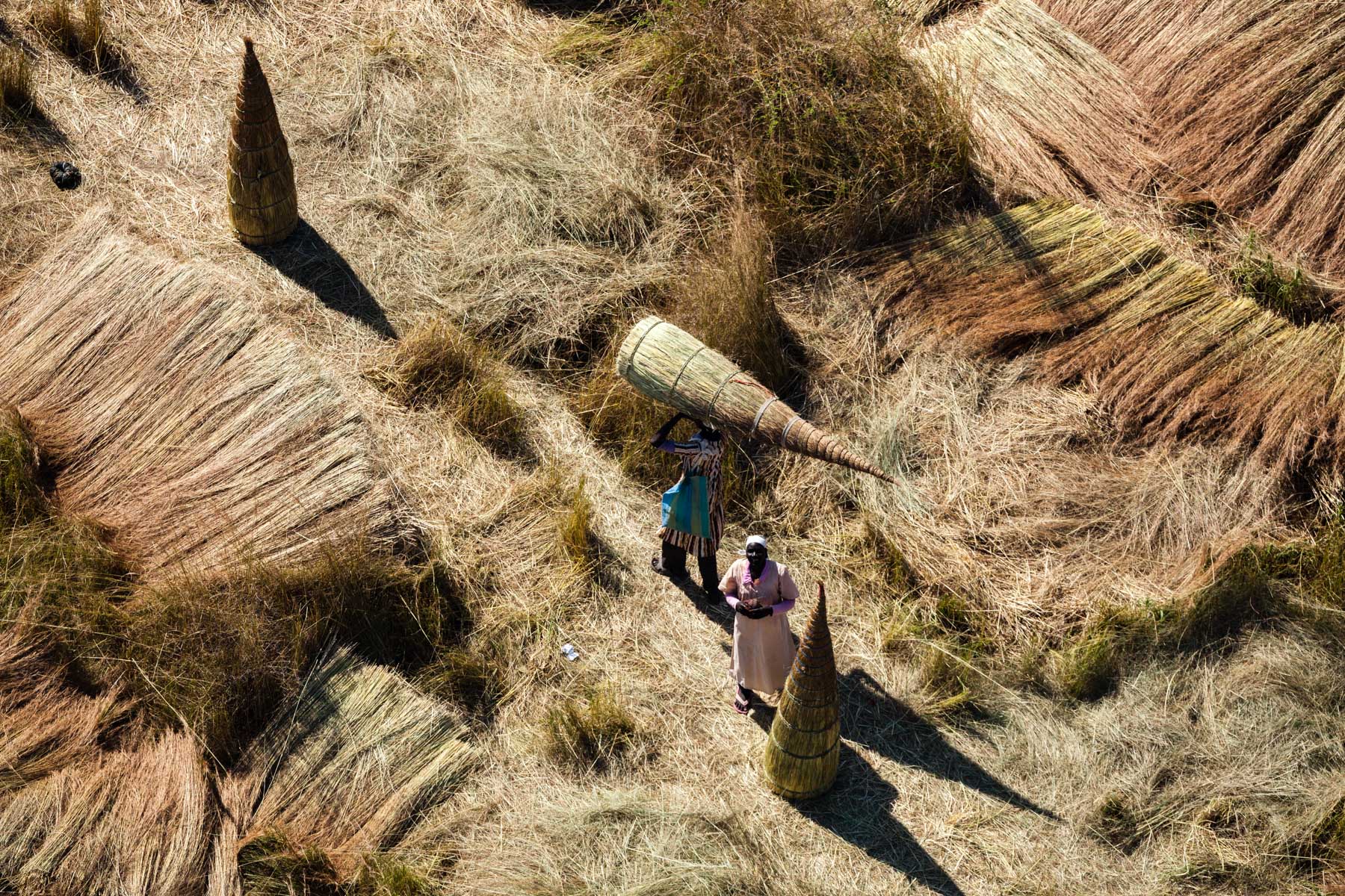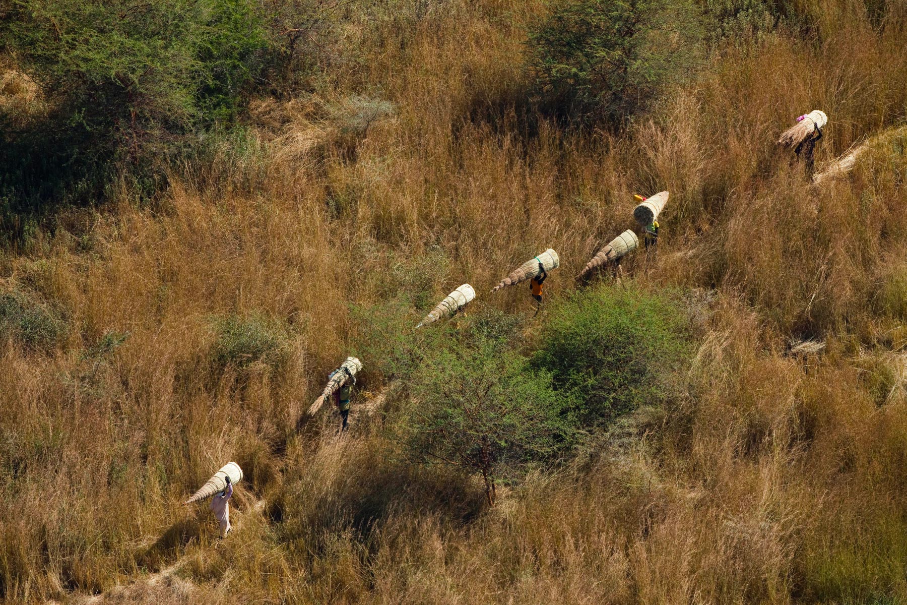 Coupeurs de roseaux, près de Bor, état de Jonglei, Soudan du Sud (6°28' N - 31°34' E).