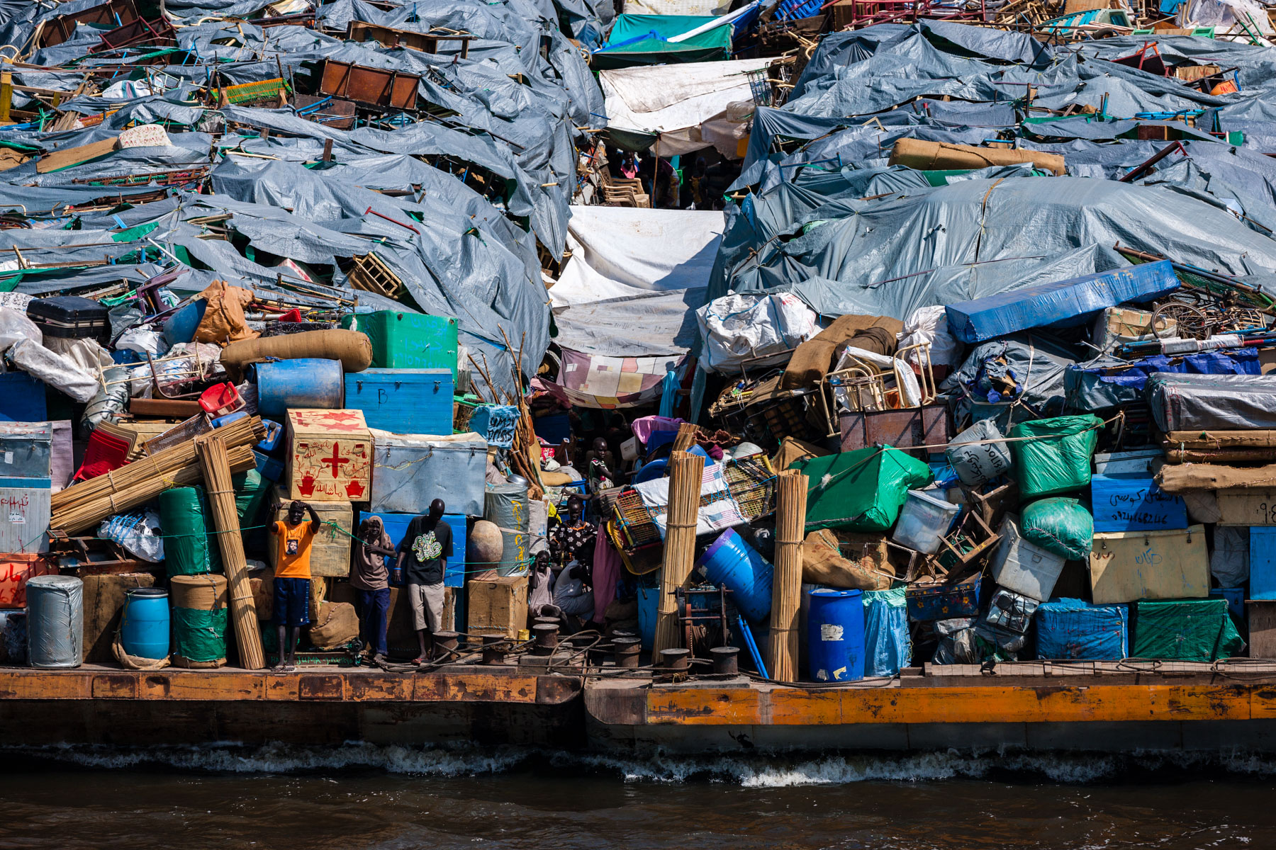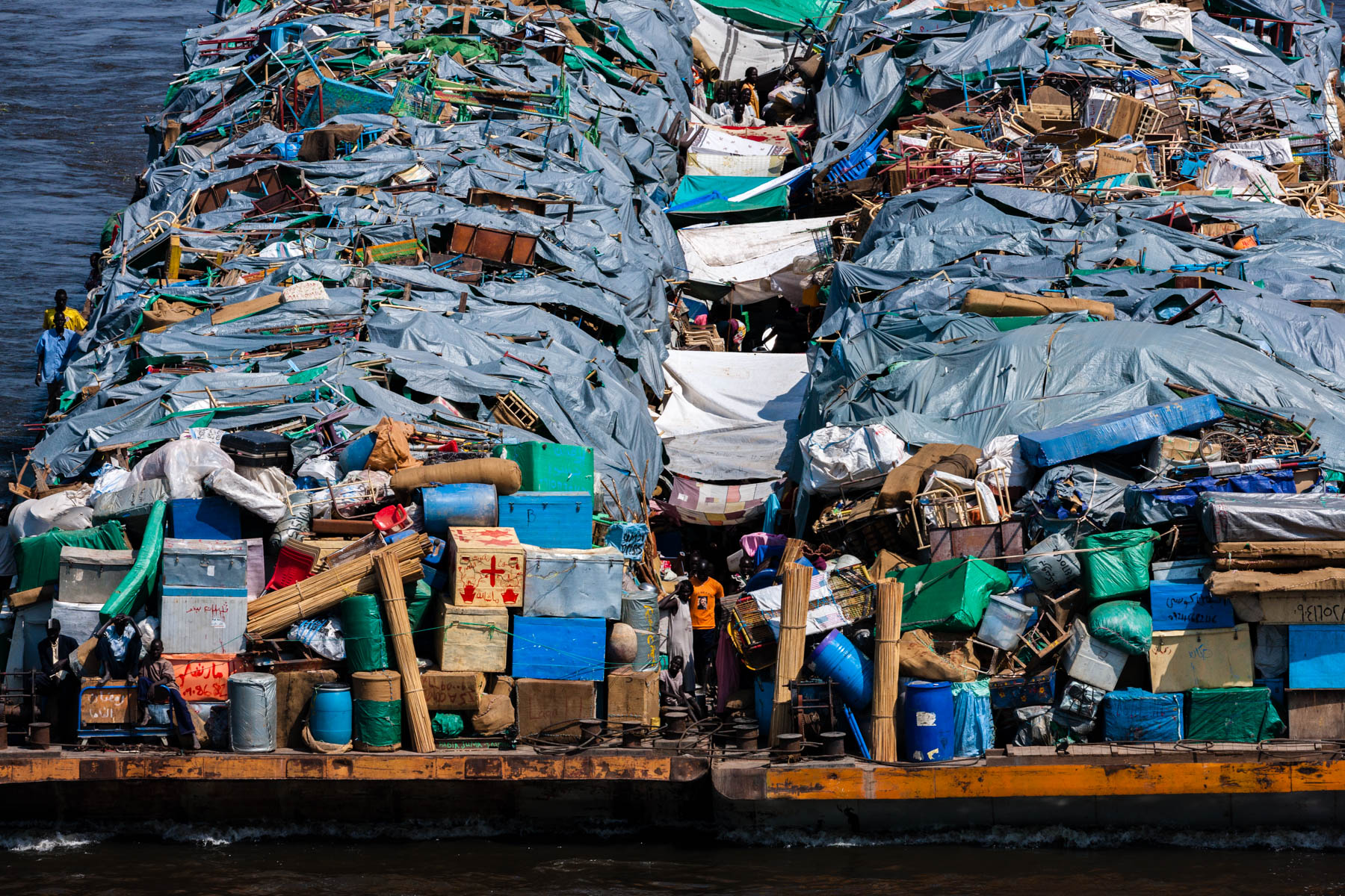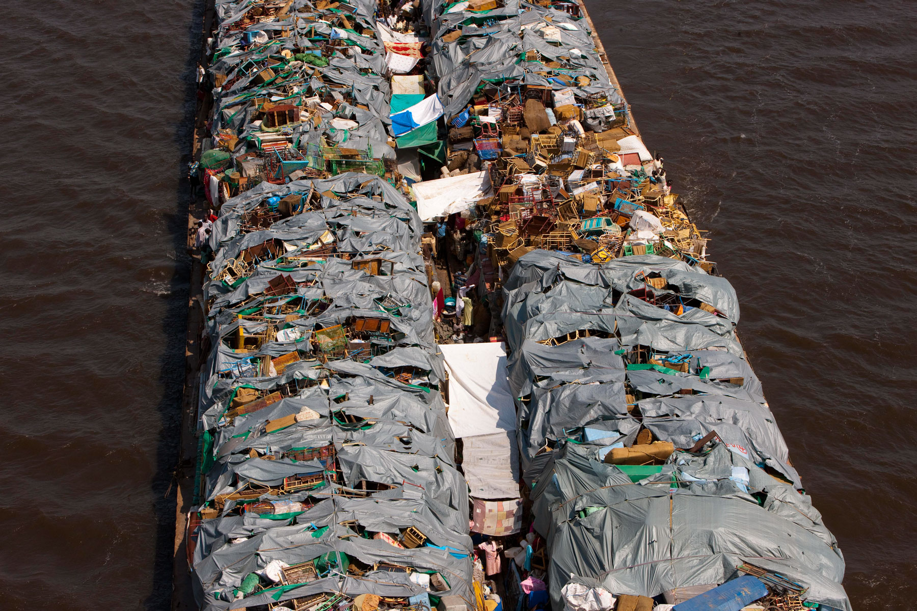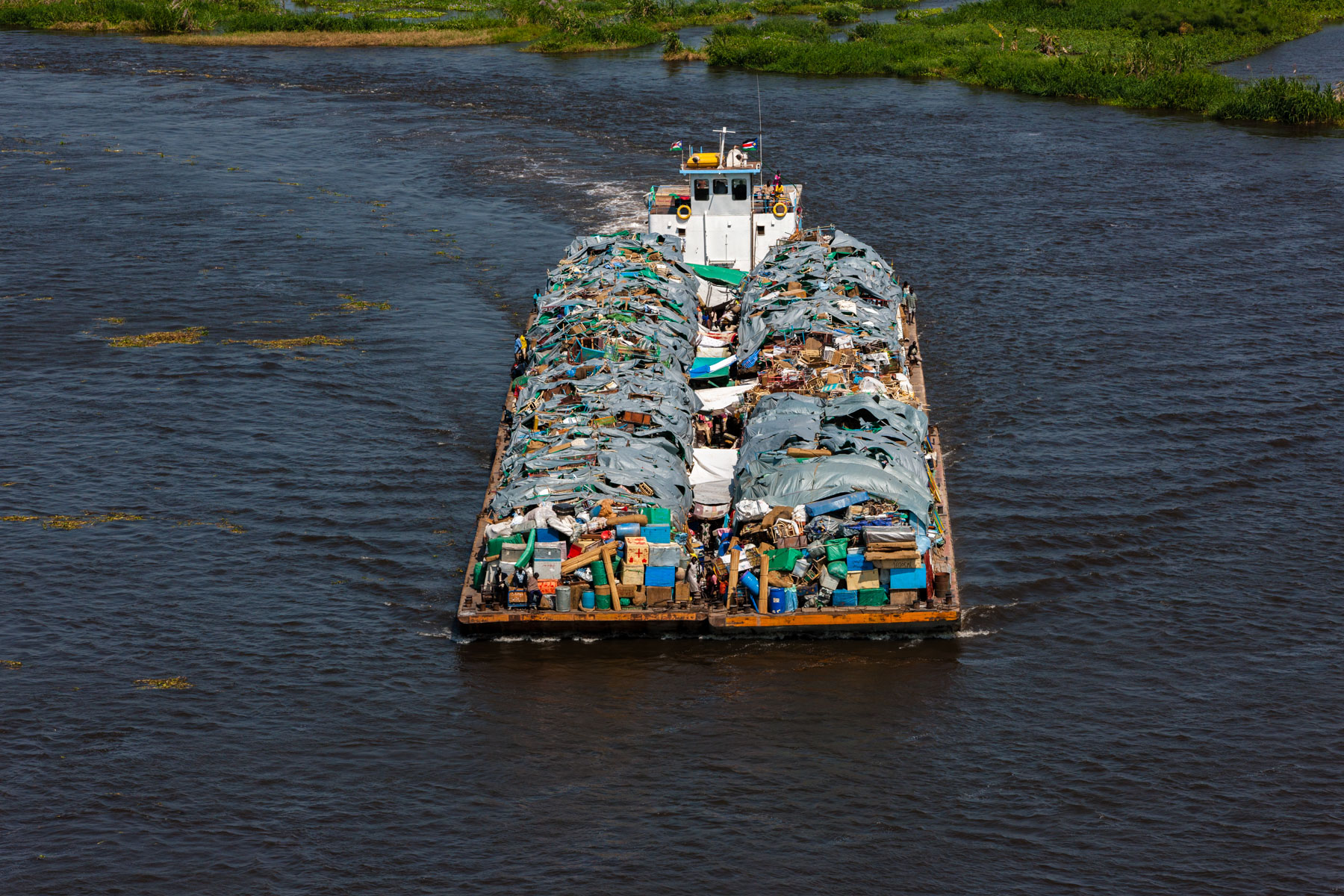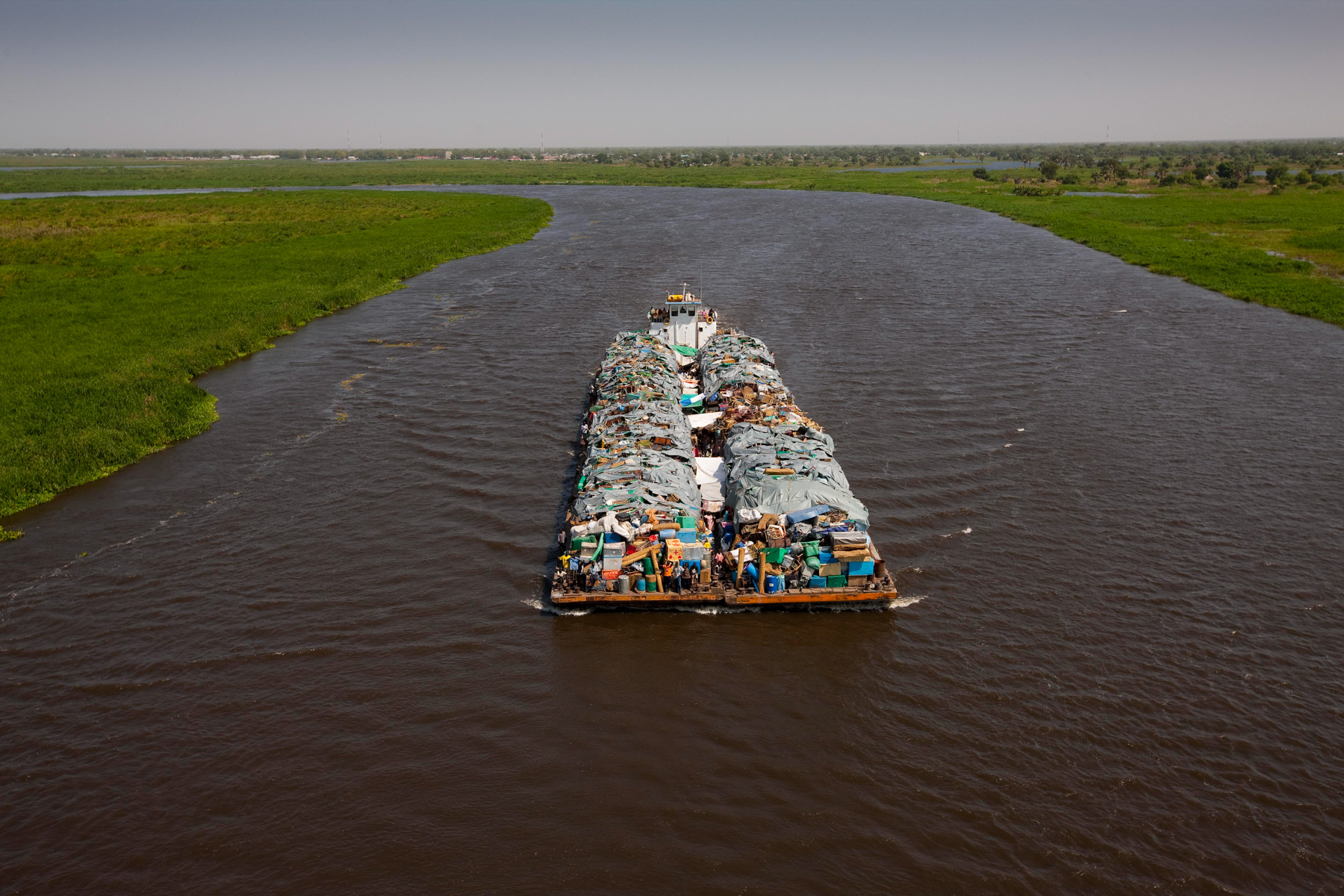Barge sur le Nil Blanc, près de Bor, état de Jonglei, Soudan du Sud