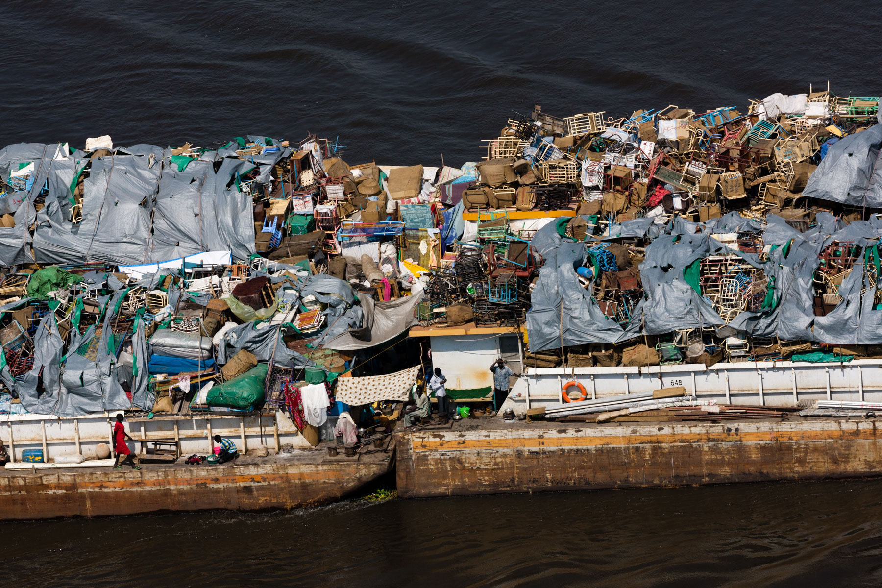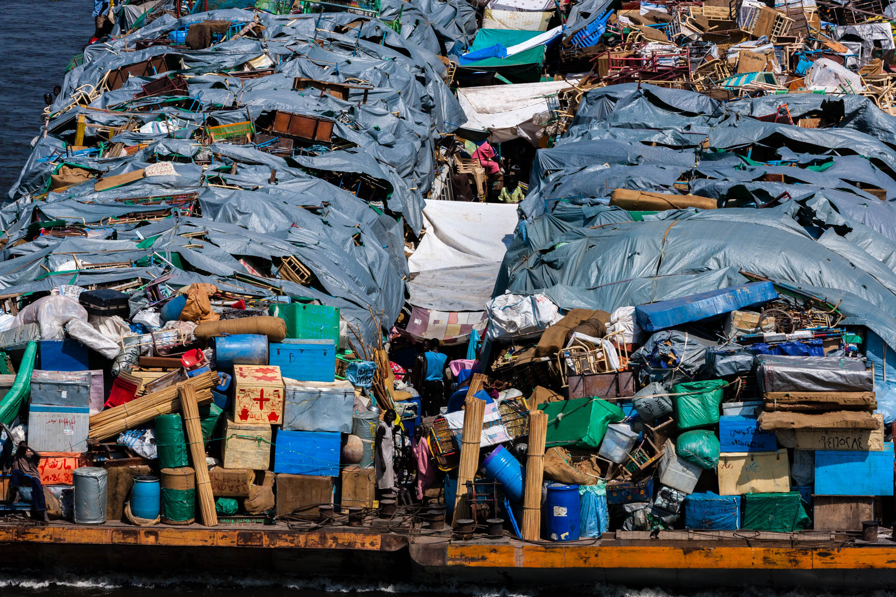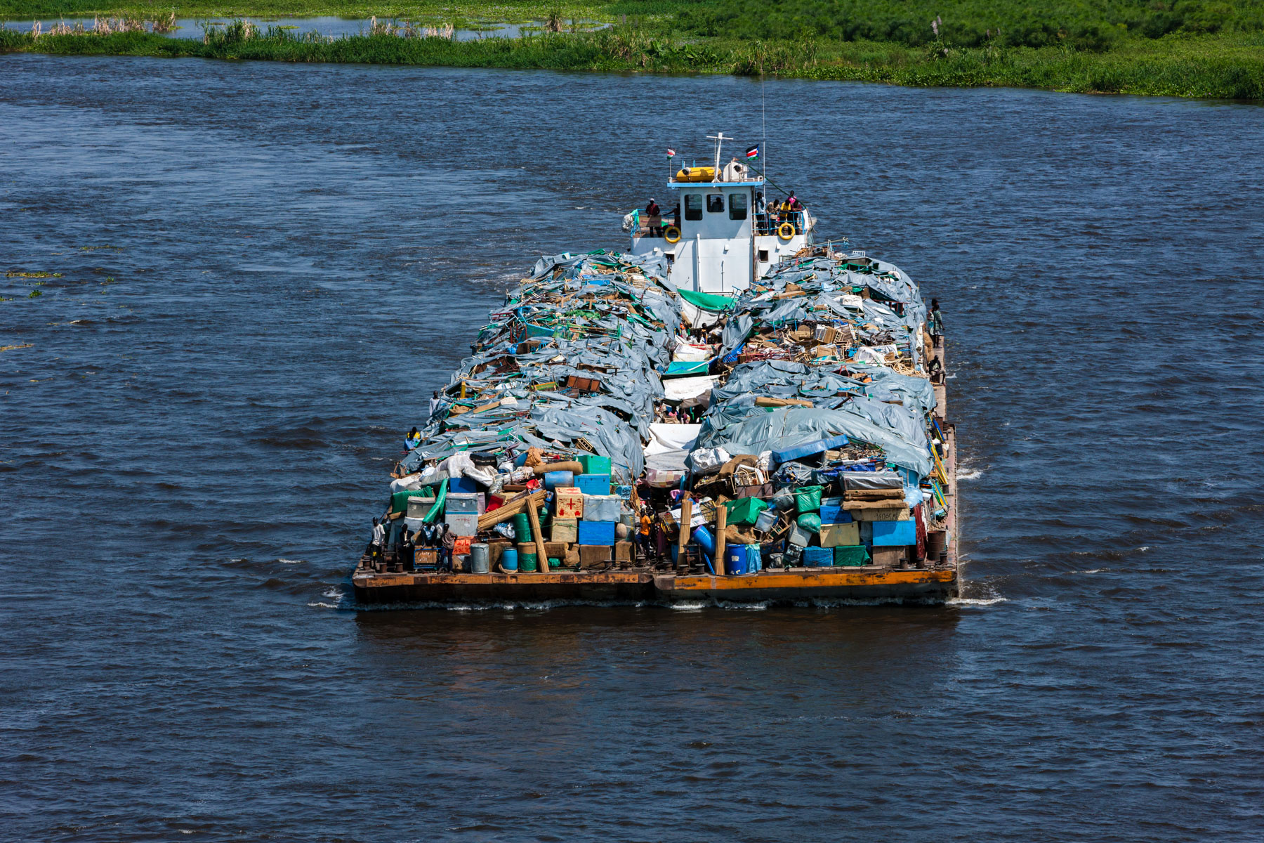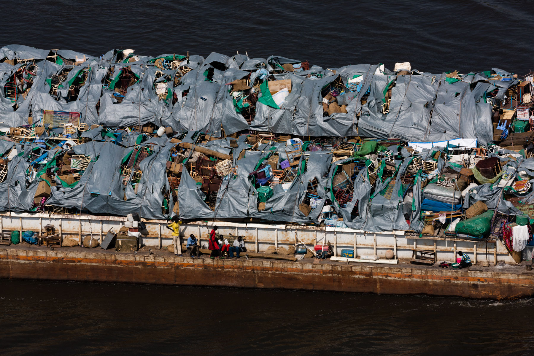 Barge sur le Nil Blanc, près de Bor, état de Jonglei, Soudan du Sud