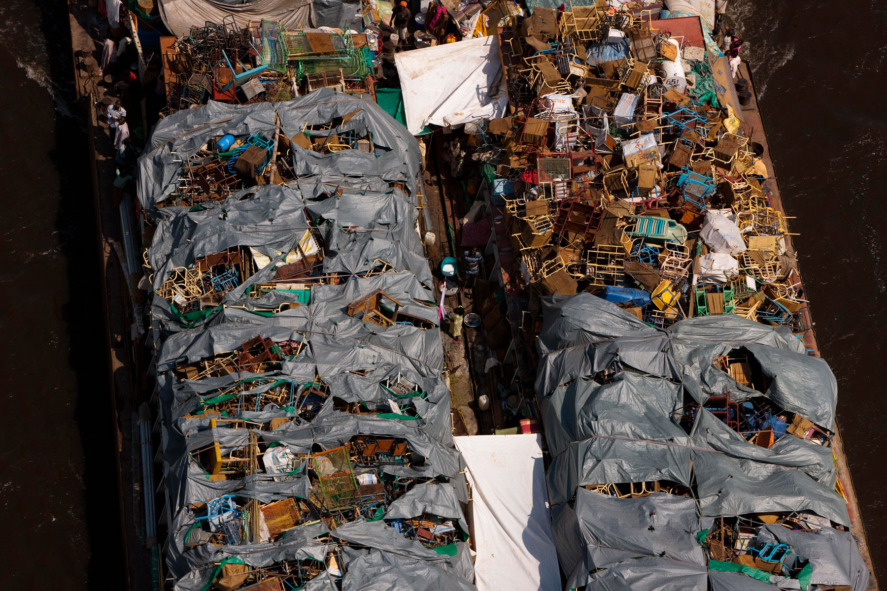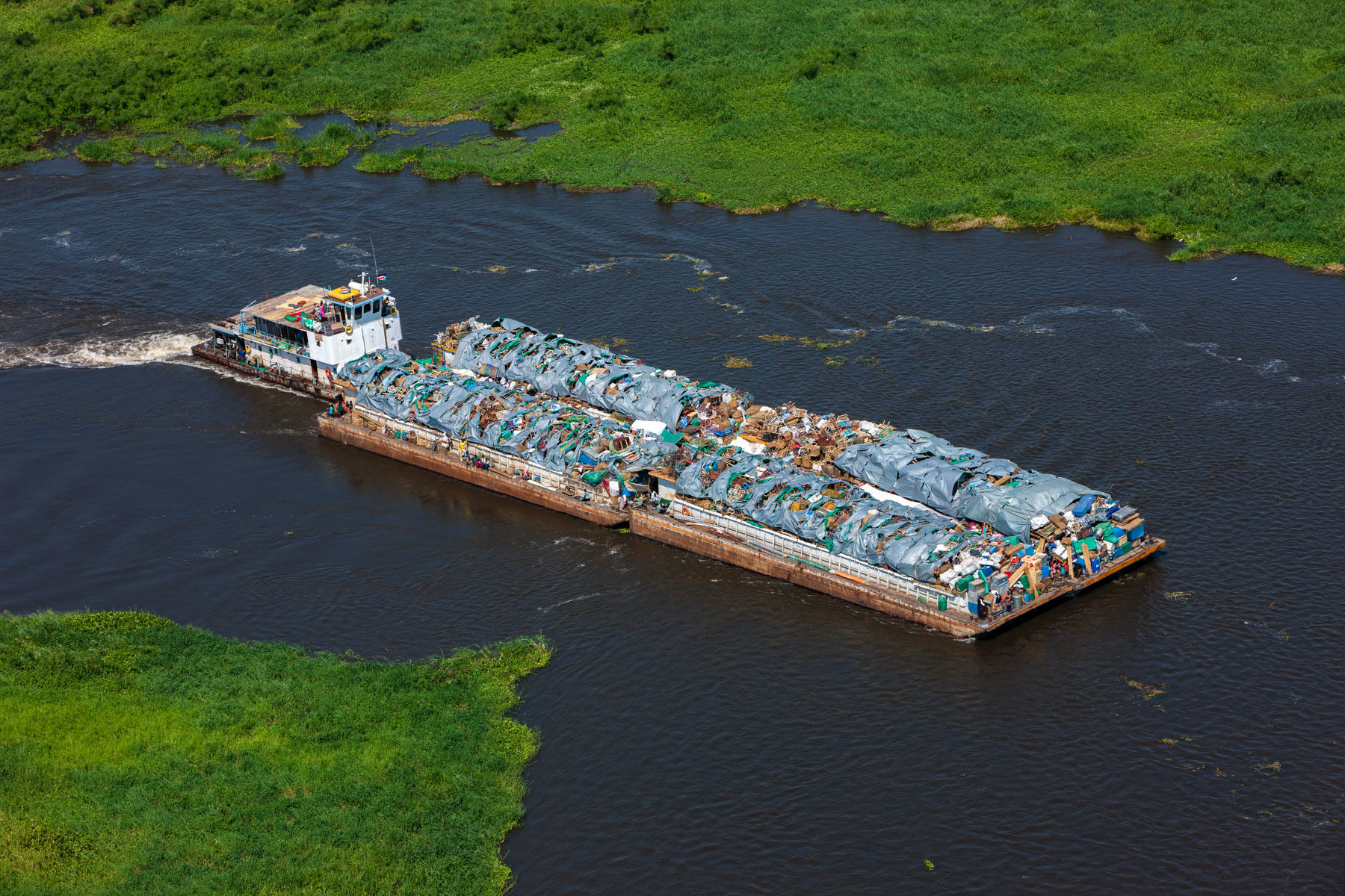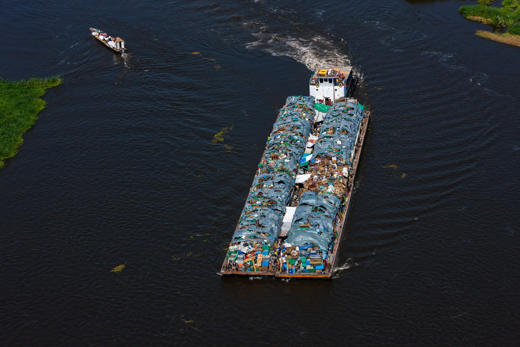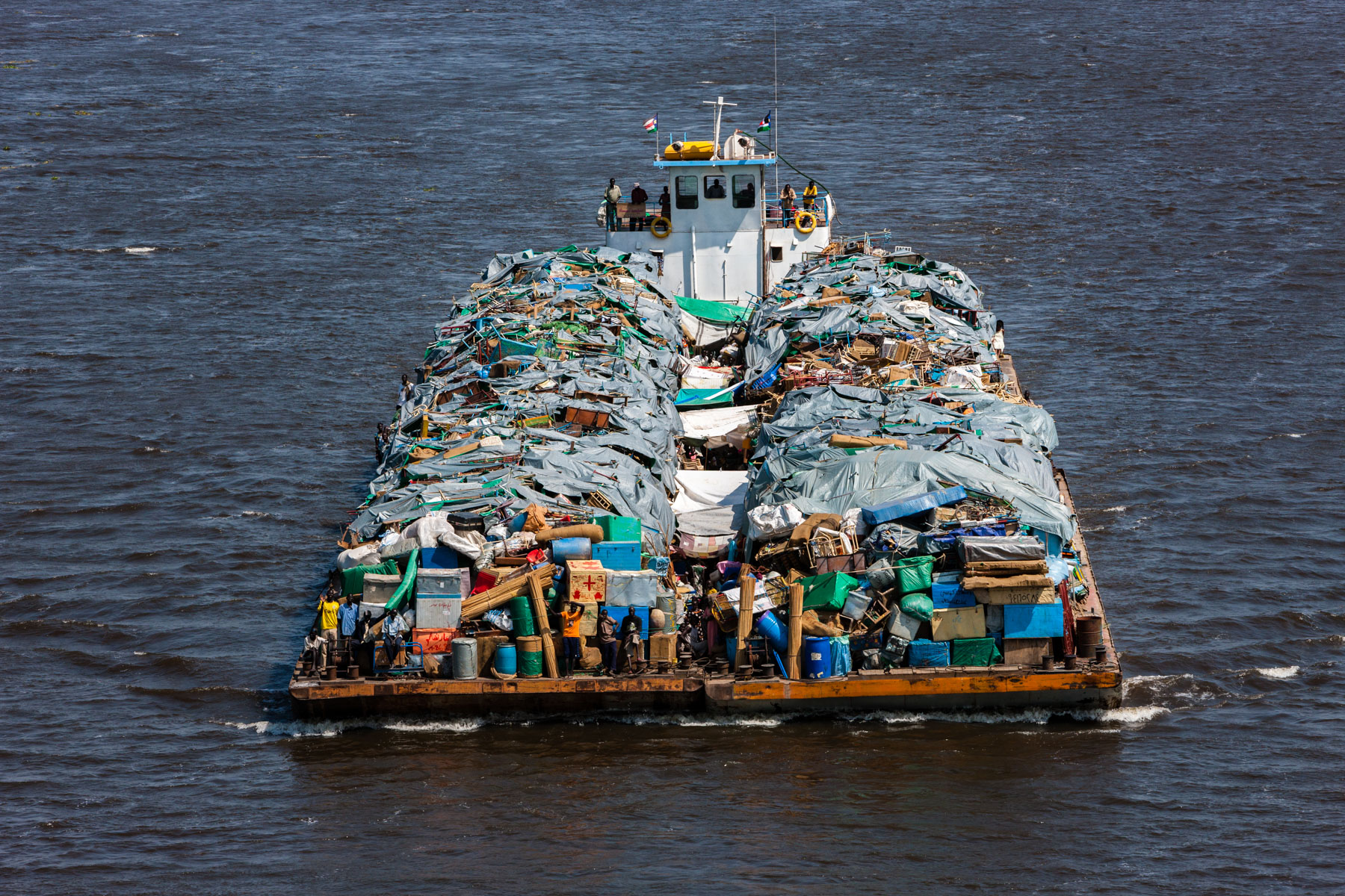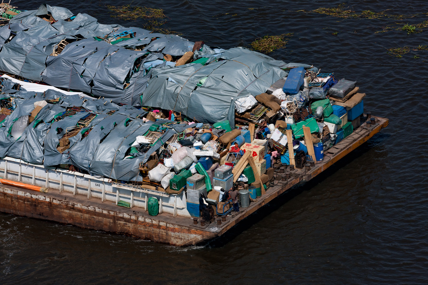 Barge sur le Nil Blanc, près de Bor, état de Jonglei, Soudan du Sud