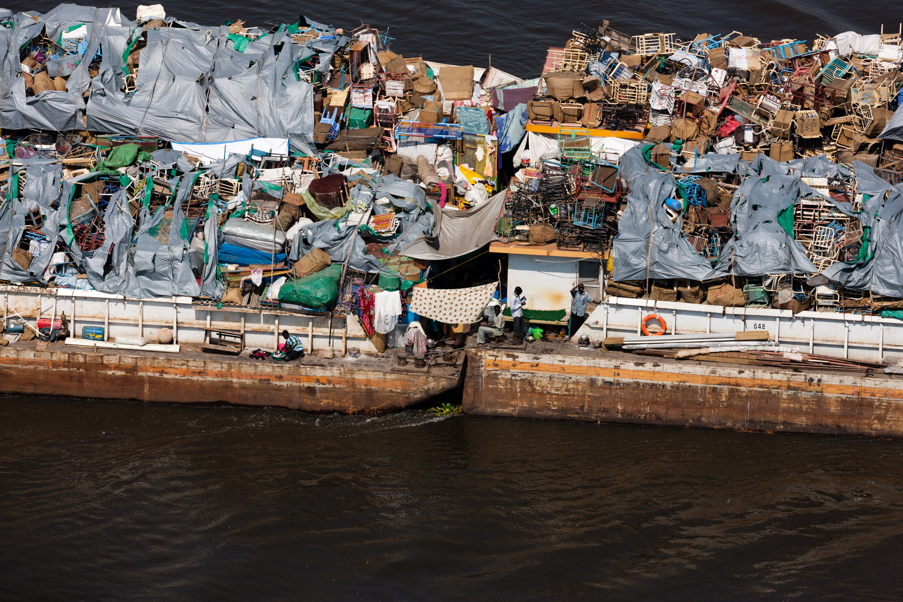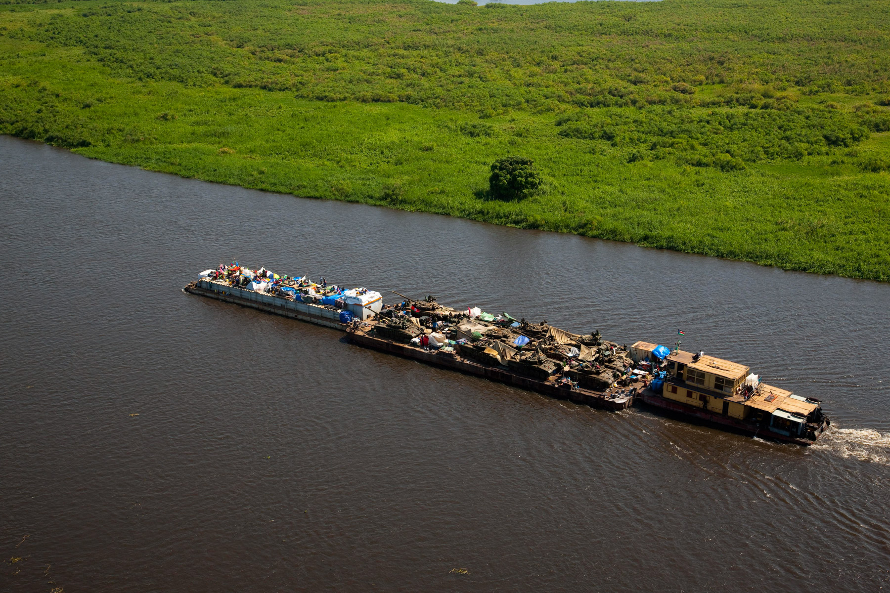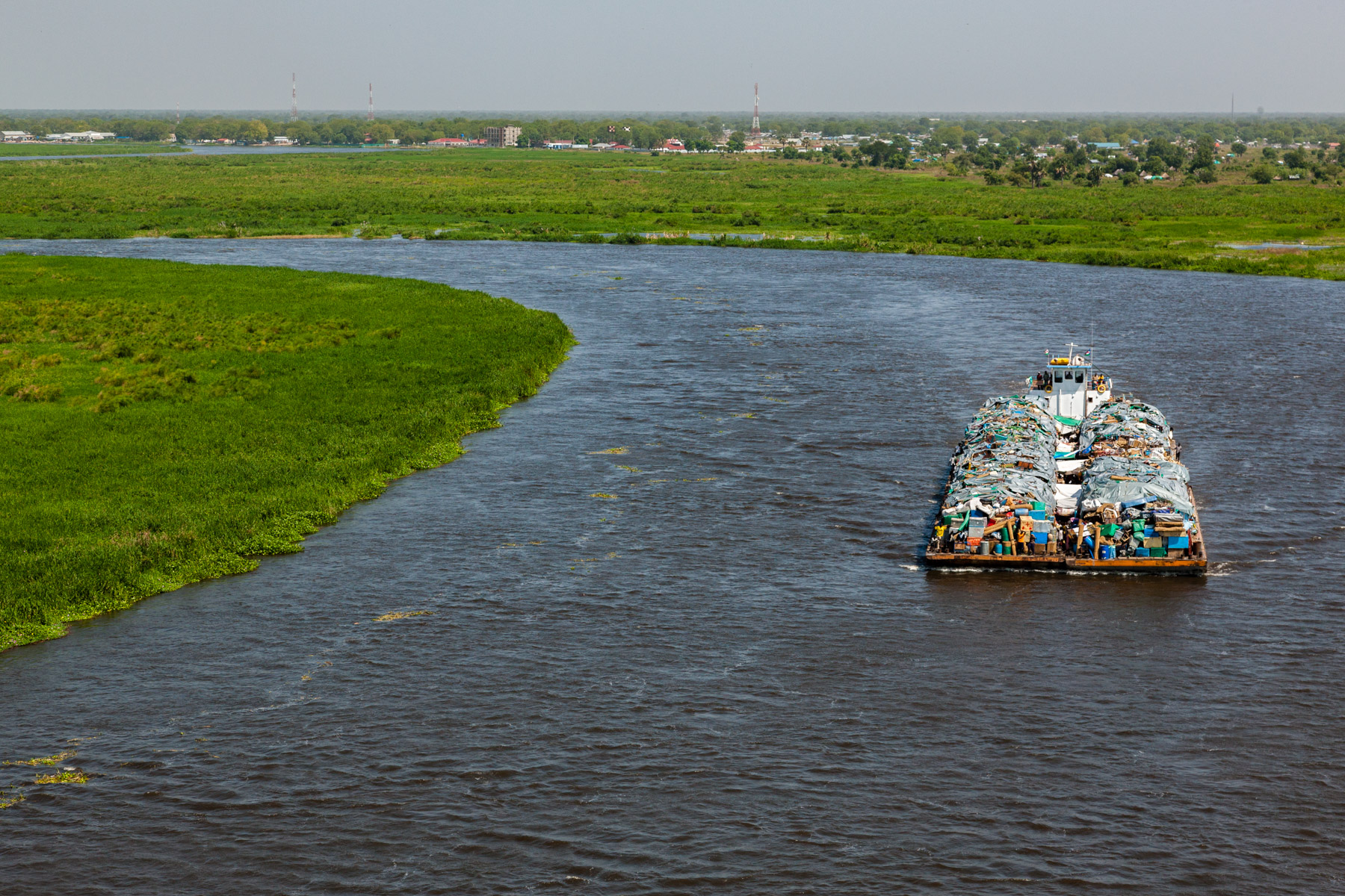 Barge sur le Nil Blanc près de Bor, état de Jonglei, Soudan du Sud (6°11'14.53"N - 31°32'56.28"E)