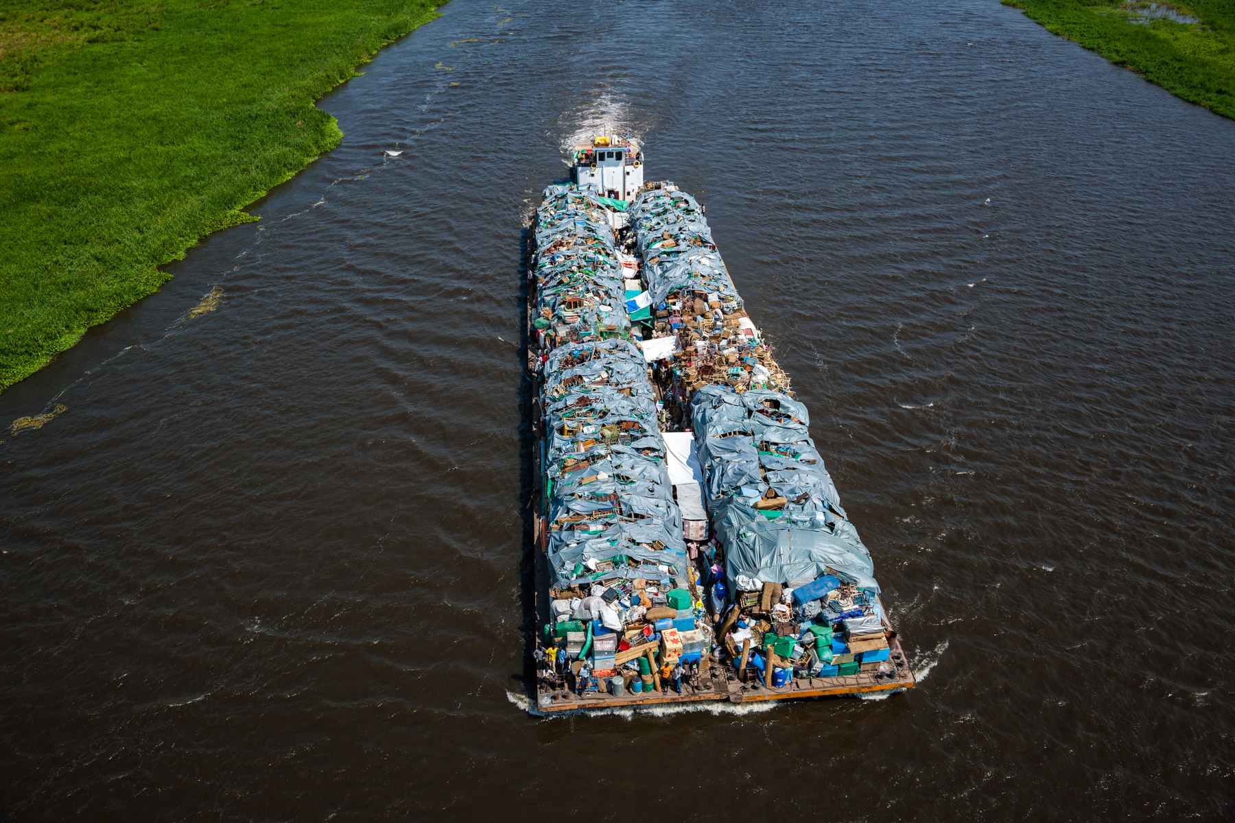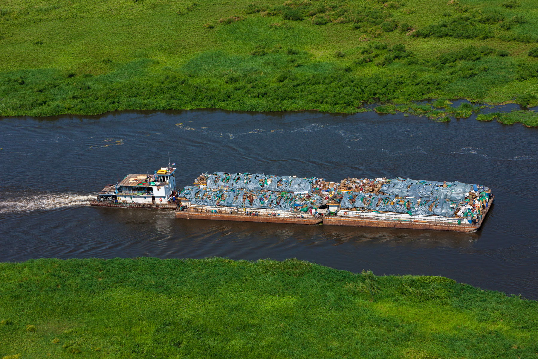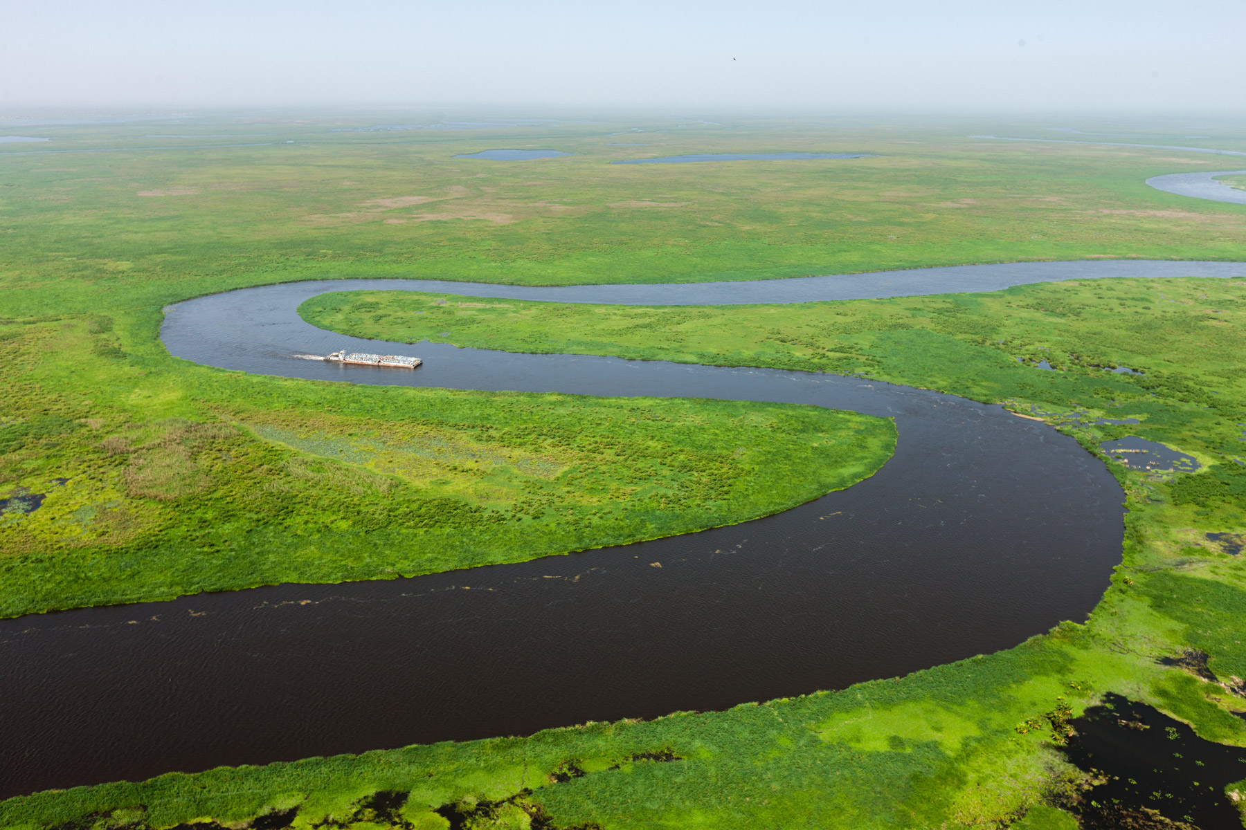 Barge sur le Nil Blanc près de Bor, état de Jonglei, Soudan du Sud (6°11'14.53"N - 31°32'56.28"E)