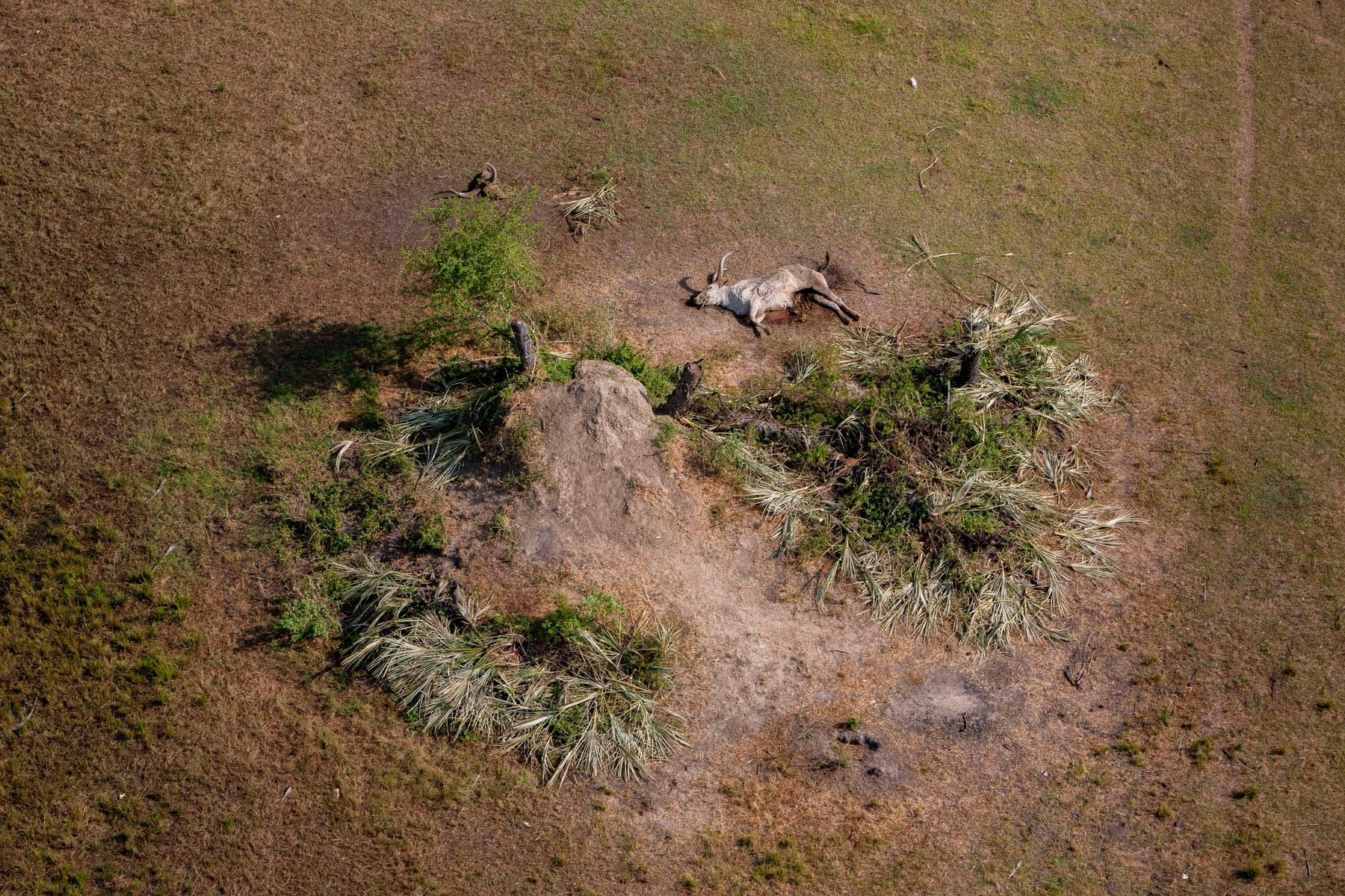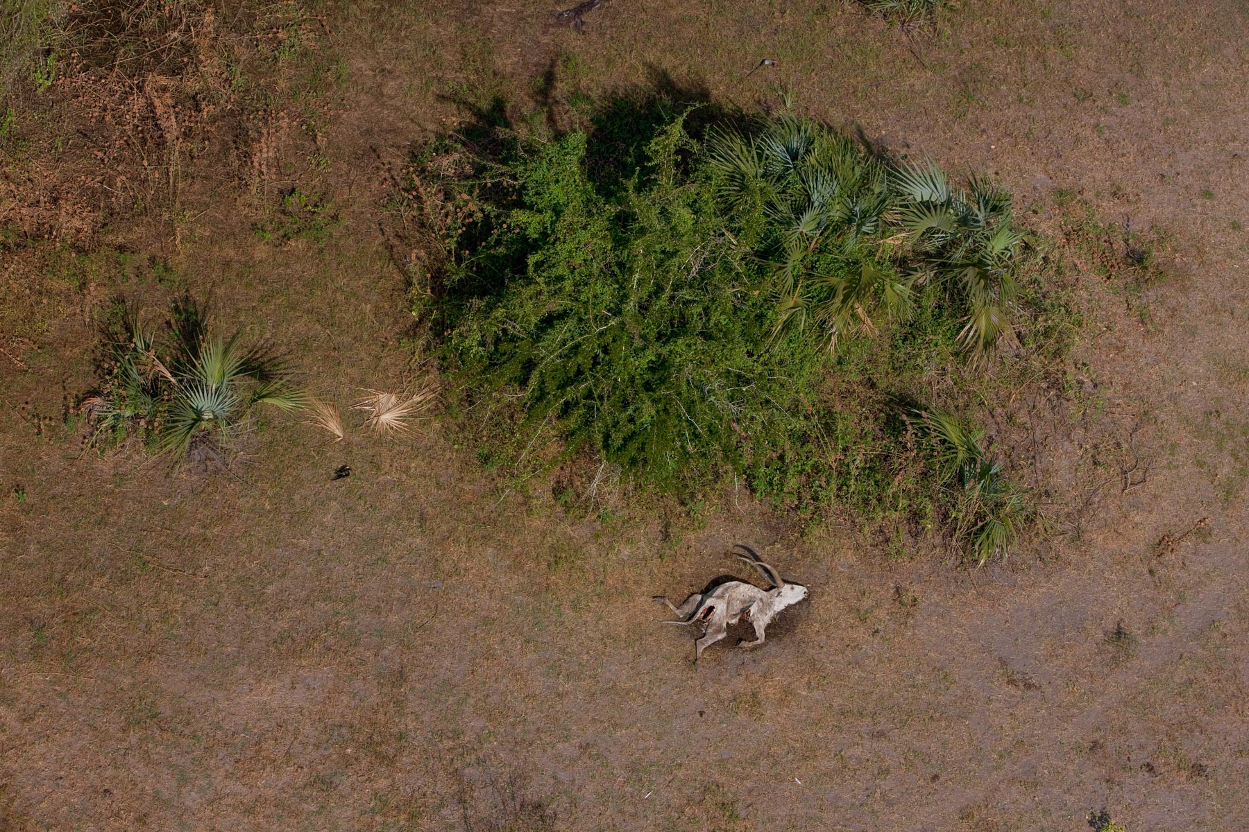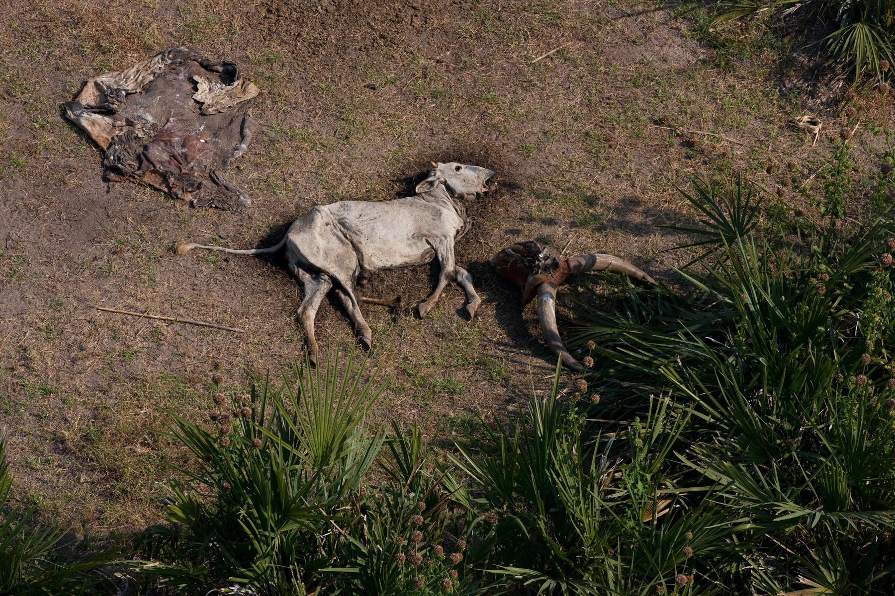 Carcasse de vache sur le sol près de Kaigo (sud de Bor), état de Jonglei, Soudan du Sud ( 5°51'58.97"N - 31°44'43.66"E)