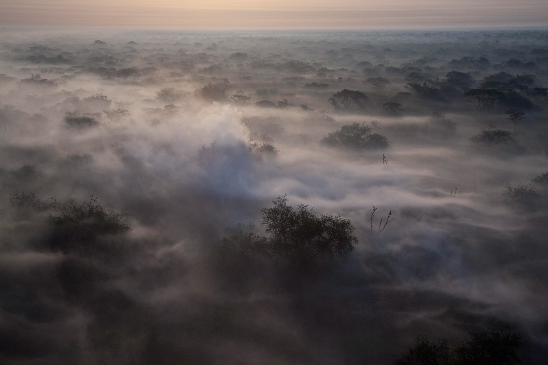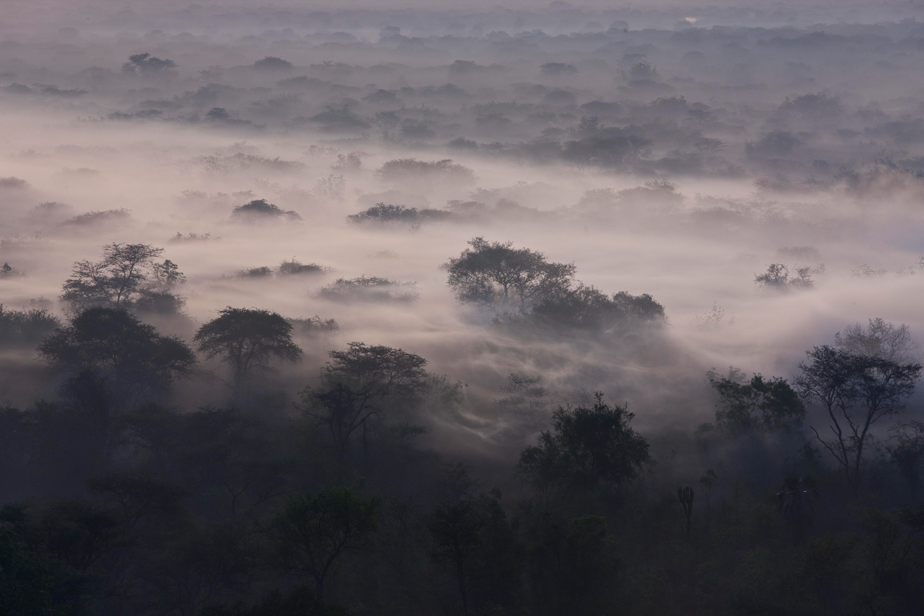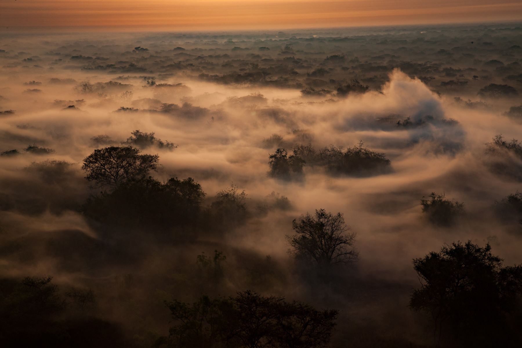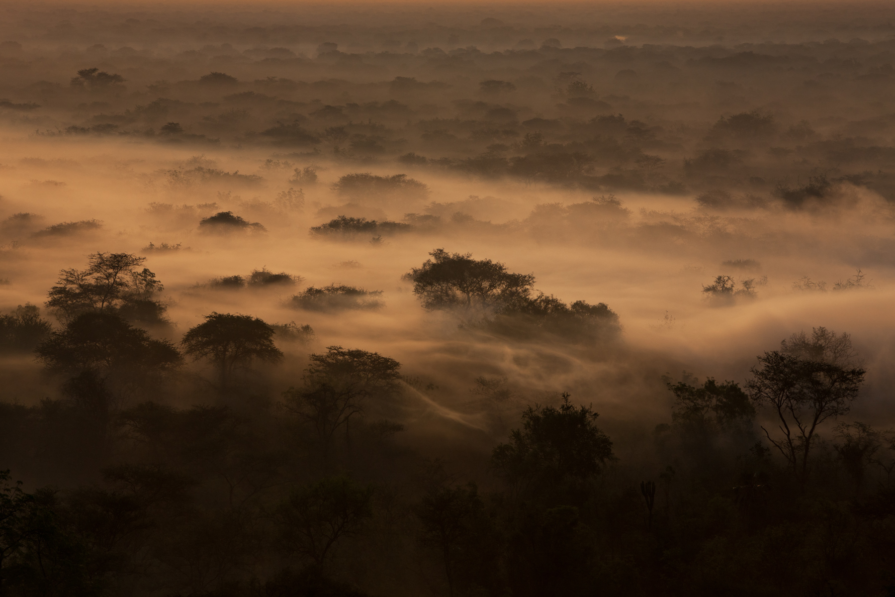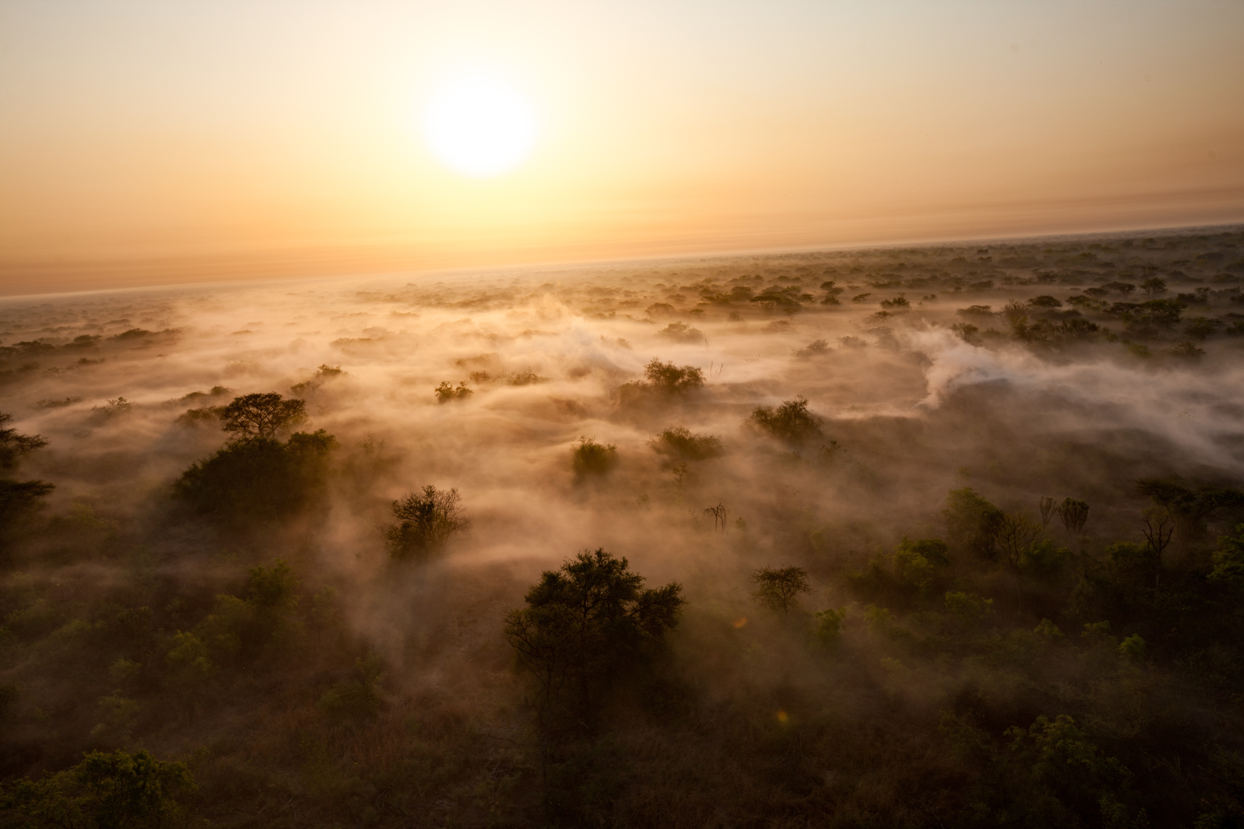 Levé de soleil sur la savane près de Bor, état de Jonglei, Soudan du Sud (6° 9'11.25"N - 31°36'5.42"E)