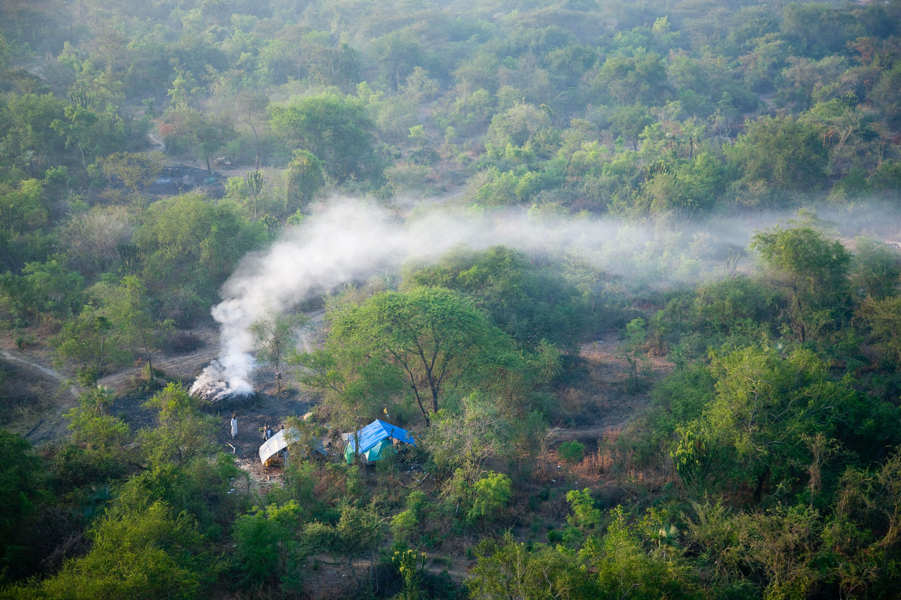 Campement et fabrication du charbon de bois près de Bor, état de Jonglei, Soudan du Sud (6° 9'11.25"N - 31°36'5.42"E)