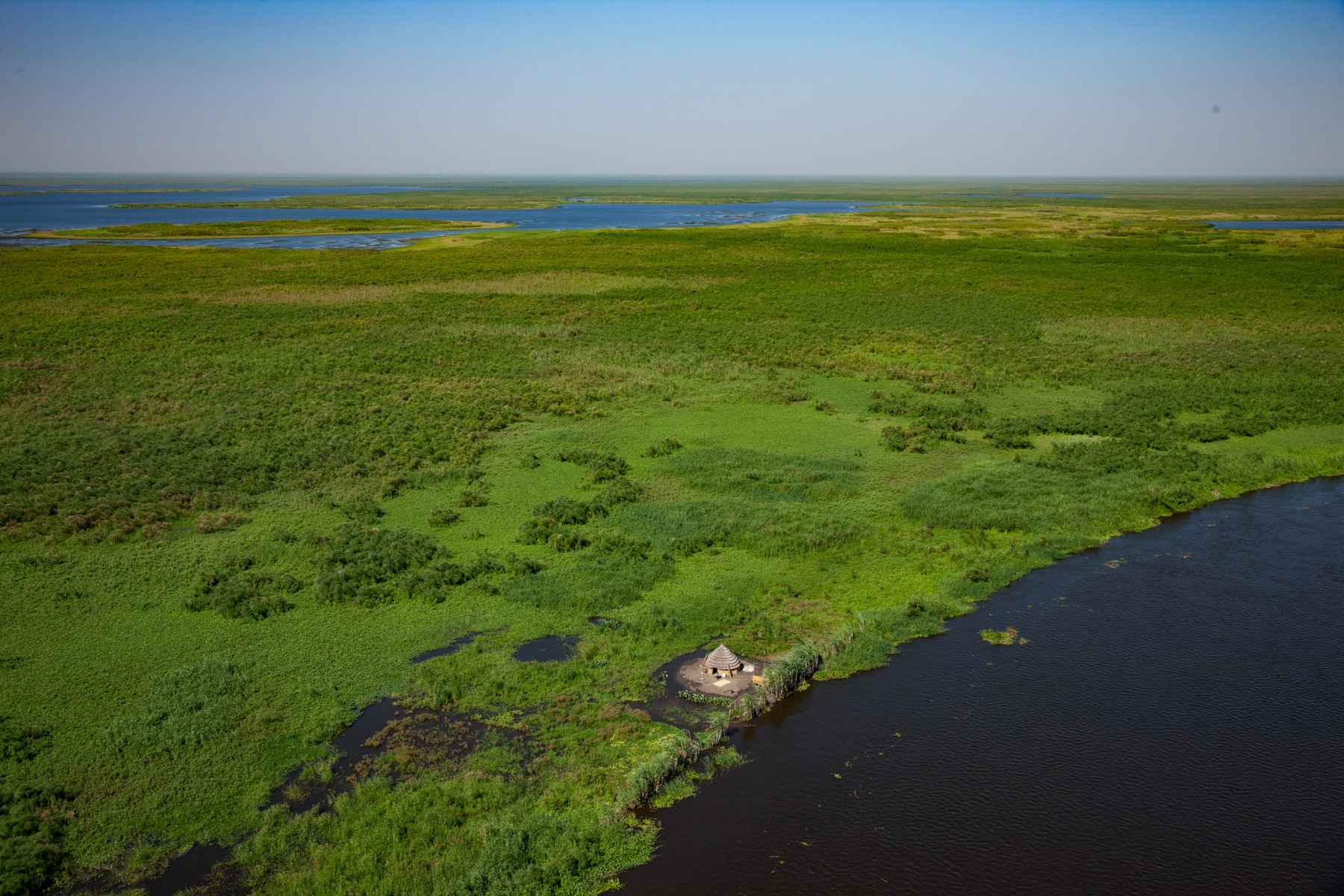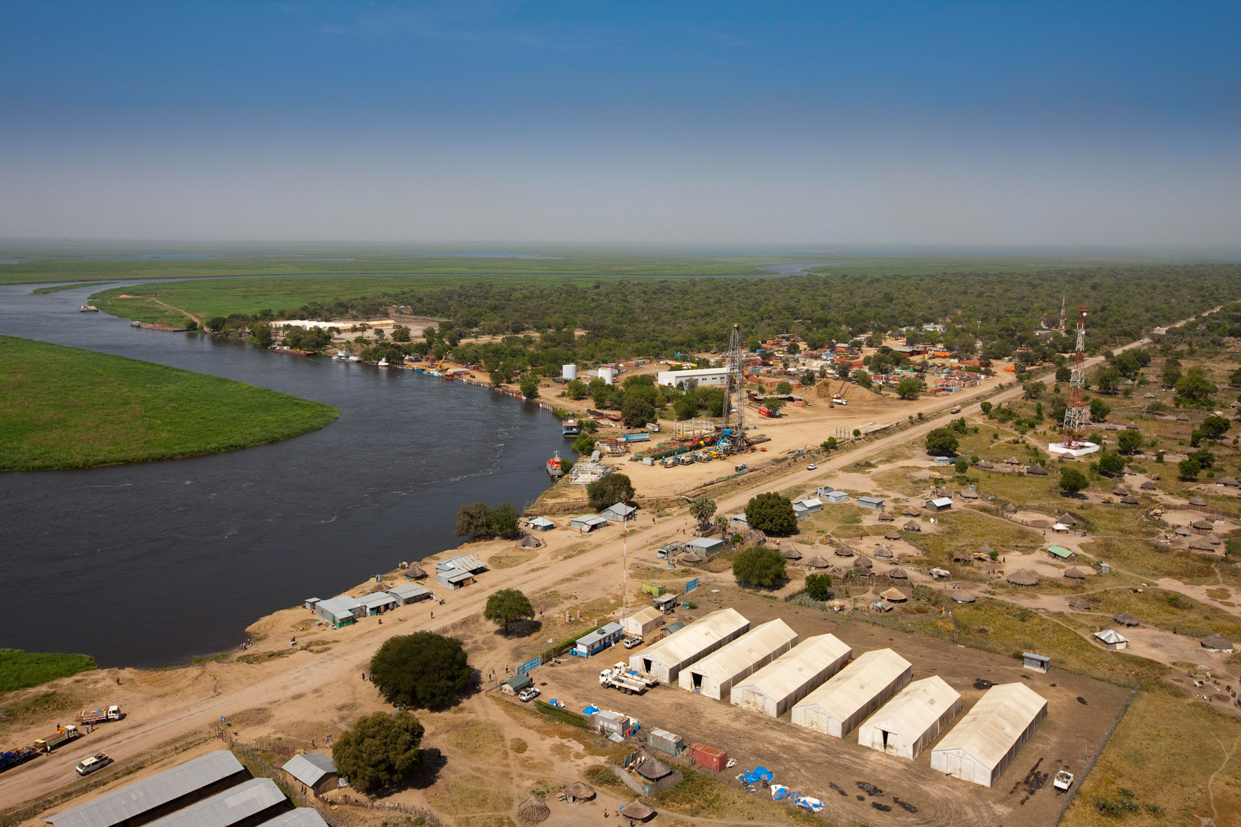 Base moldave sur les rives du Nil Blanc près de Melwal (sud de Bor), état de Jonglei, Soudan du Sud (6° 6'59.92"N- 31°35'9.75"E)