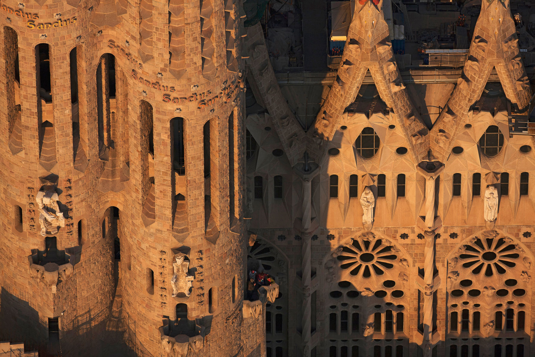 Particular of the Sagrada Familia rooftop by Antoni Gaudi, Barcelona, Barcelones, Province of Barcelona, Catalonia, Spain (41°24’12’’N, 2°10’28’’E).