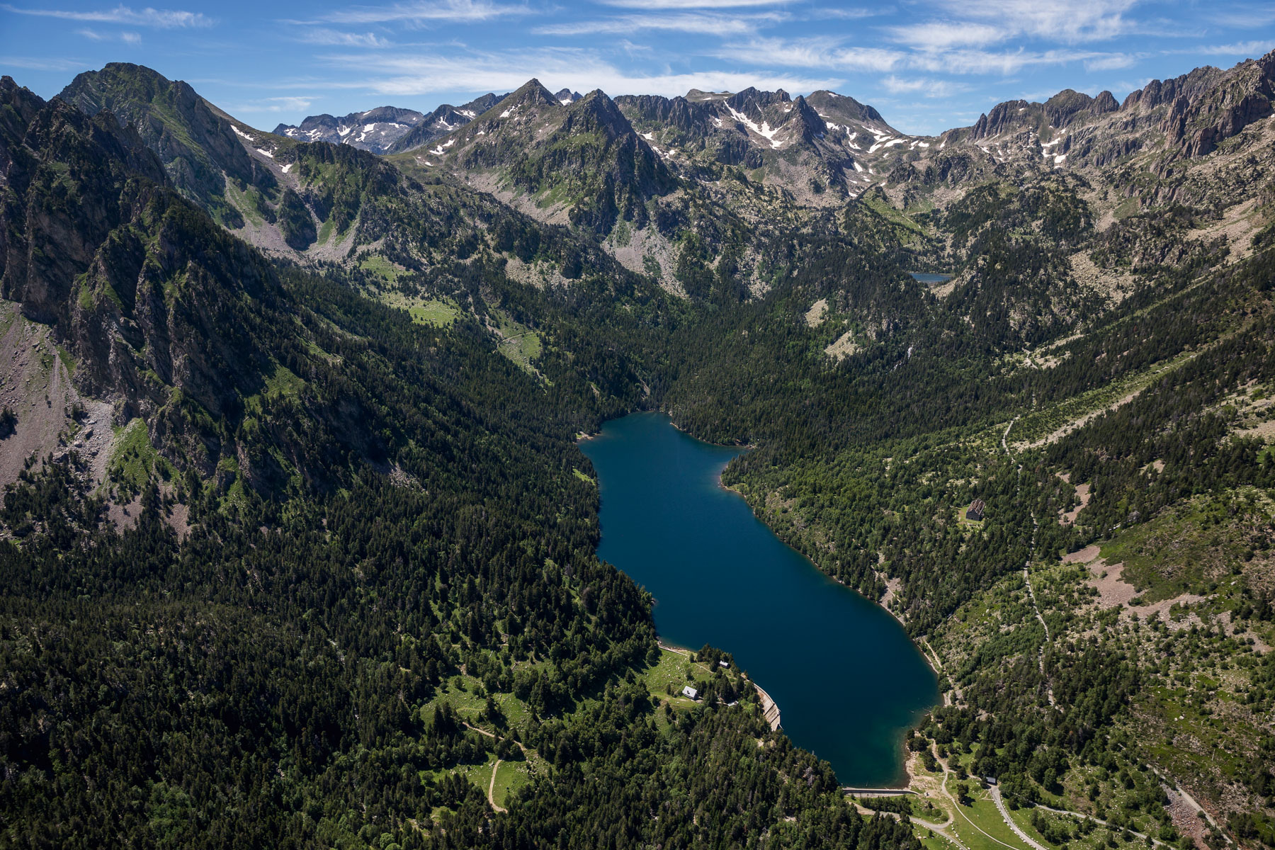 Colomina lake and mountain hostel, Vall Fosca, Province of Lleida, Catalonia, Spain (42°31'9.99"N, 1°0'4.21"E).