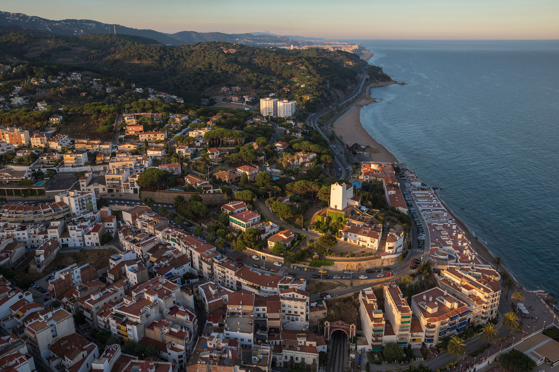 Town and coast of Calella, Maresme, Province of Barcelona, Catalonia, Spain (41°36'49.46"N, 2°39'32.34"E).