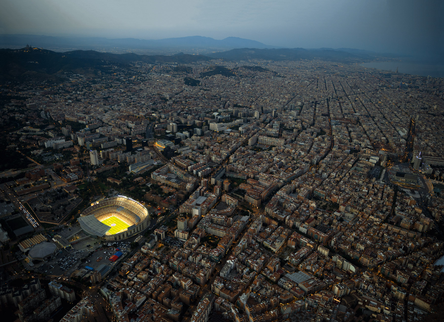 Camp Nou stadium and Barcelona city, Barcelona, Province of Barcelona, Catalonia, Spain (41°22′51″N, 2°07′22″E).