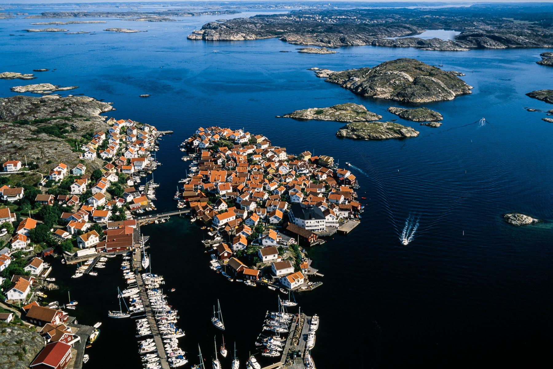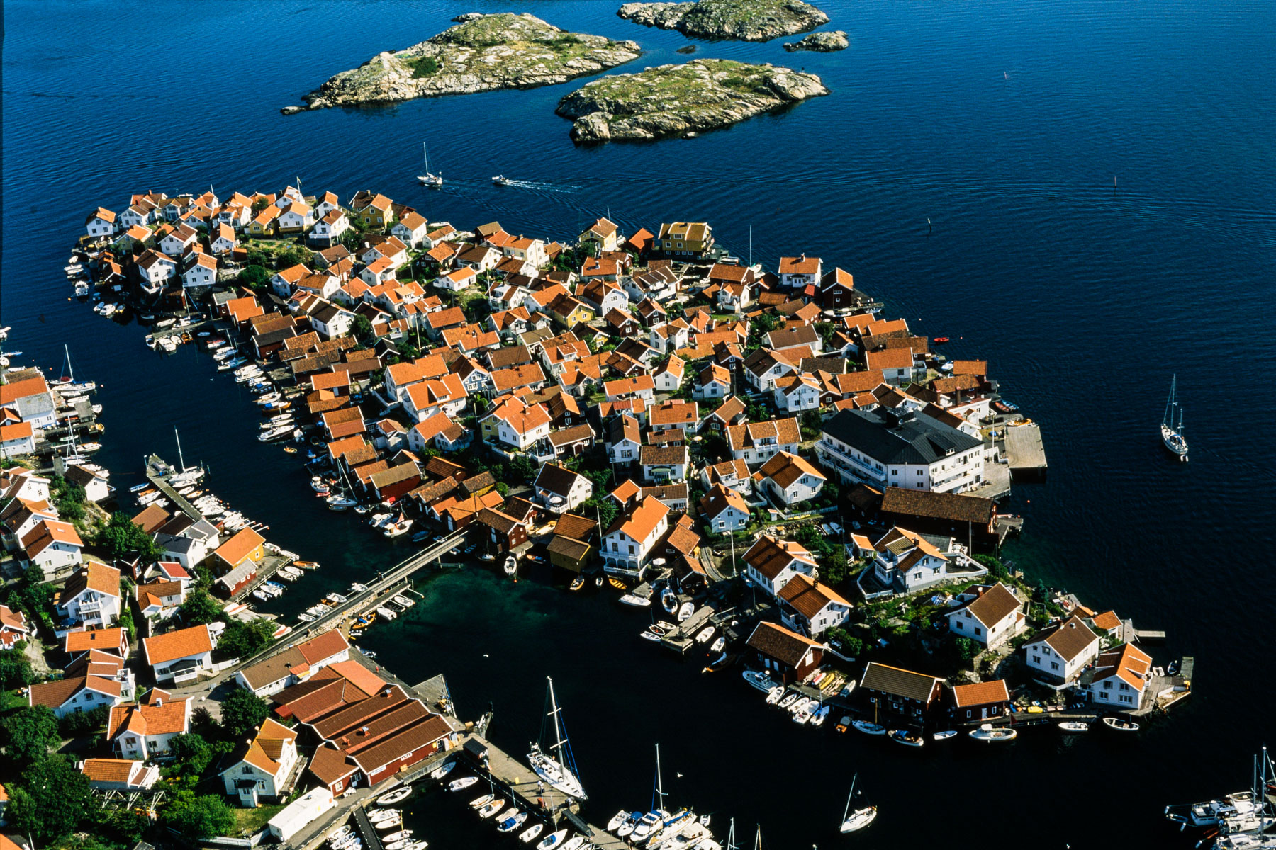 Village de Skärhamn, archipel de Bohuslän, Västra Götaland, Suède (58°00' N – 11°33' E).