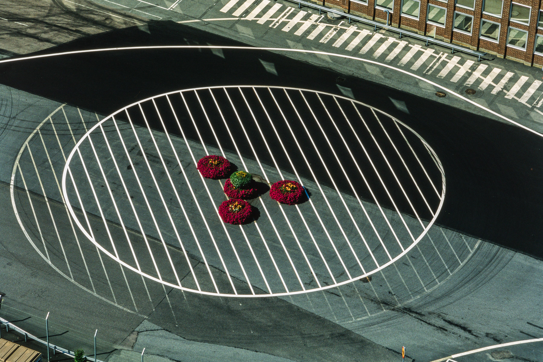 Rond-point d'un parking de l'usine Volvo - Göteborg - Suède