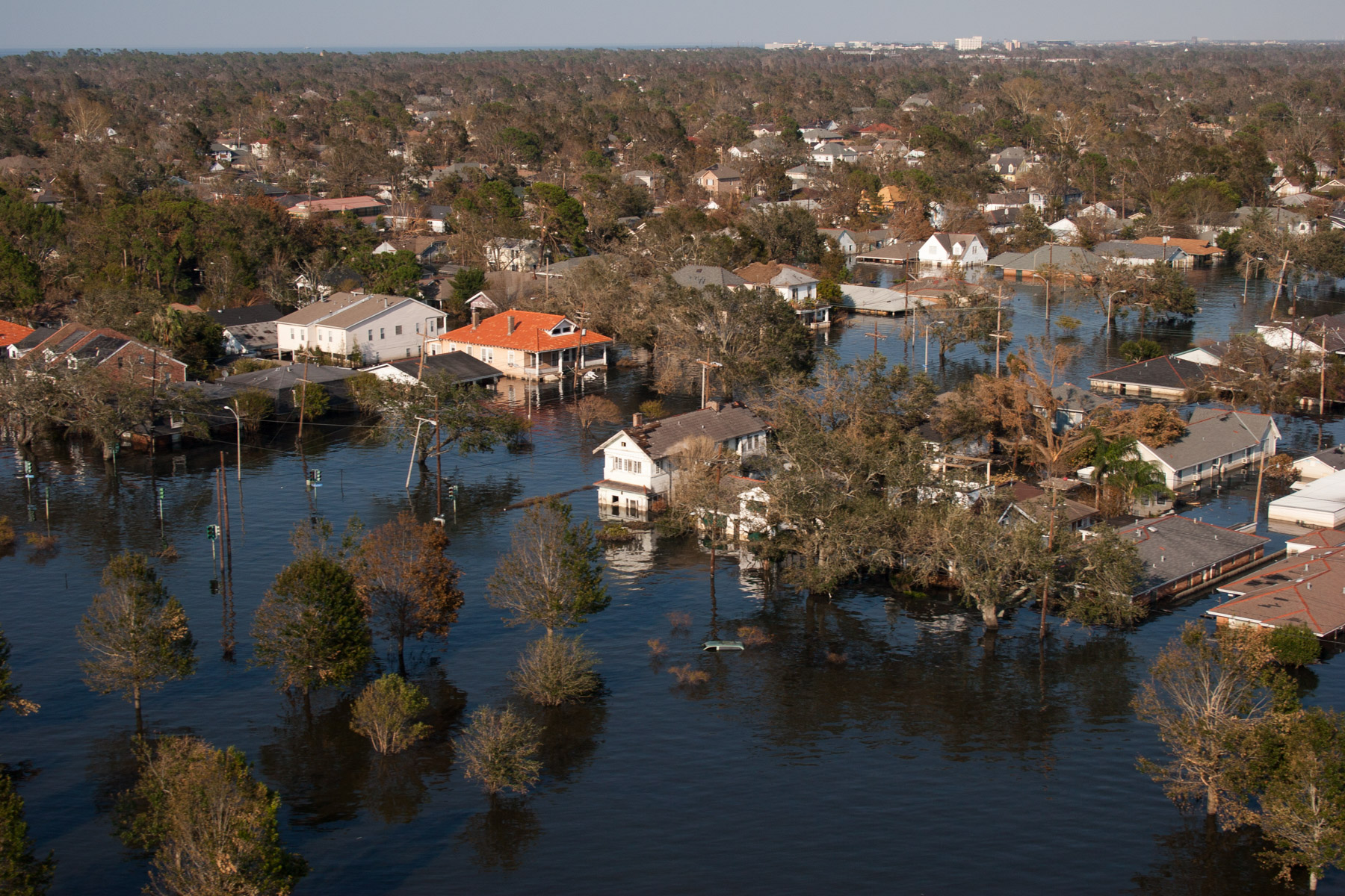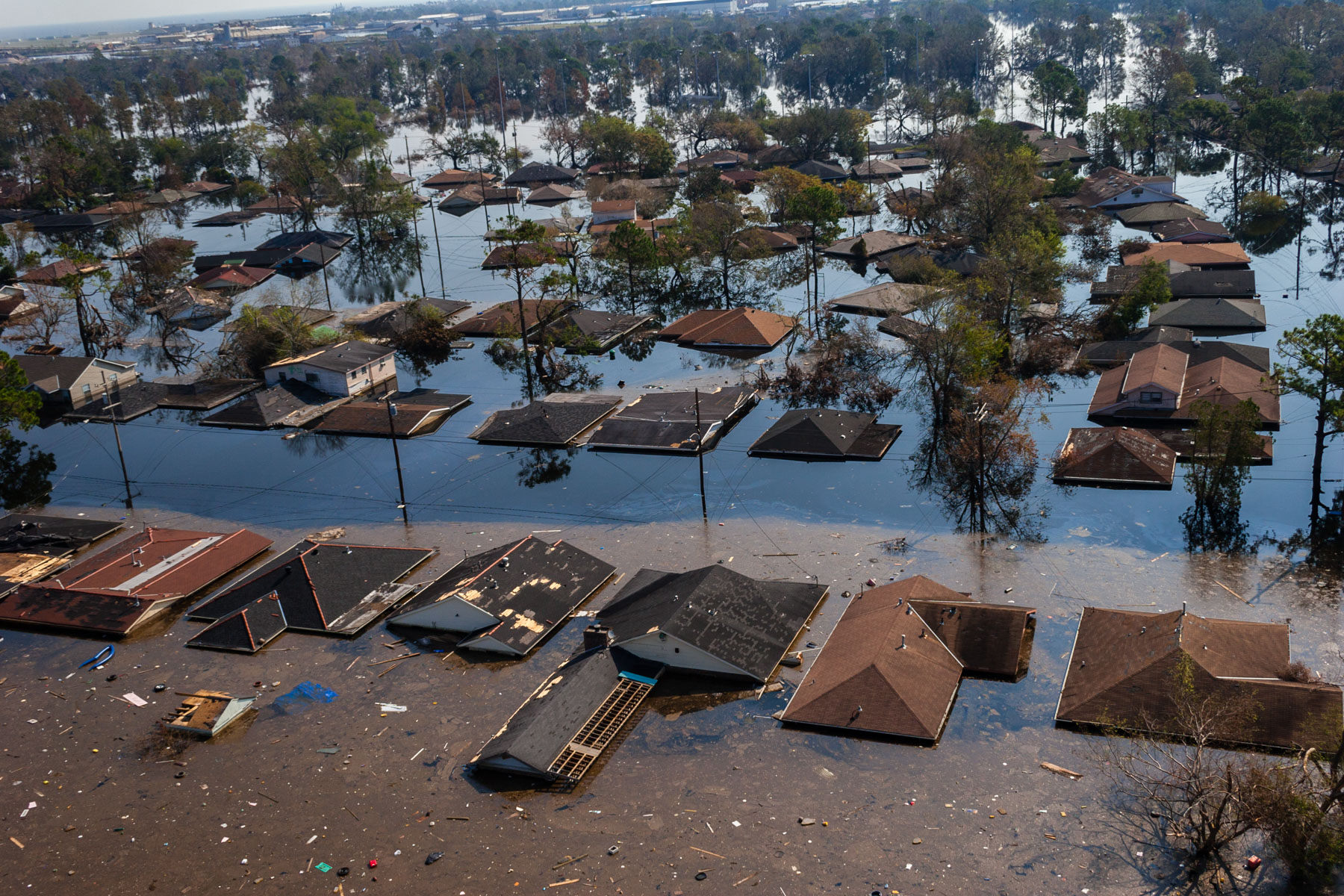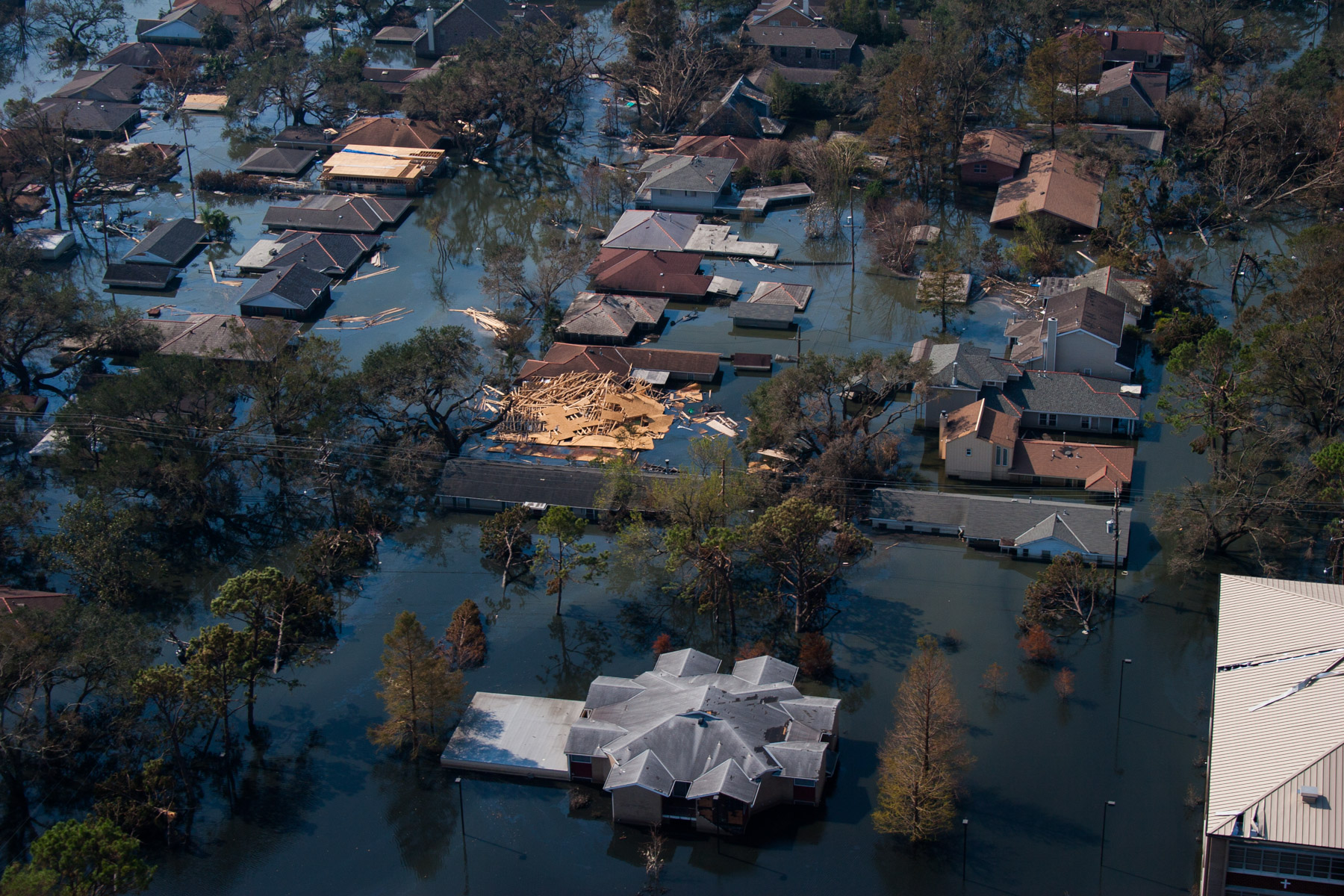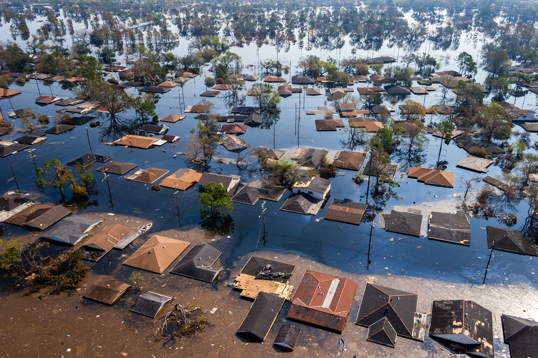 Northwest New Orleans near Pontchartrain Lake, after Hurricane Katrina, Louisiana, United States (30°00' N- 90°05' W).