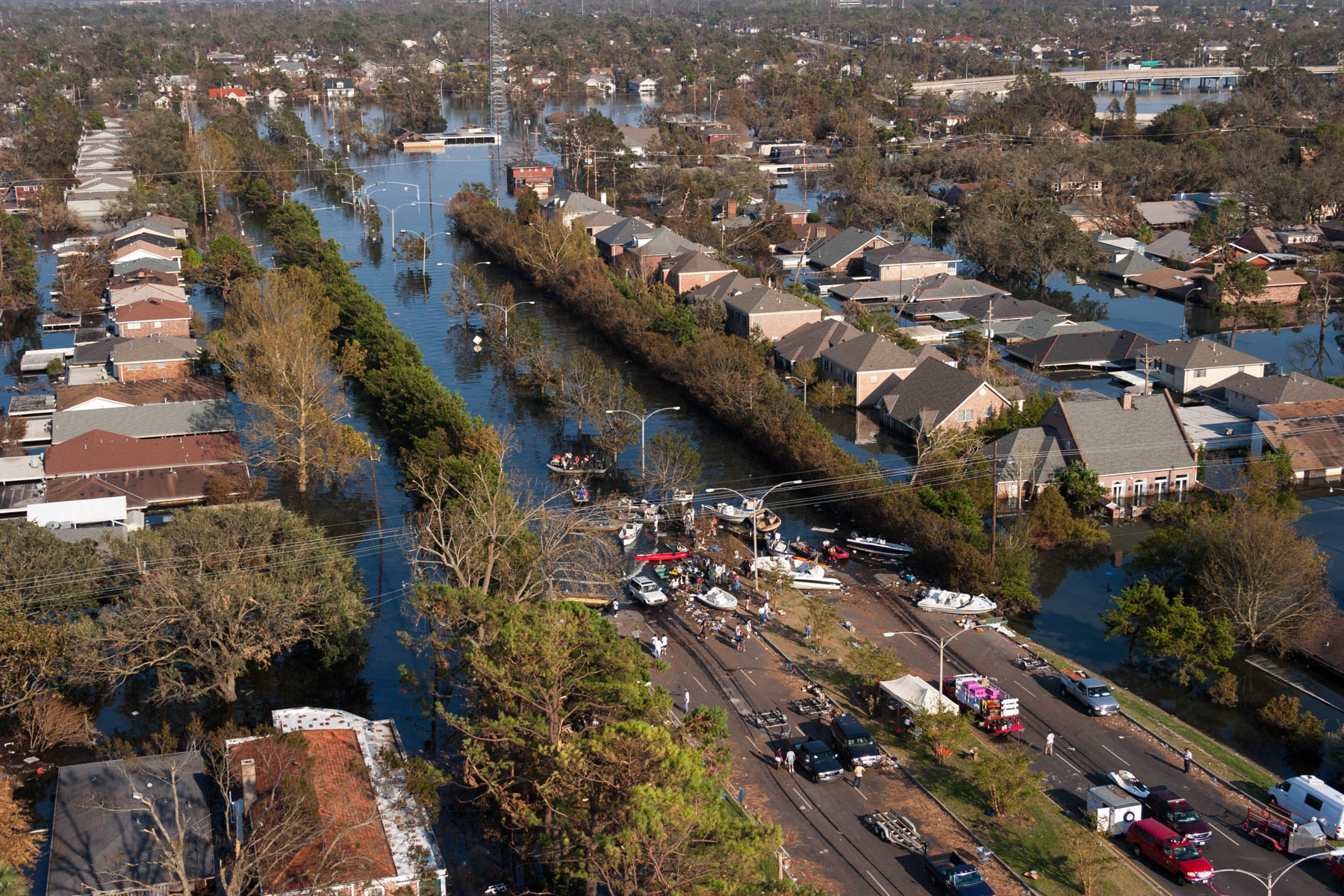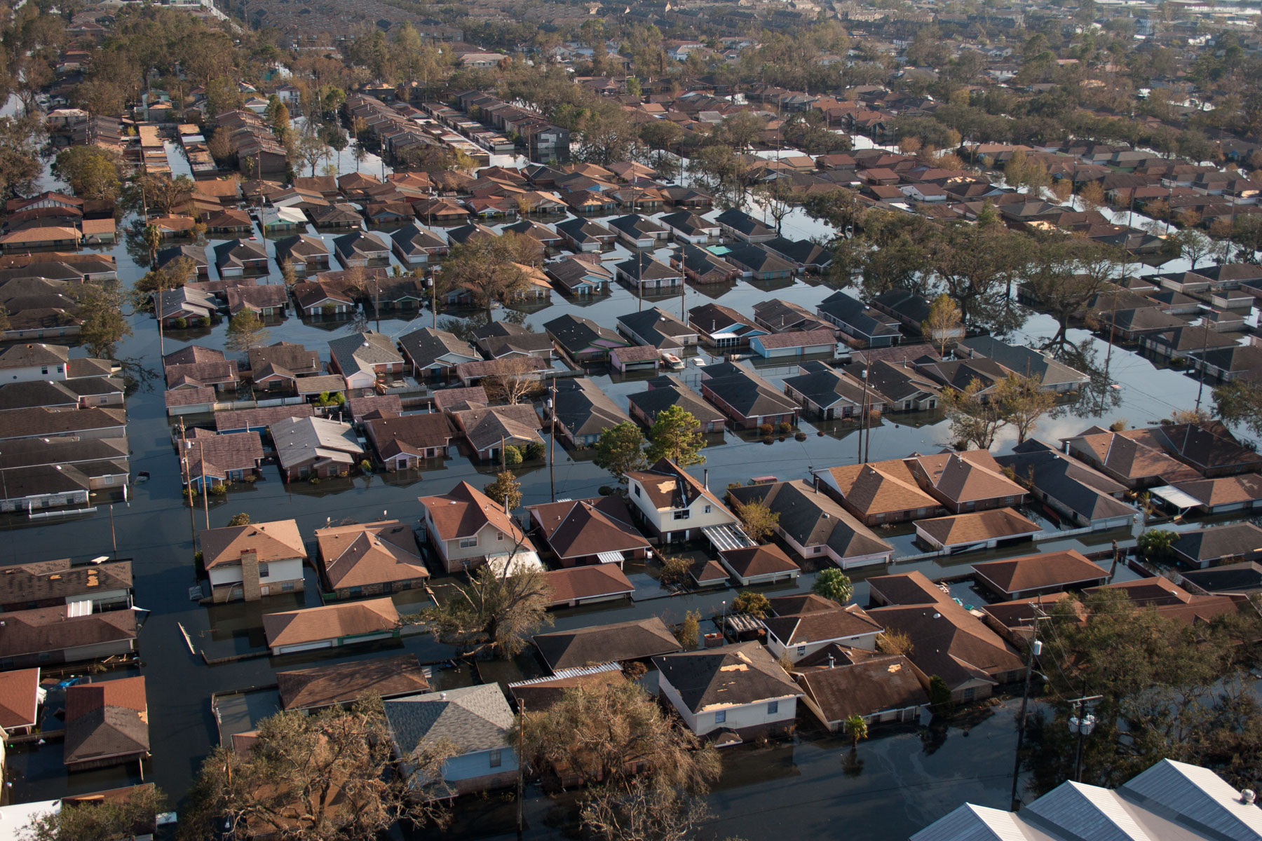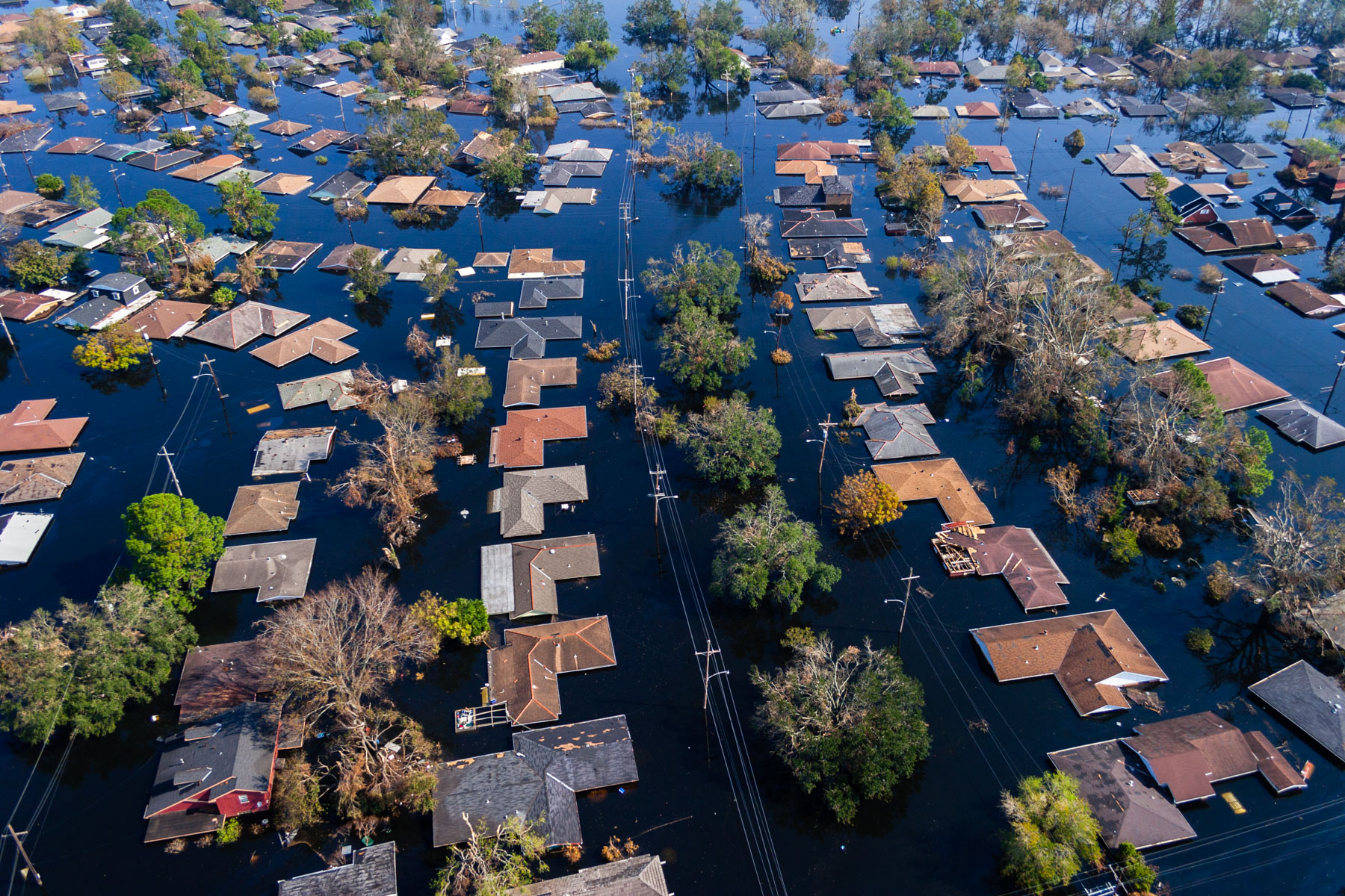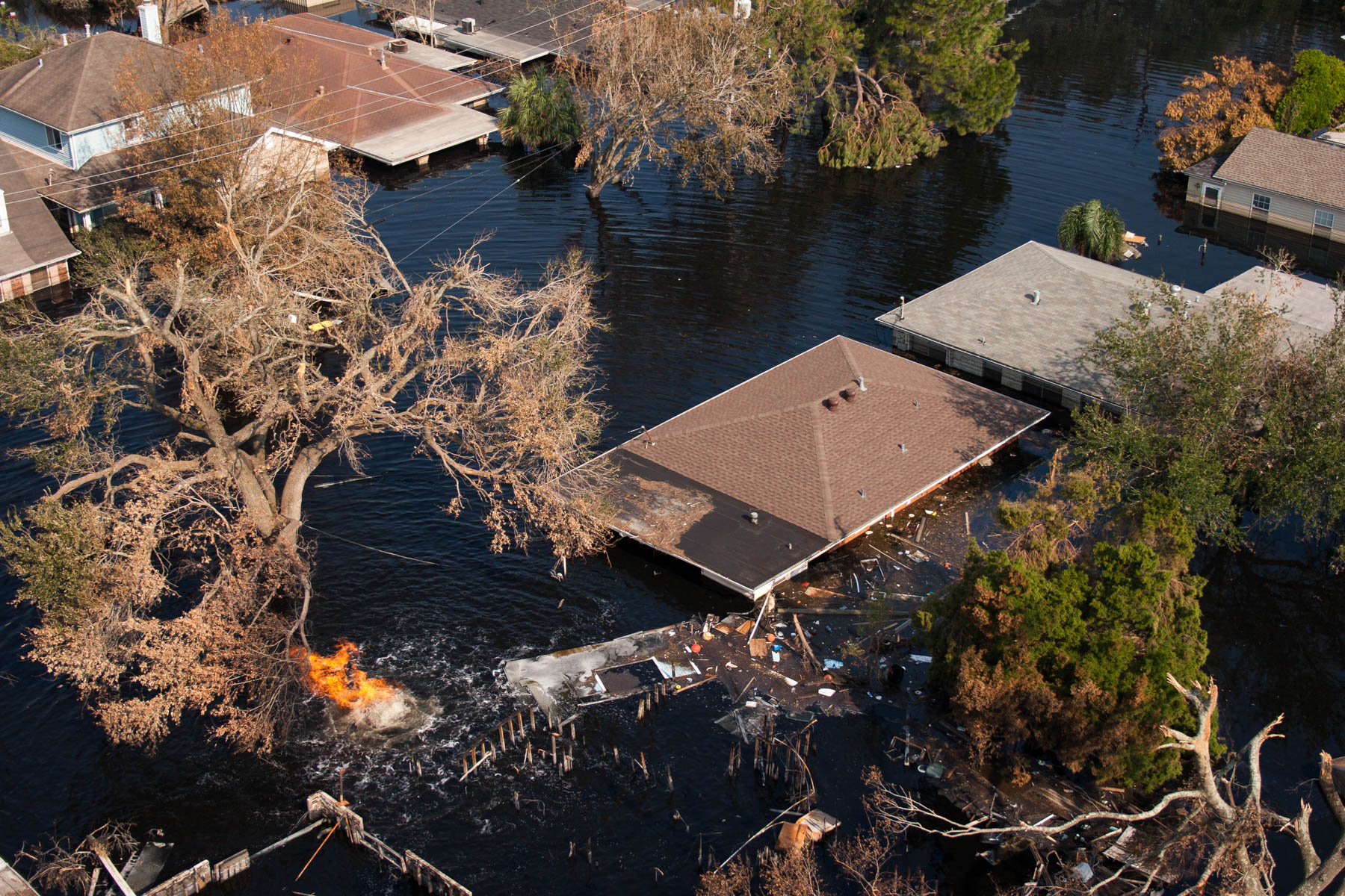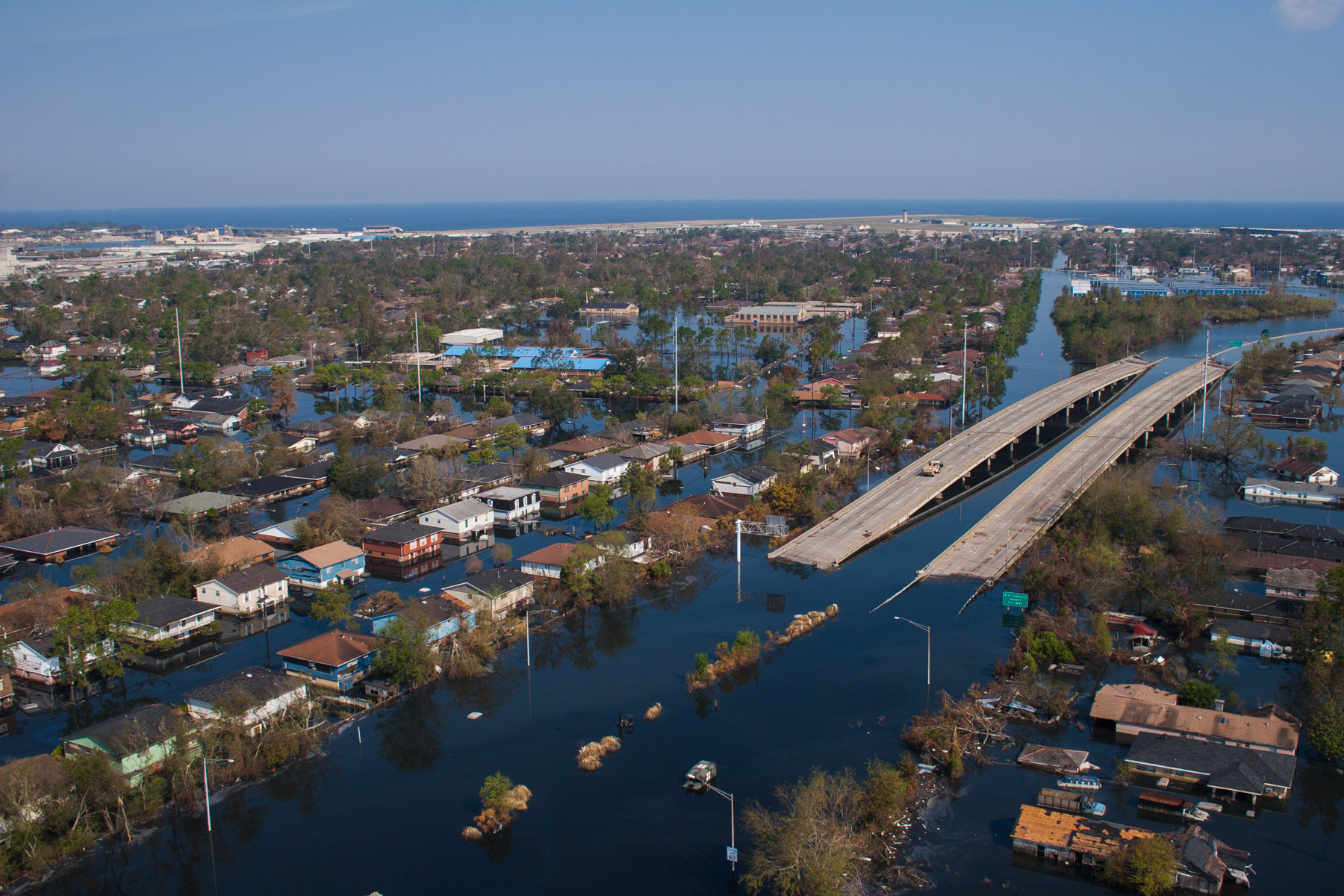 Northwest New Orleans near Pontchartrain Lake, after Hurricane Katrina, Louisiana, United States (30°00' N- 90°05' W).