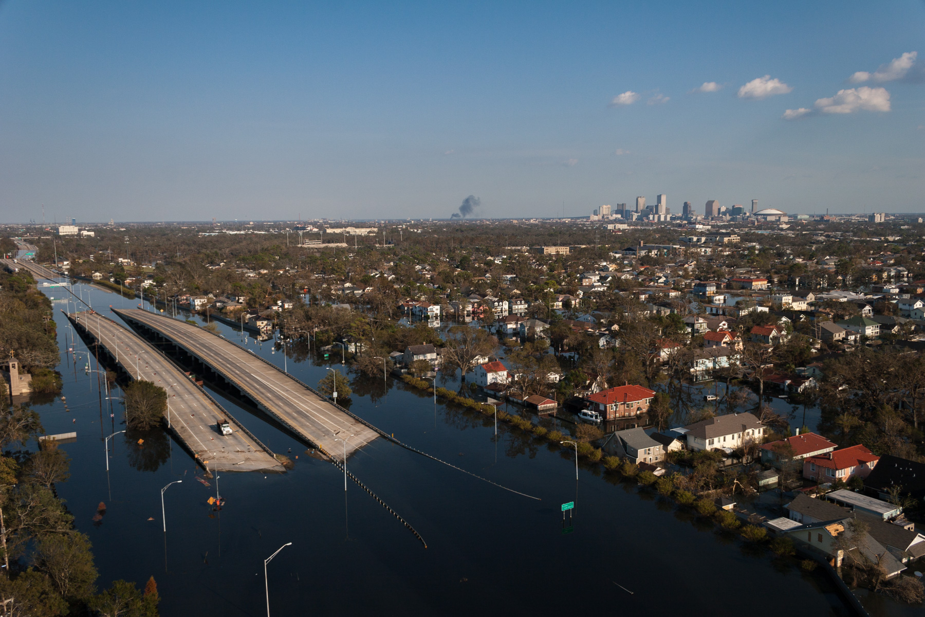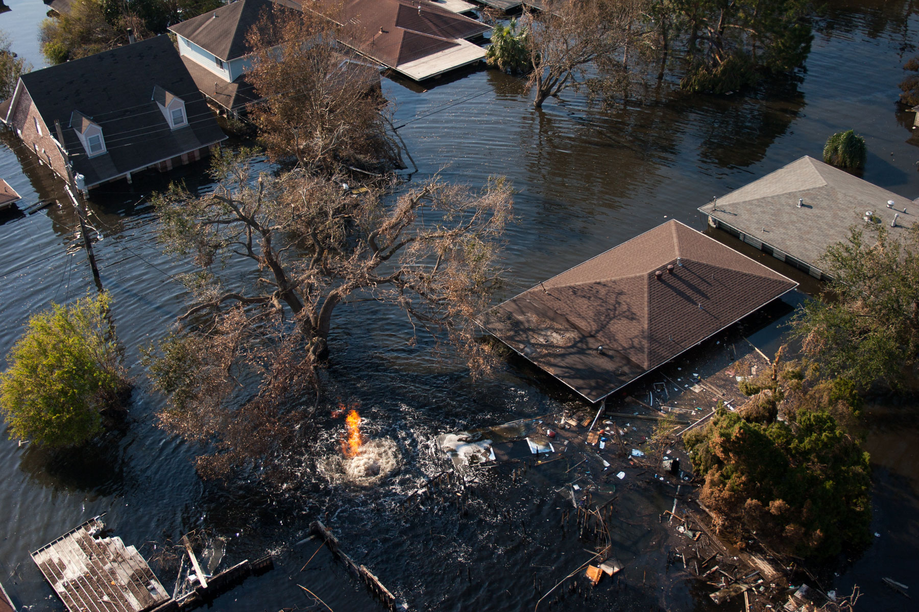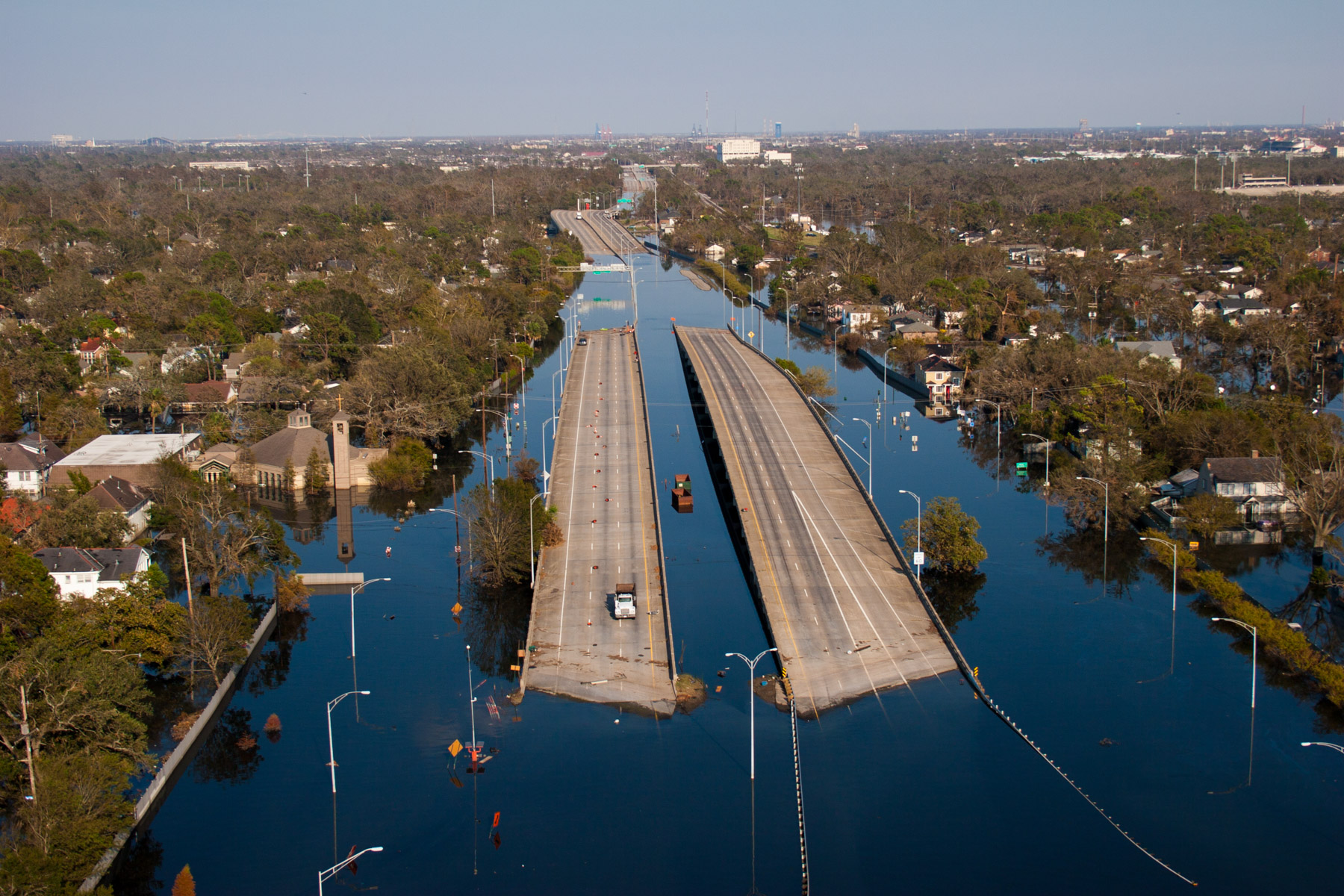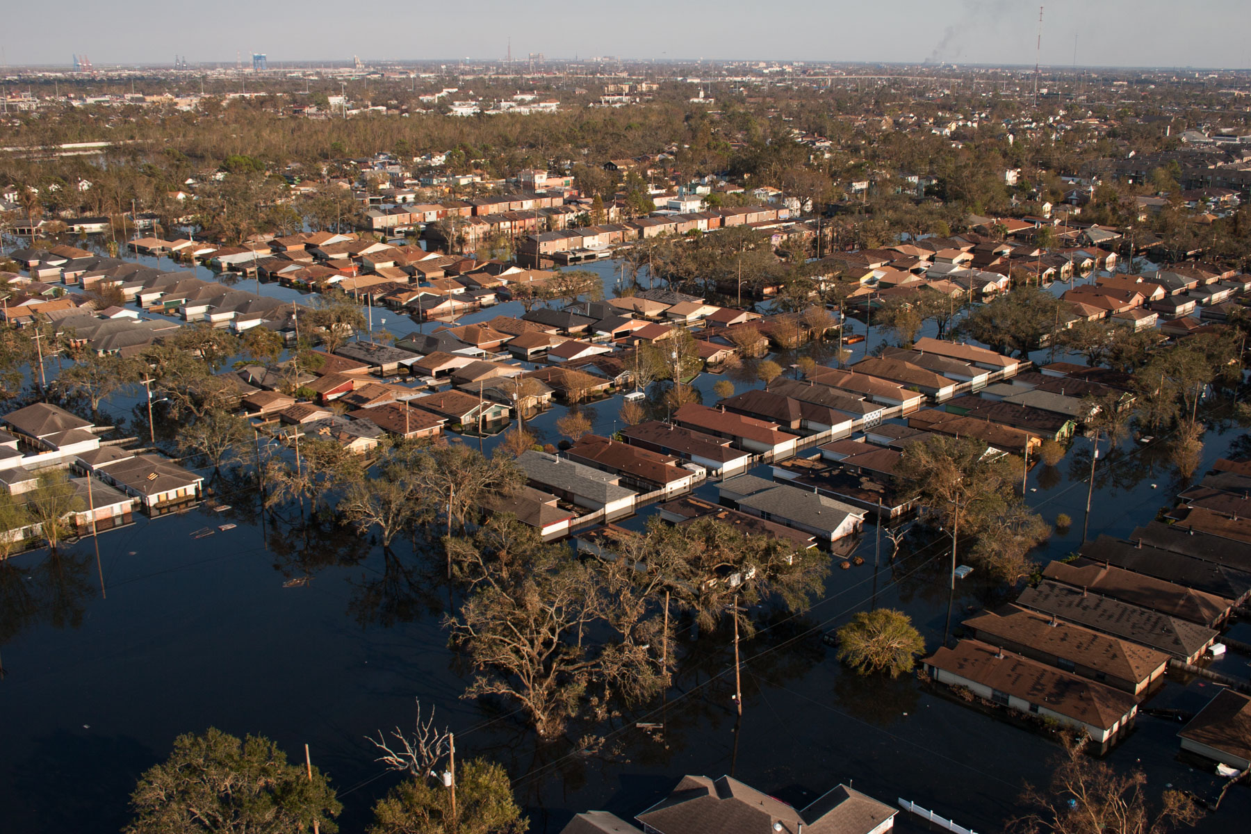 Northwest New Orleans near Pontchartrain Lake, after Hurricane Katrina, Louisiana, United States (30°00' N- 90°05' W).