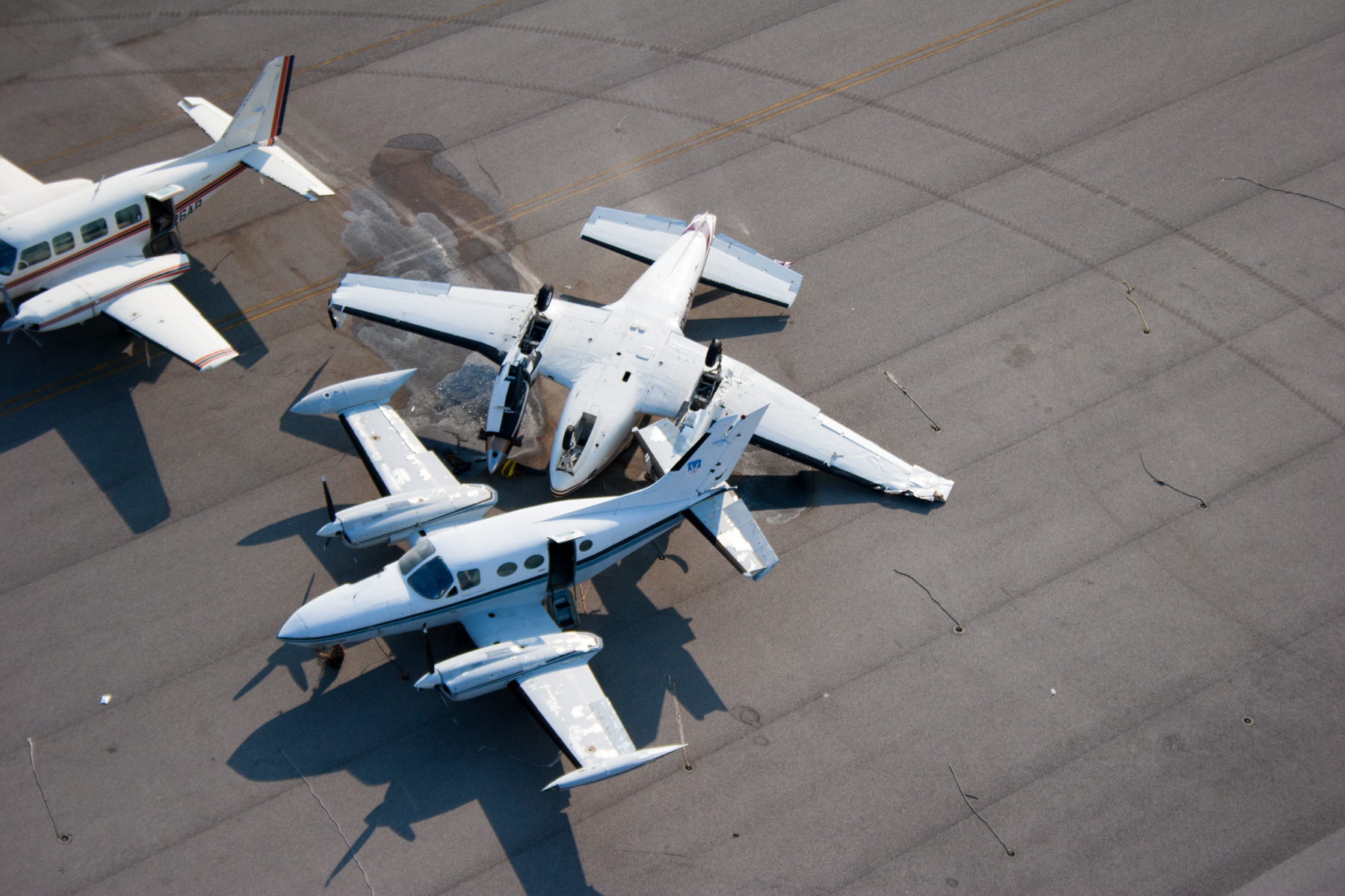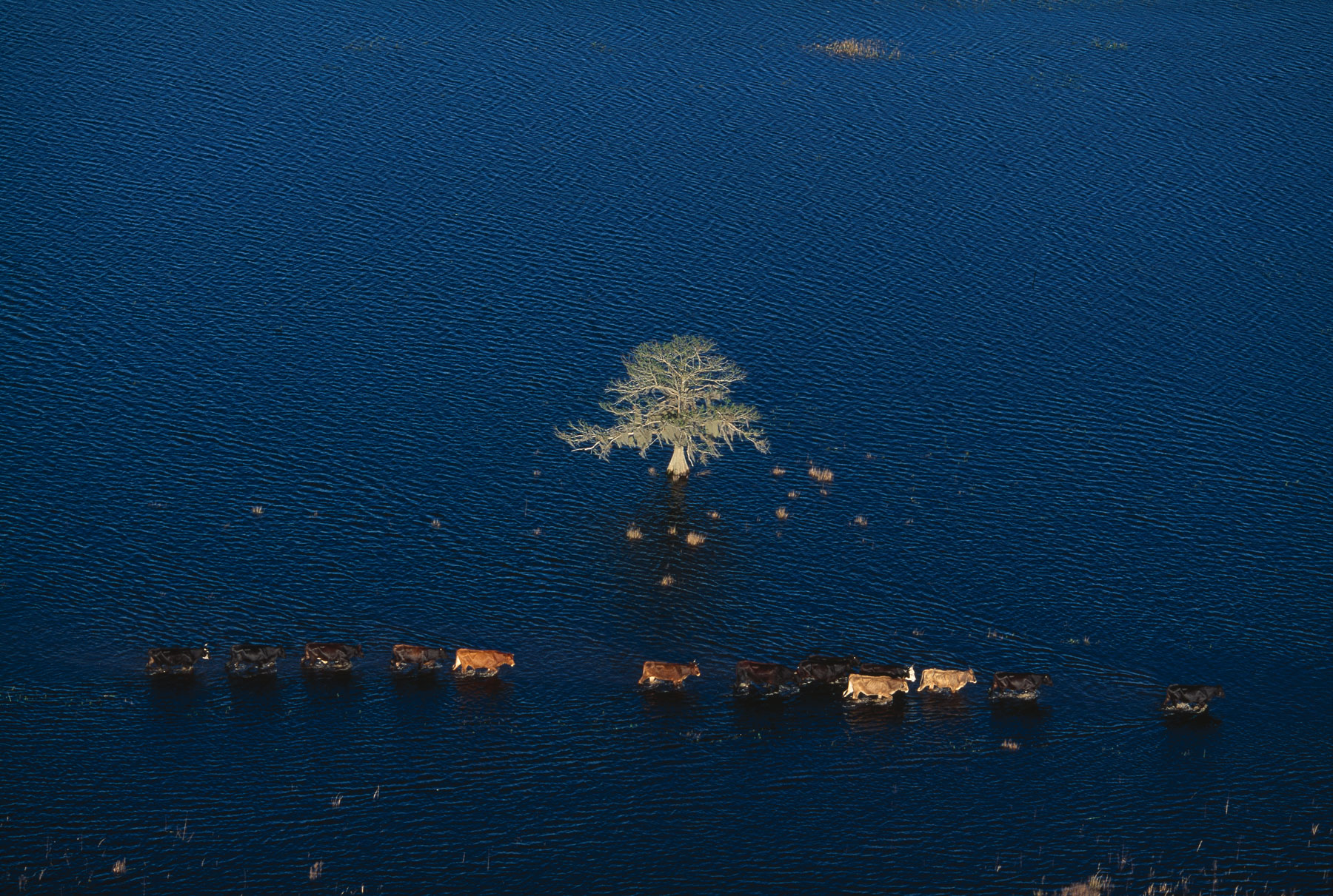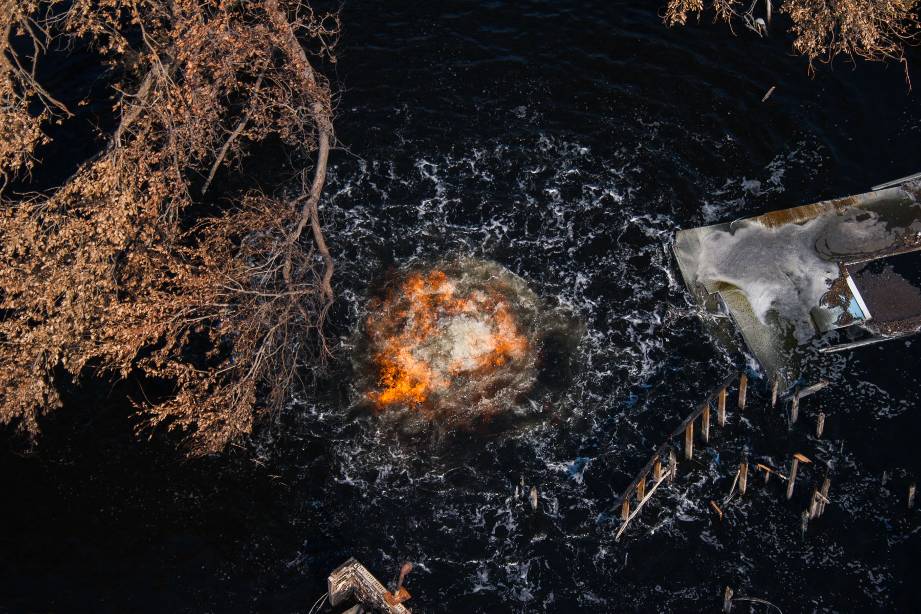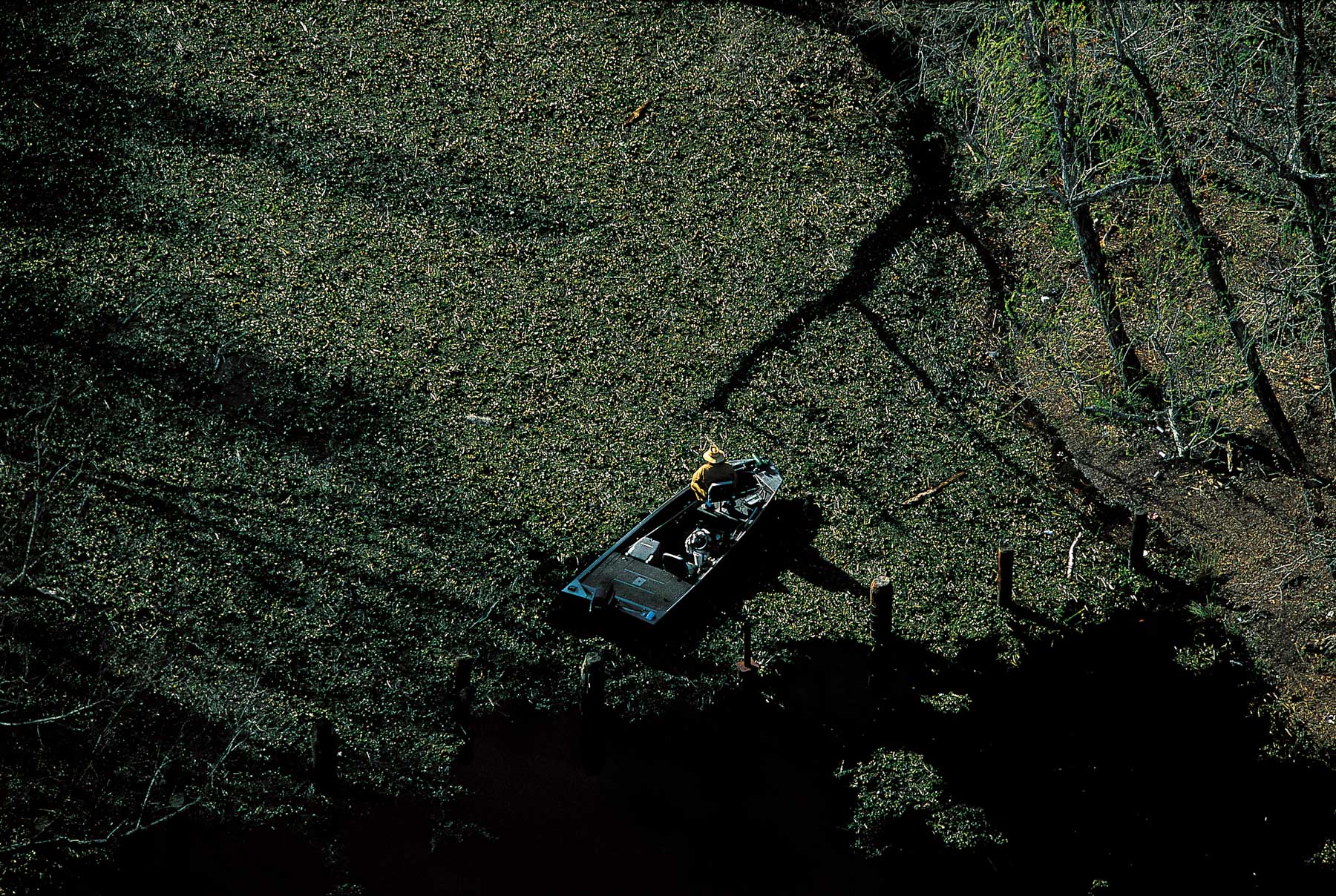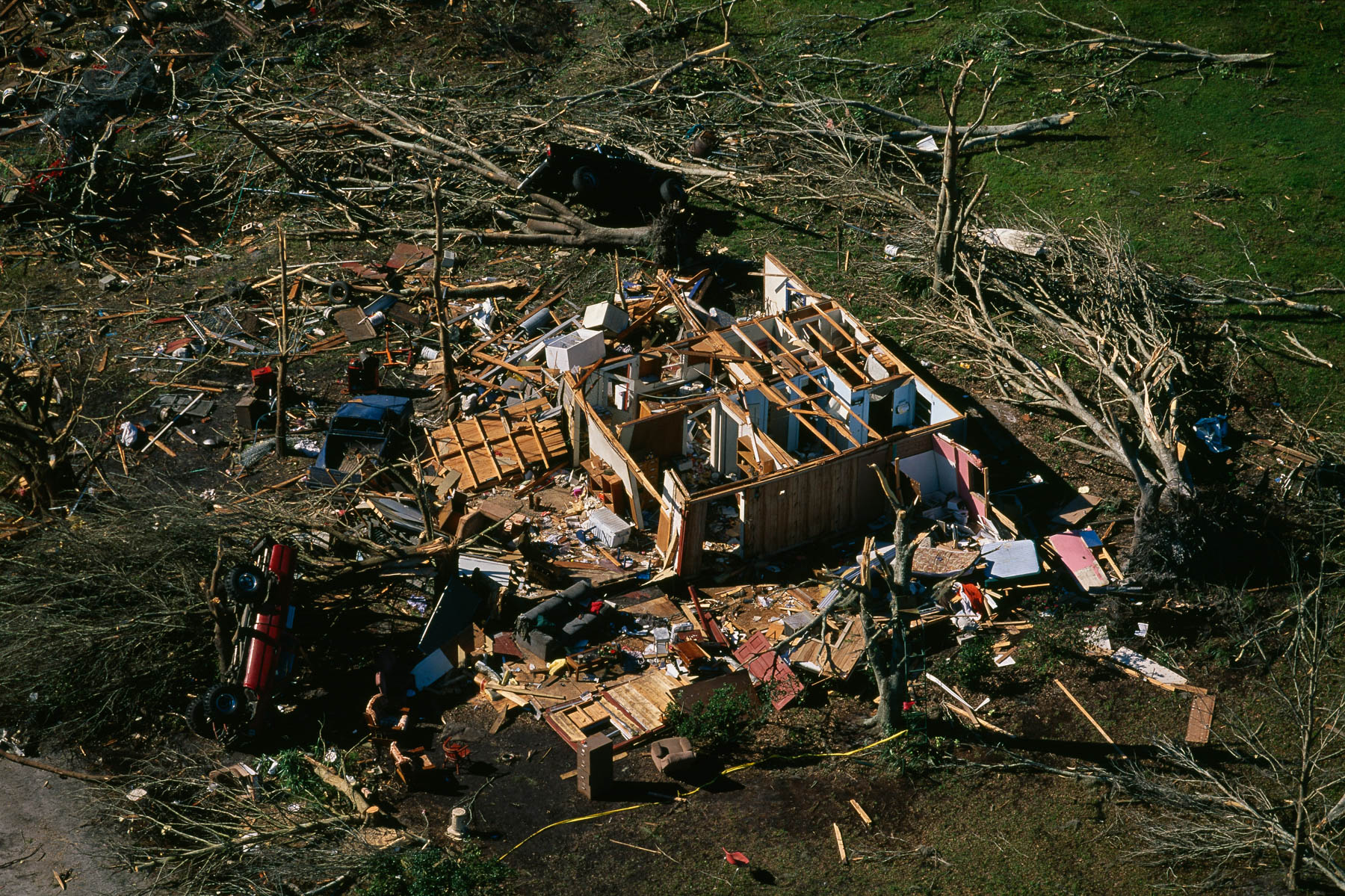 La Nouvelle-Orléans inondée après le passage de l’ouragan Katrina - Crah de l'hélicoptère de Yann Arthus-Bertrand sur le toit d'une maison, Louisiane, Etats-Unis