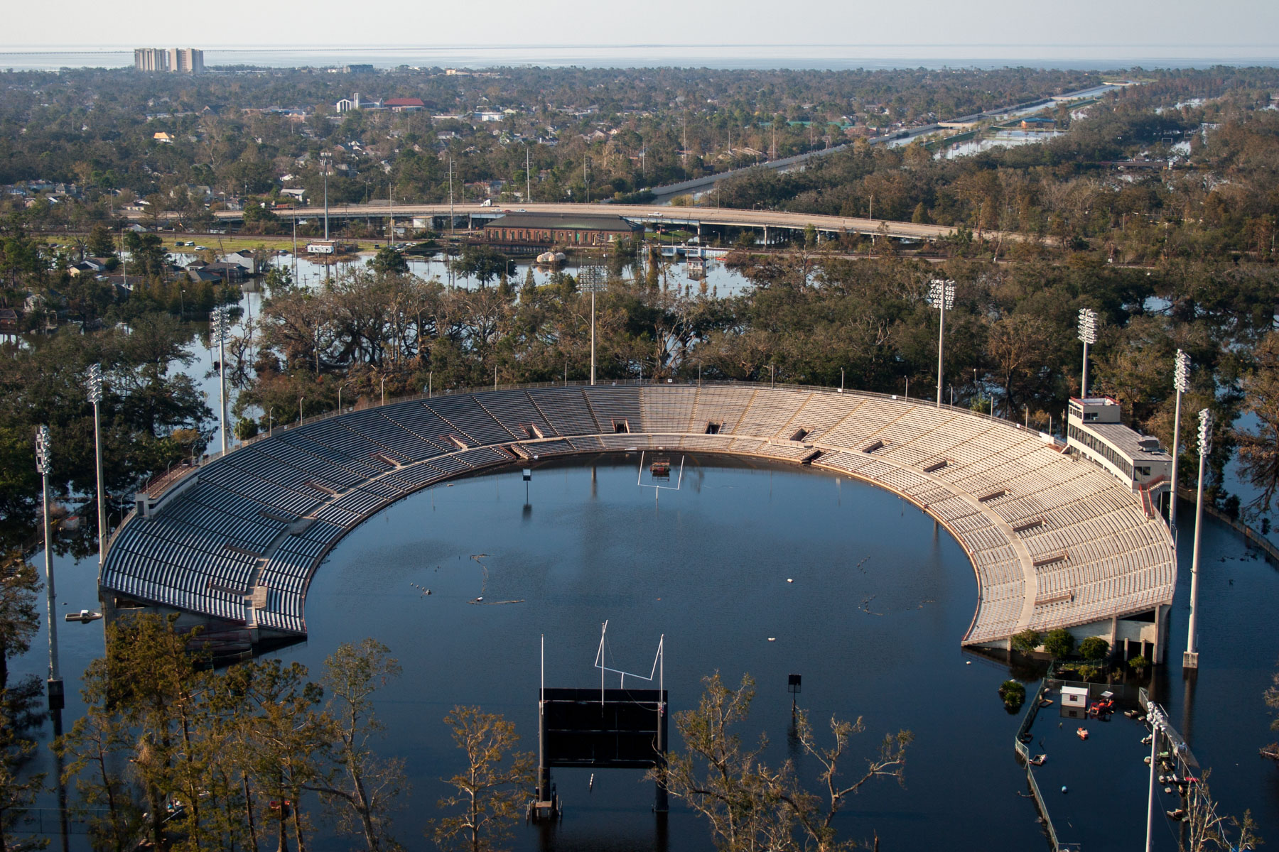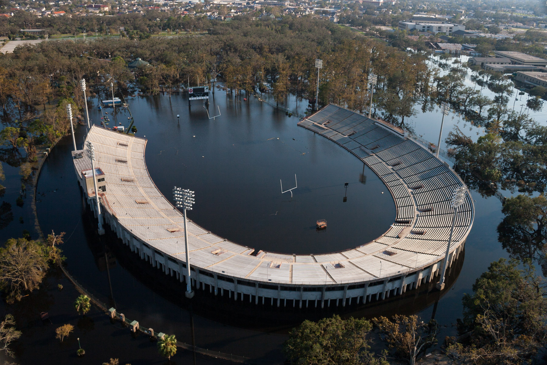 La Nouvelle-Orléans inondée après le passage de l’ouragan Katrina - Tad Gormley Stadium (City Park Stadium), Louisiane, Etats-Unis (29°59'23.23"N -90° 5'58.71"O)
