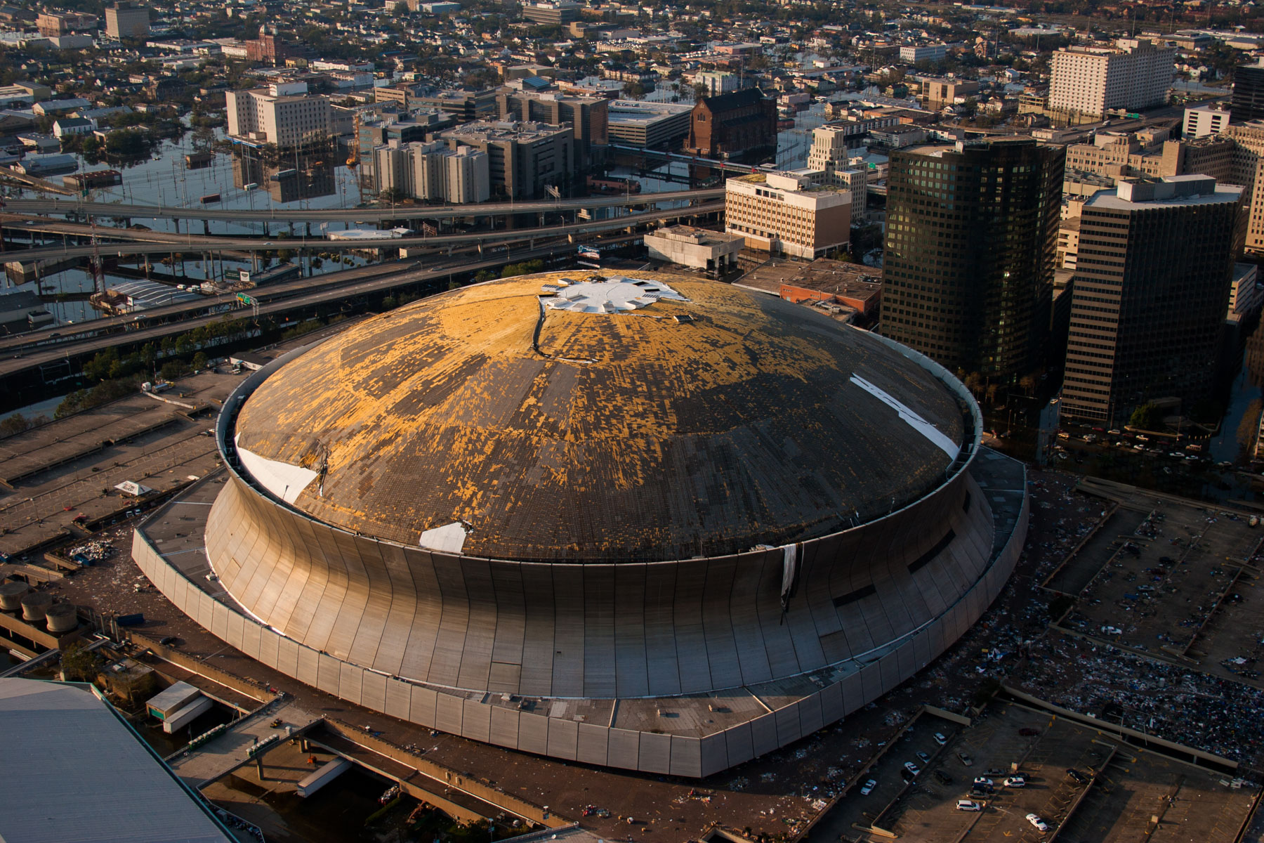 La Nouvelle-Orléans inondée après le passage de l’ouragan Katrina - Le Louisiana Superdome, Louisiane, Etats-Unis