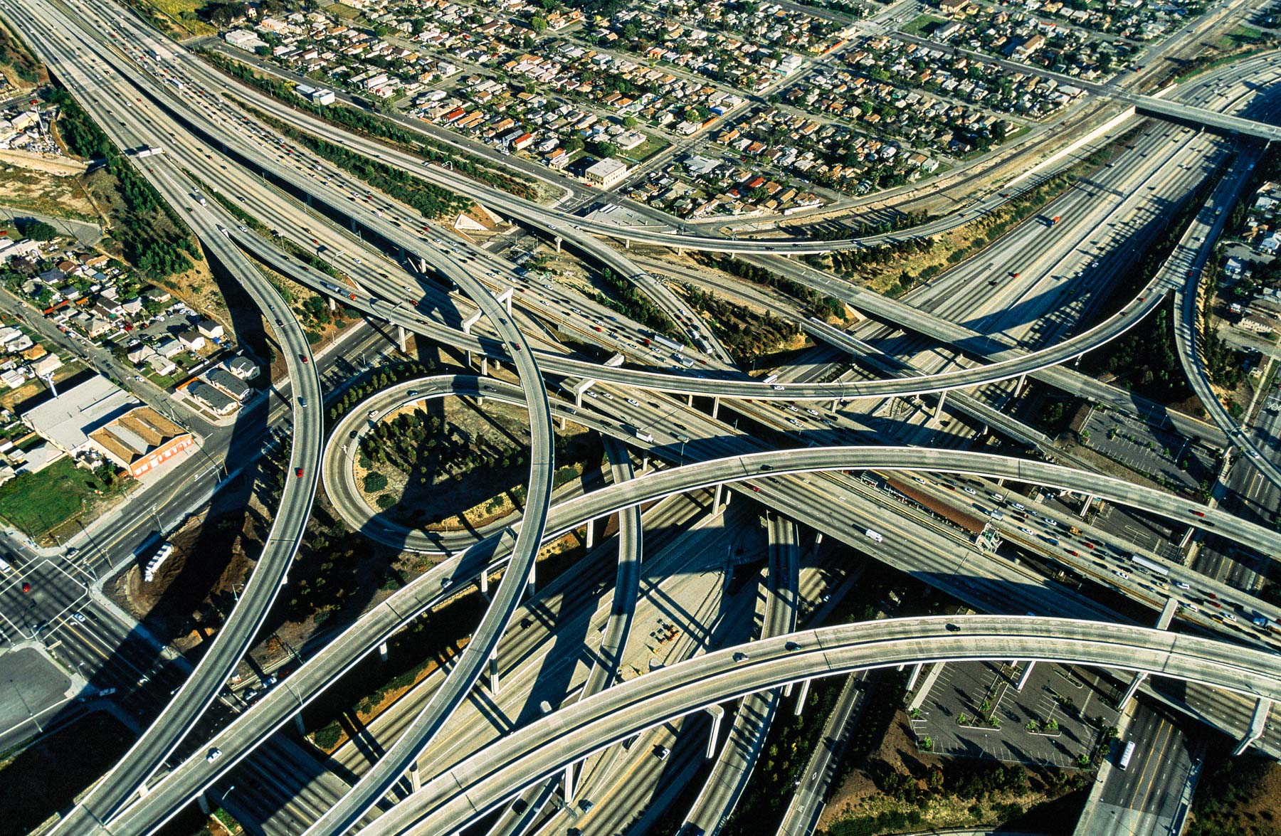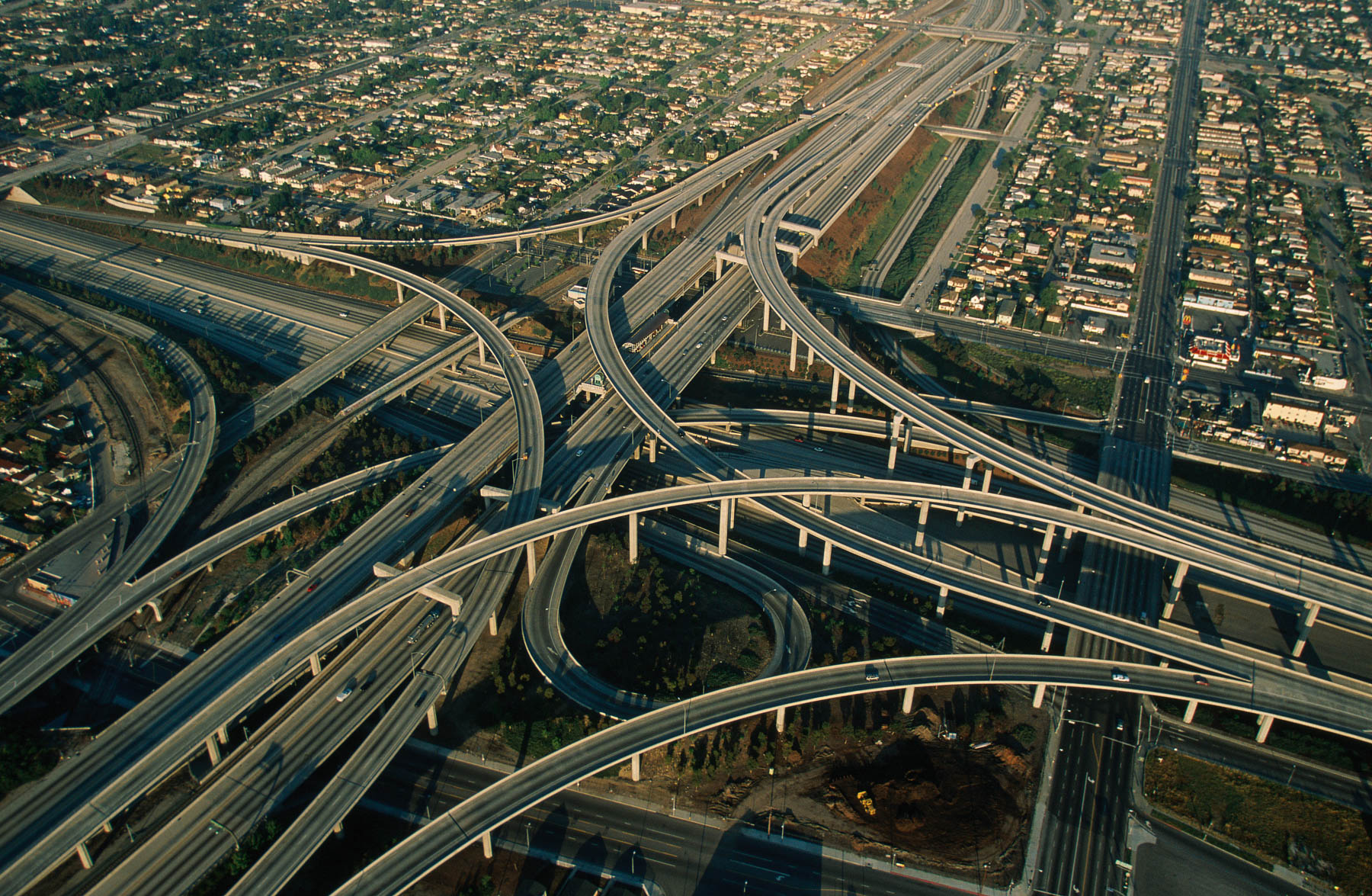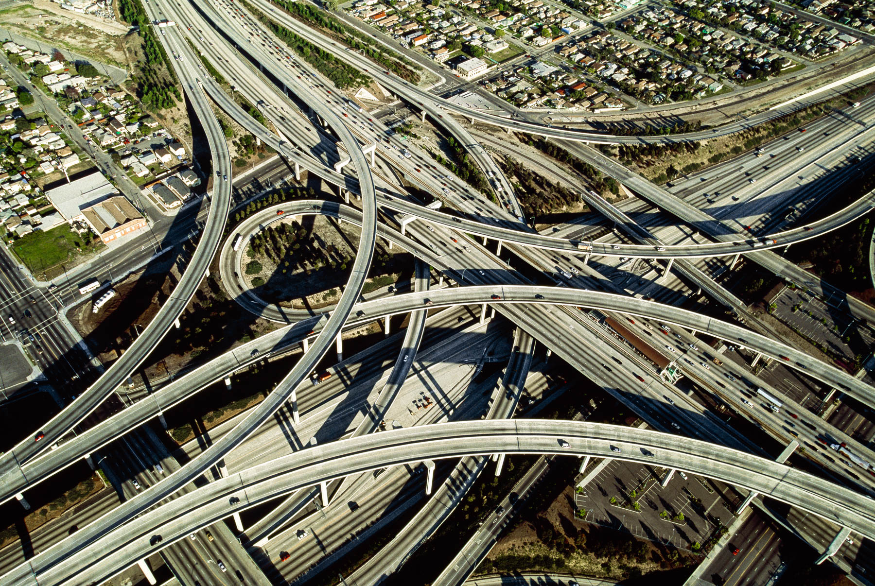 Echangeur entre les autoroutes 105 et 110, Los Angeles, Etats-Unis (33°56’ N - 118°17’ O).