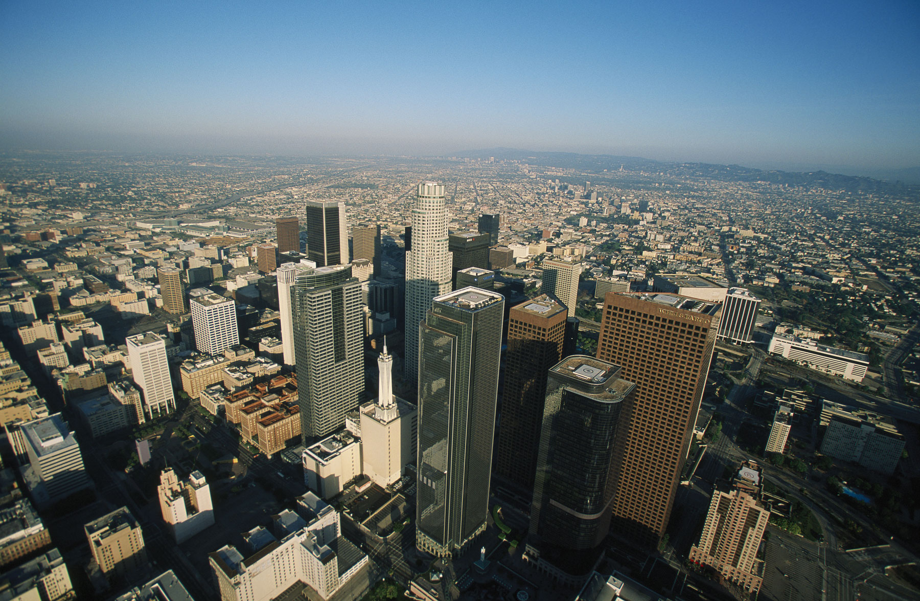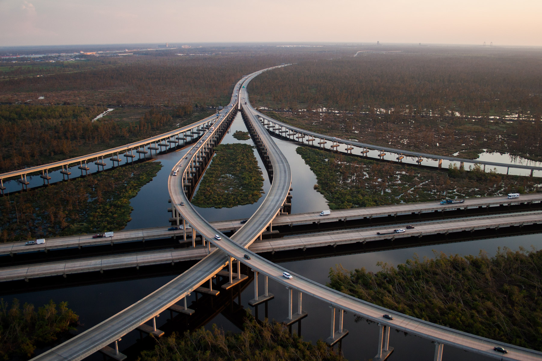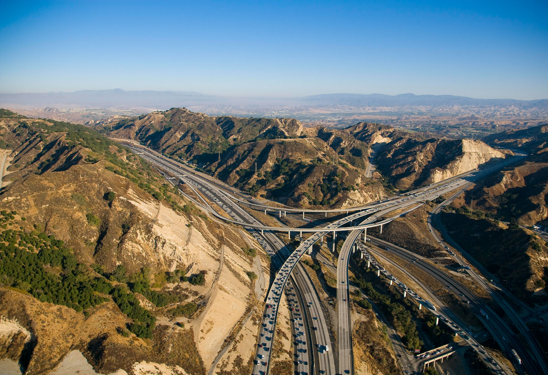 Echangeur entre les autoroutes 105 et 110, Los Angeles, Etats-Unis (33°56’ N - 118°17’ O).