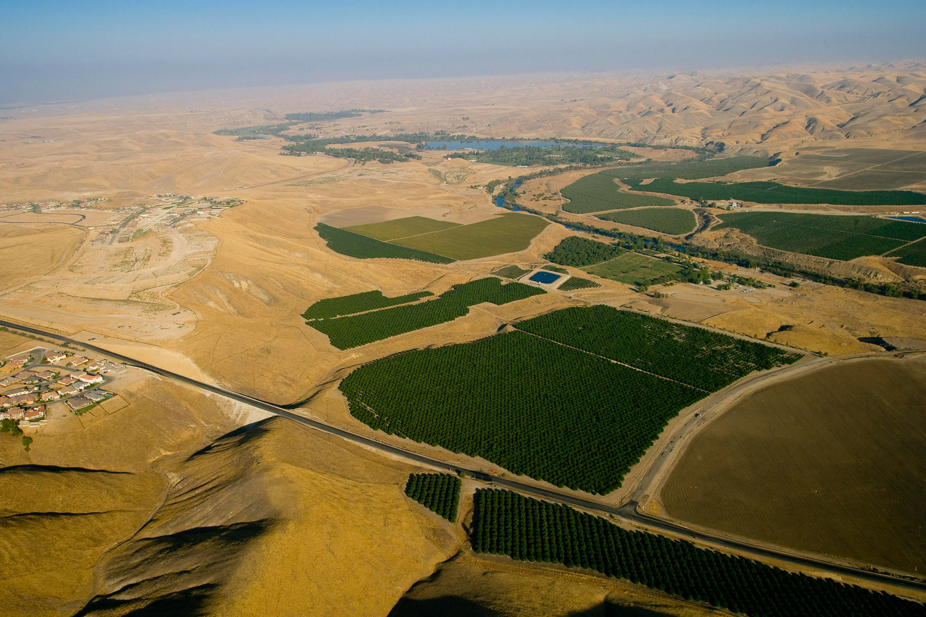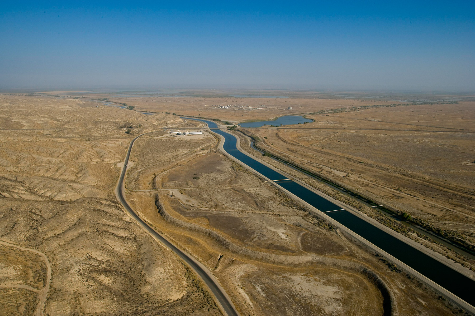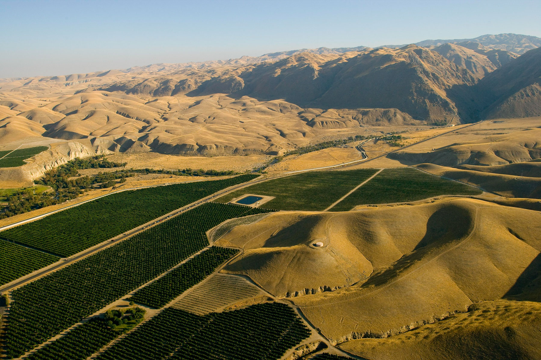Paysage et réservoir d'eau entre Los Angeles et Bakersfield, Californie, Etats Unis