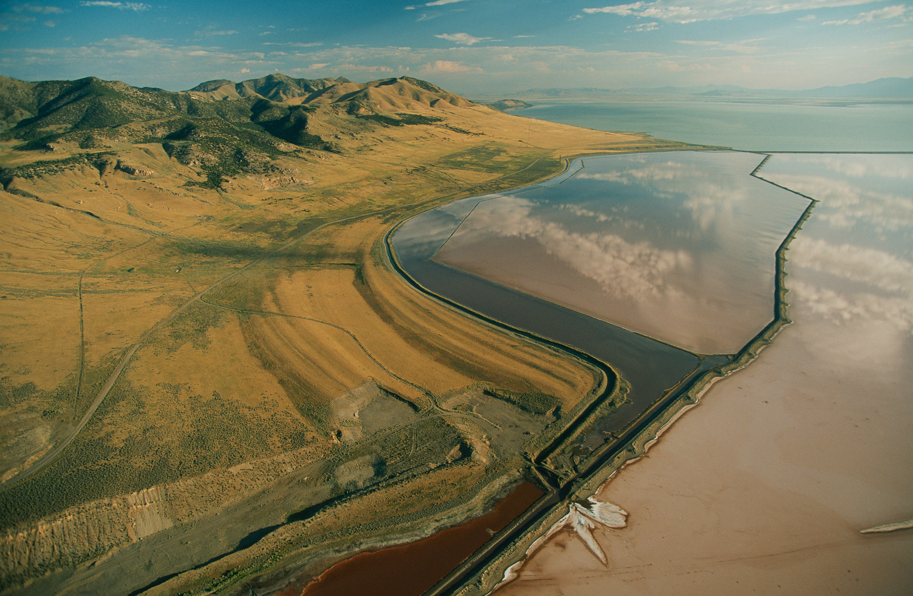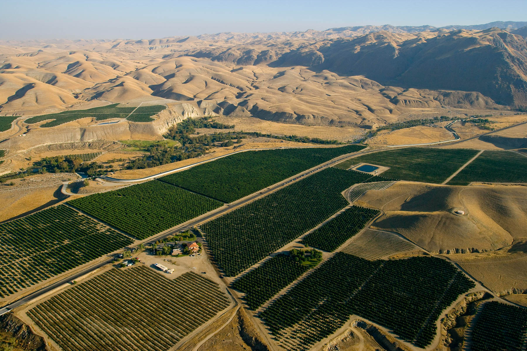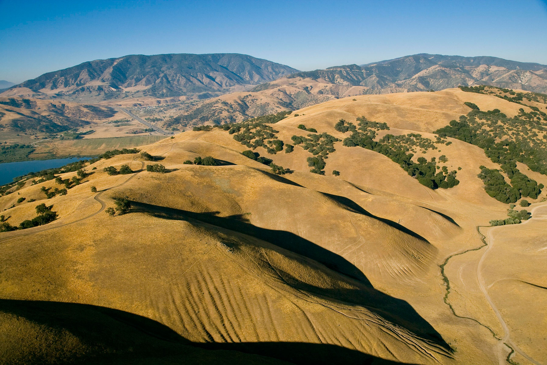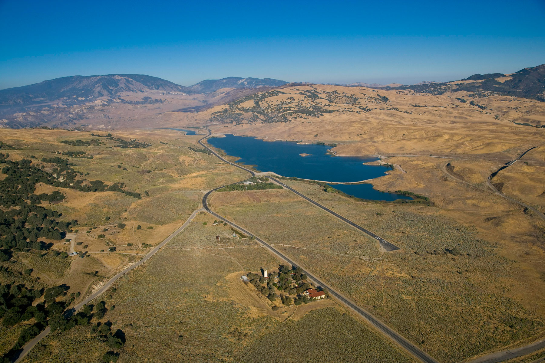 Paysage et réservoir d'eau entre Los Angeles et Bakersfield, Californie, Etats Unis