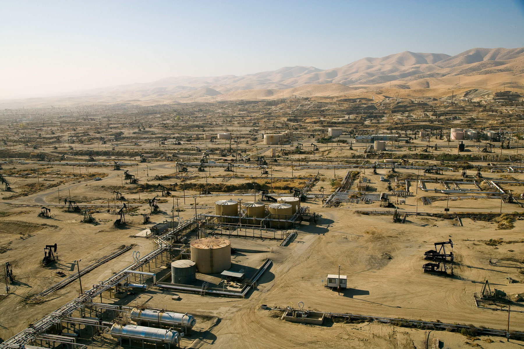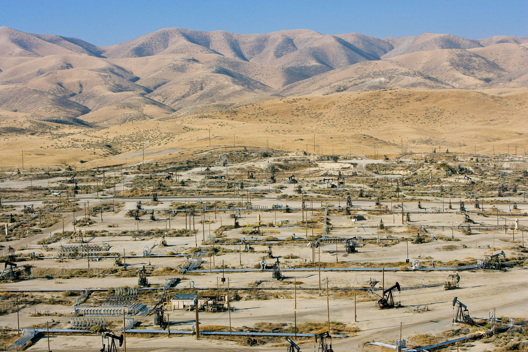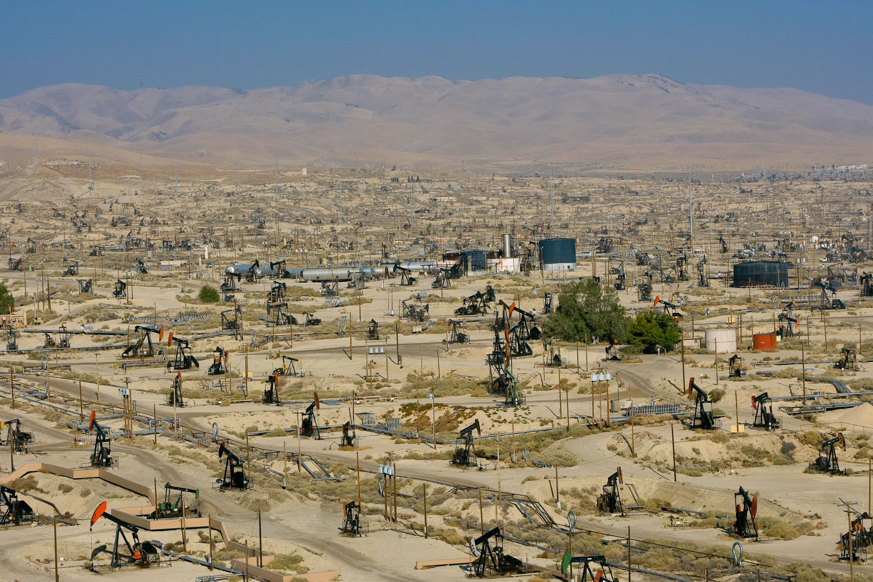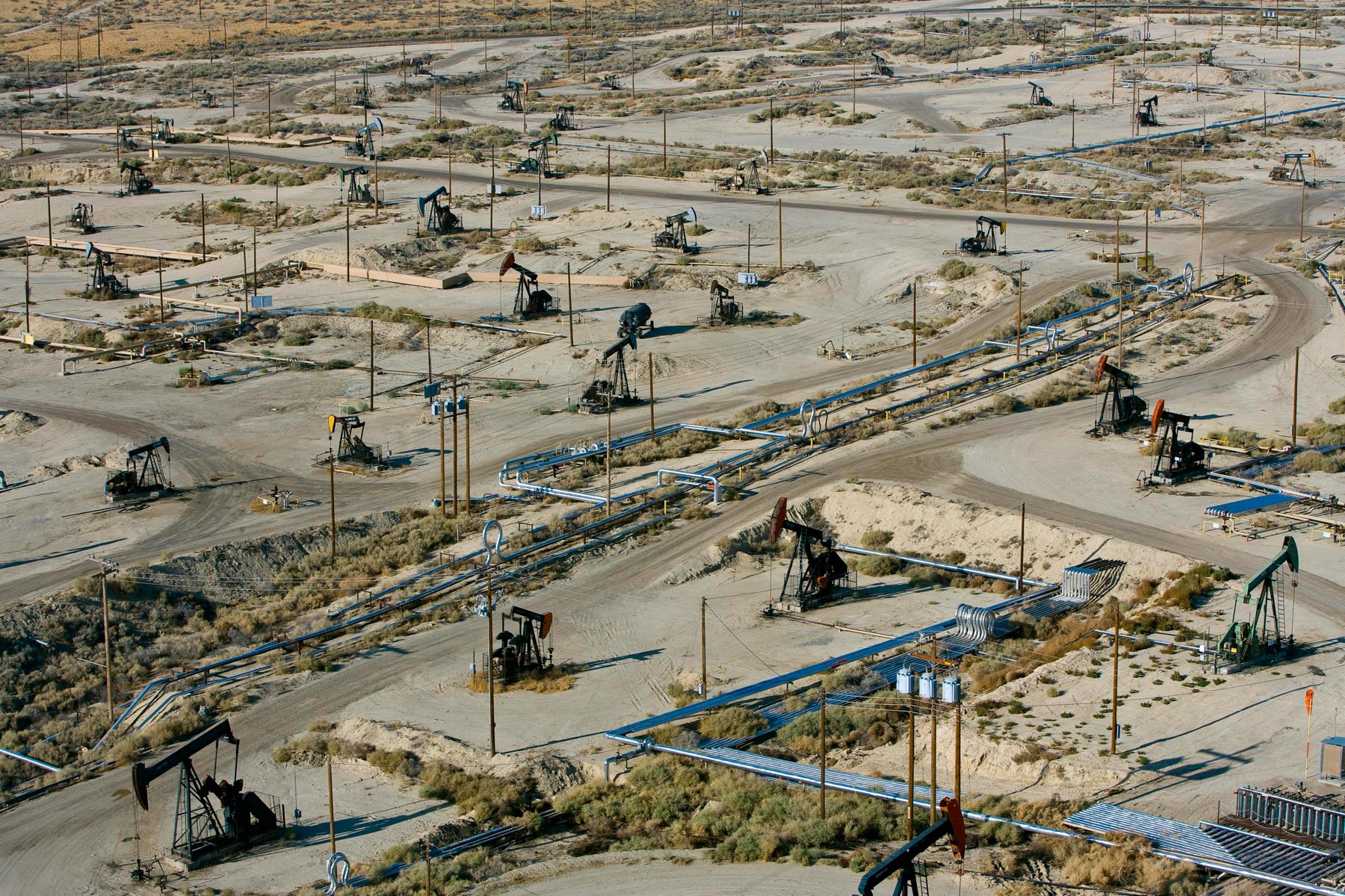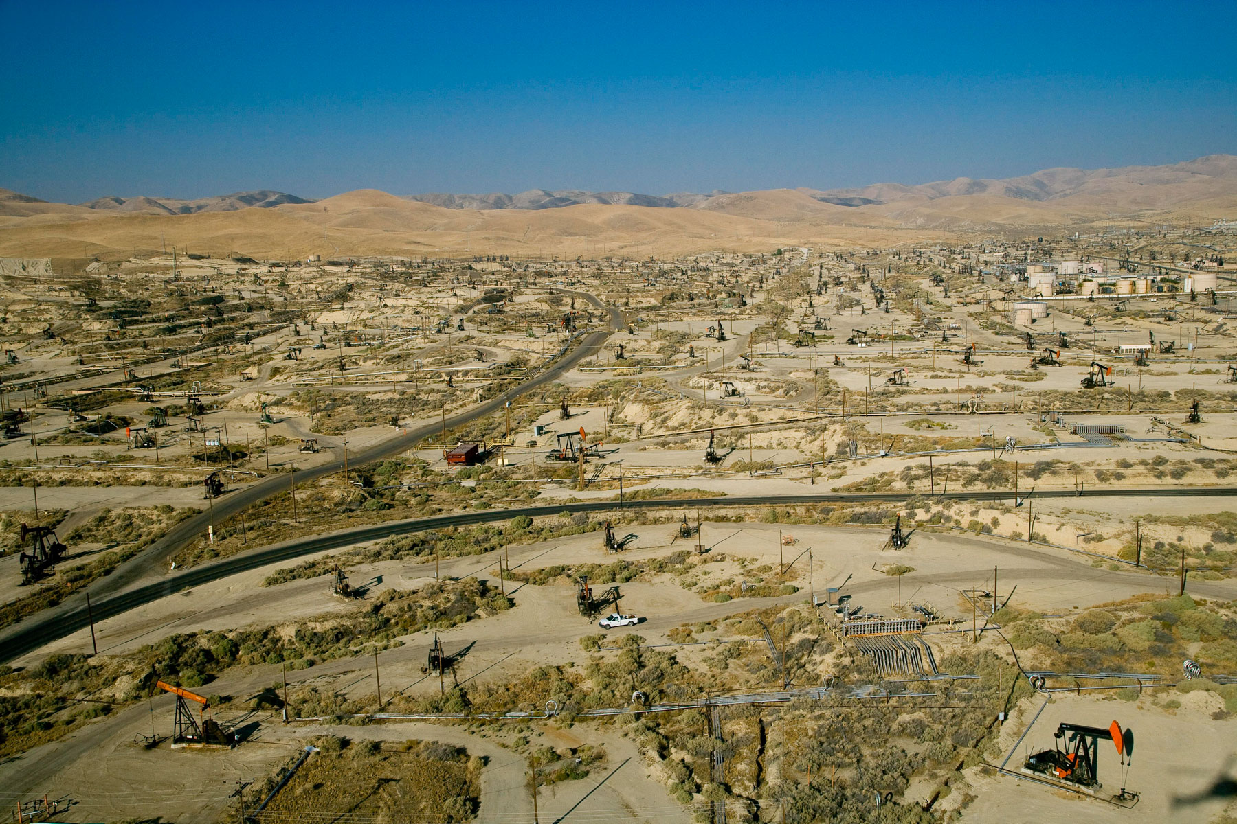 Champs de pétrole près de Bakersfield en Californie, États-Unis (35°27' N – 119°43' O).