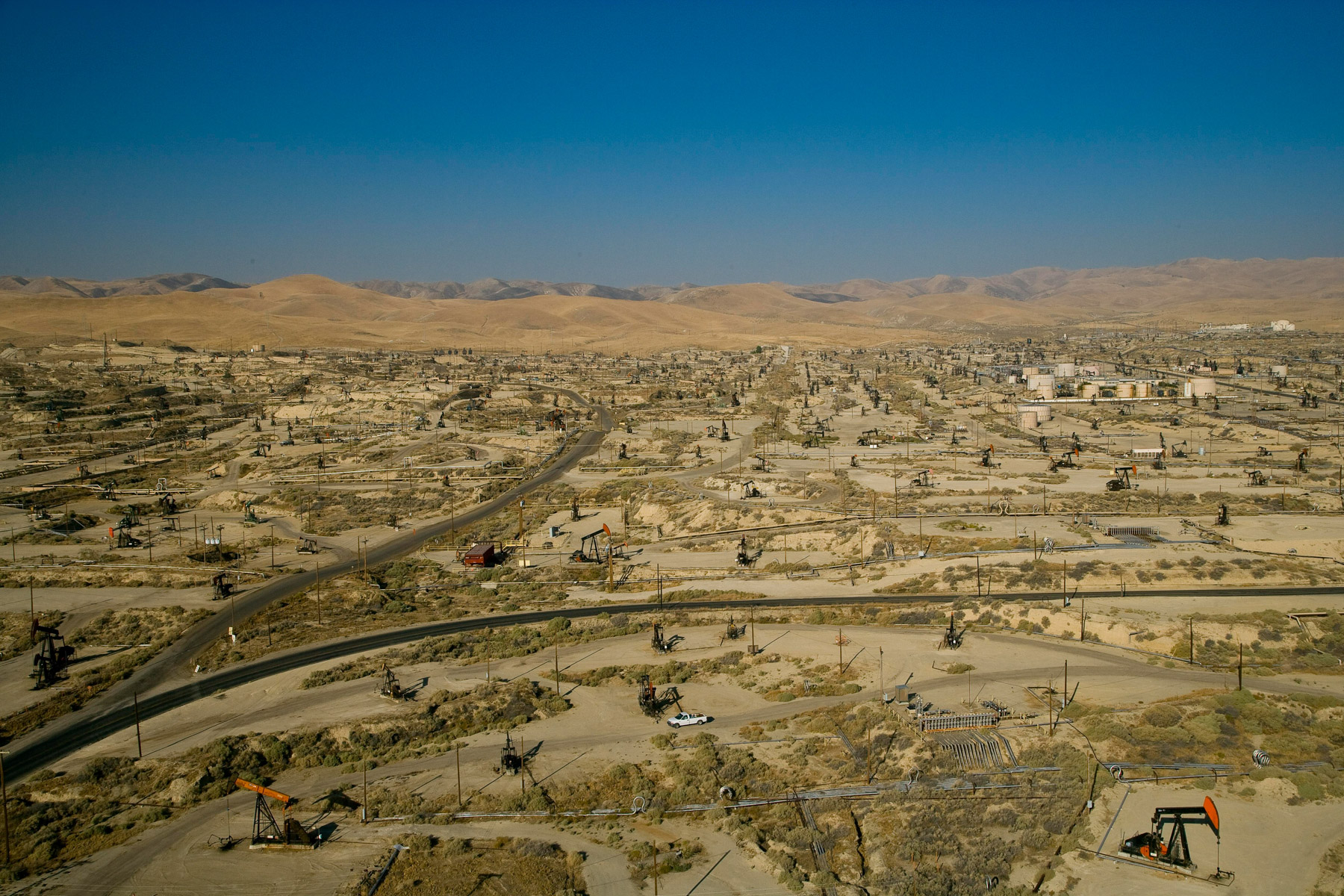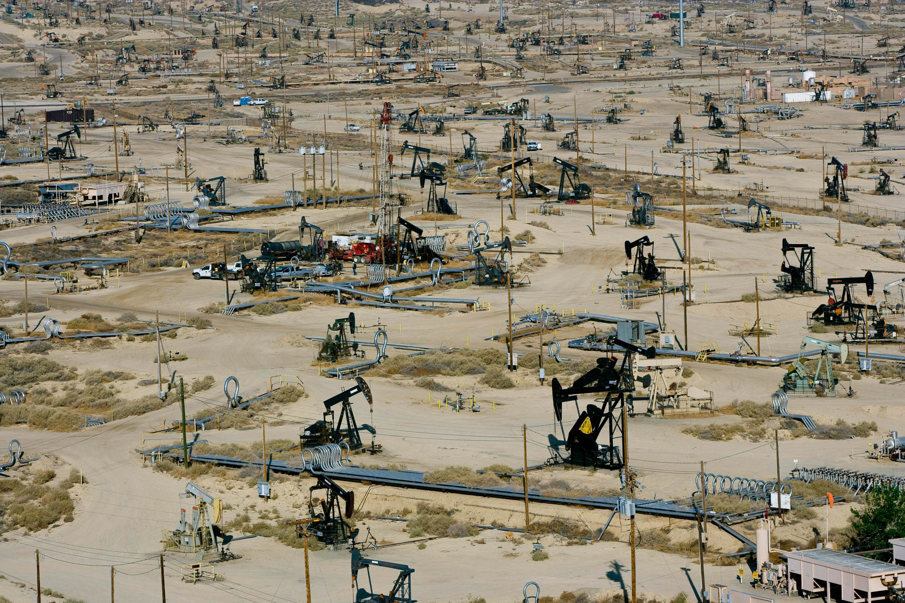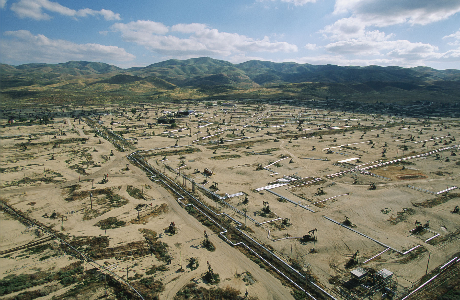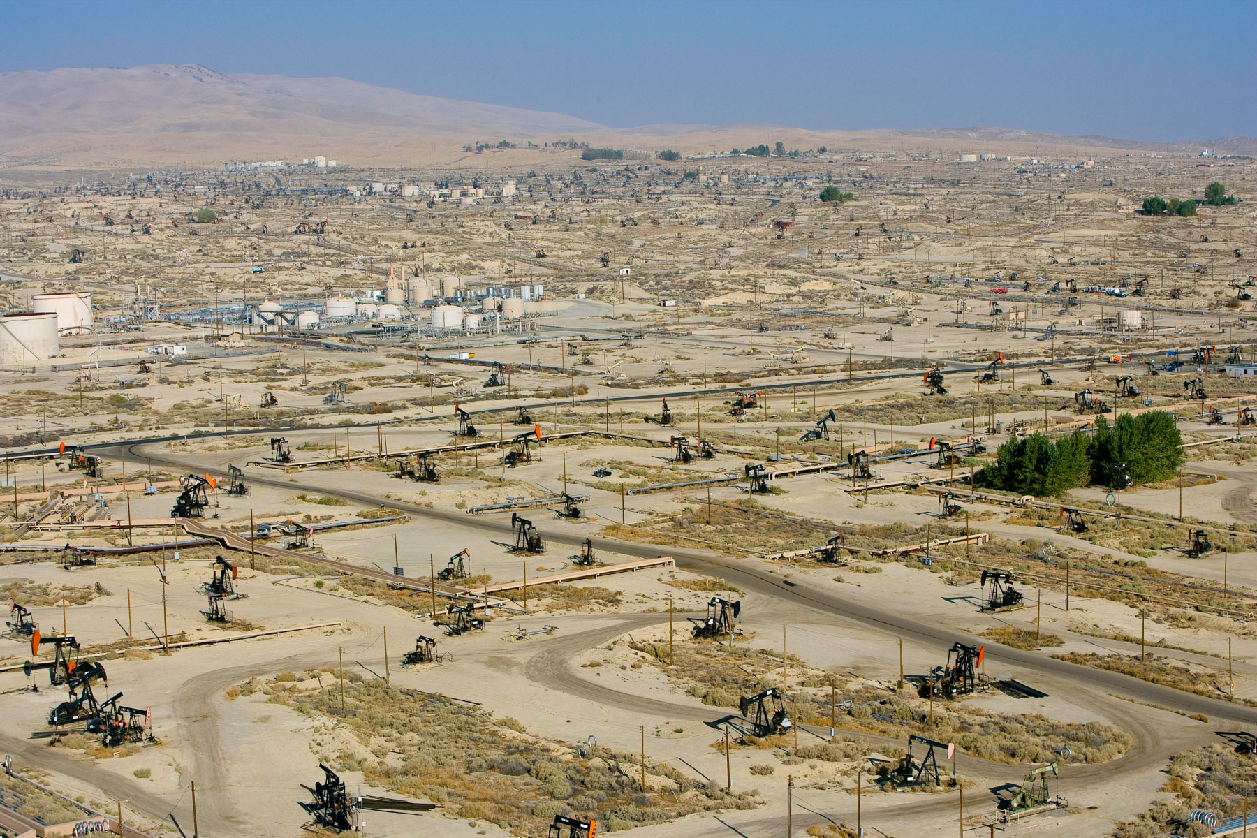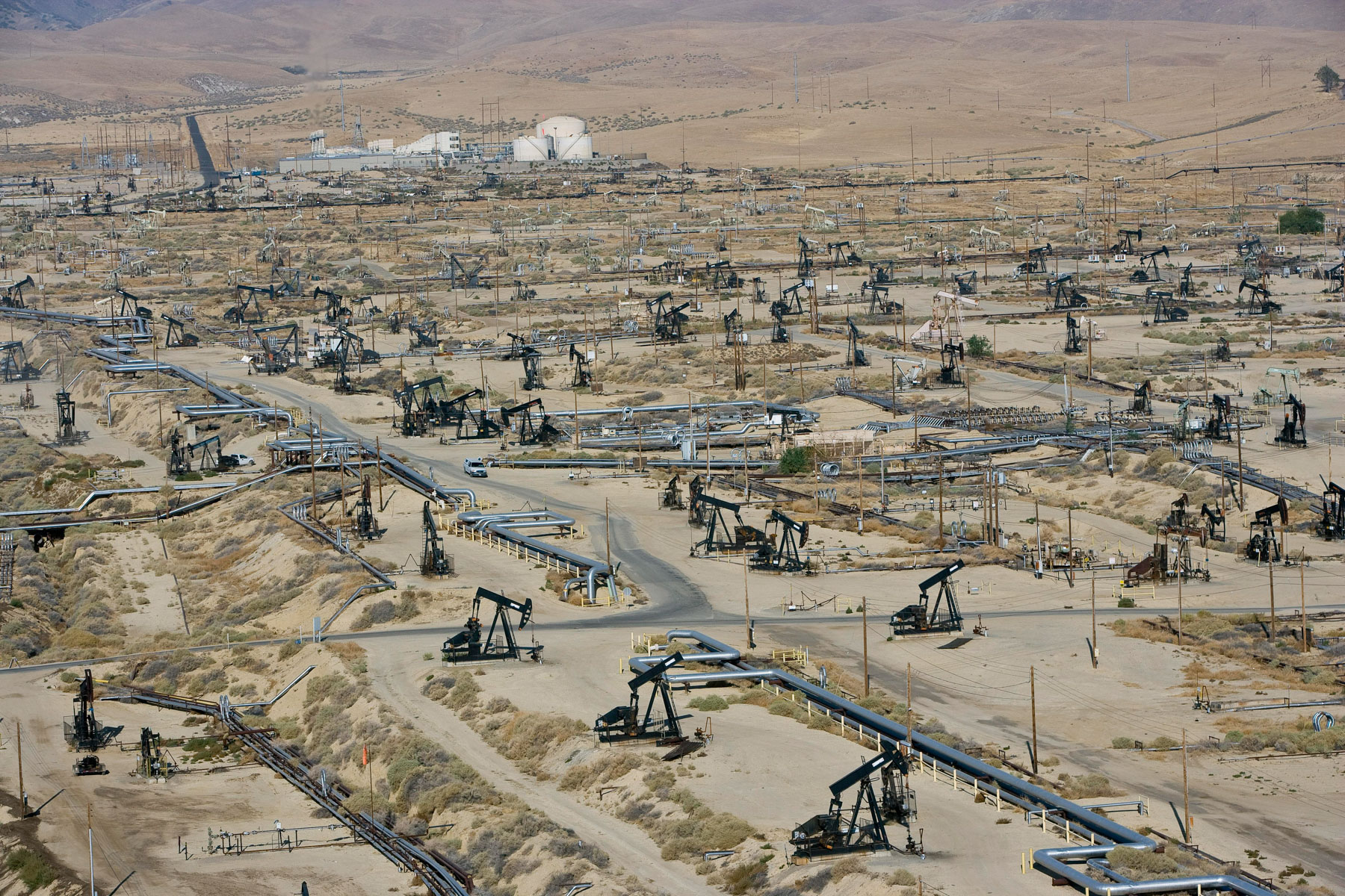 Champs de pétrole près de Bakersfield en Californie, États-Unis (35°27' N – 119°43' O).