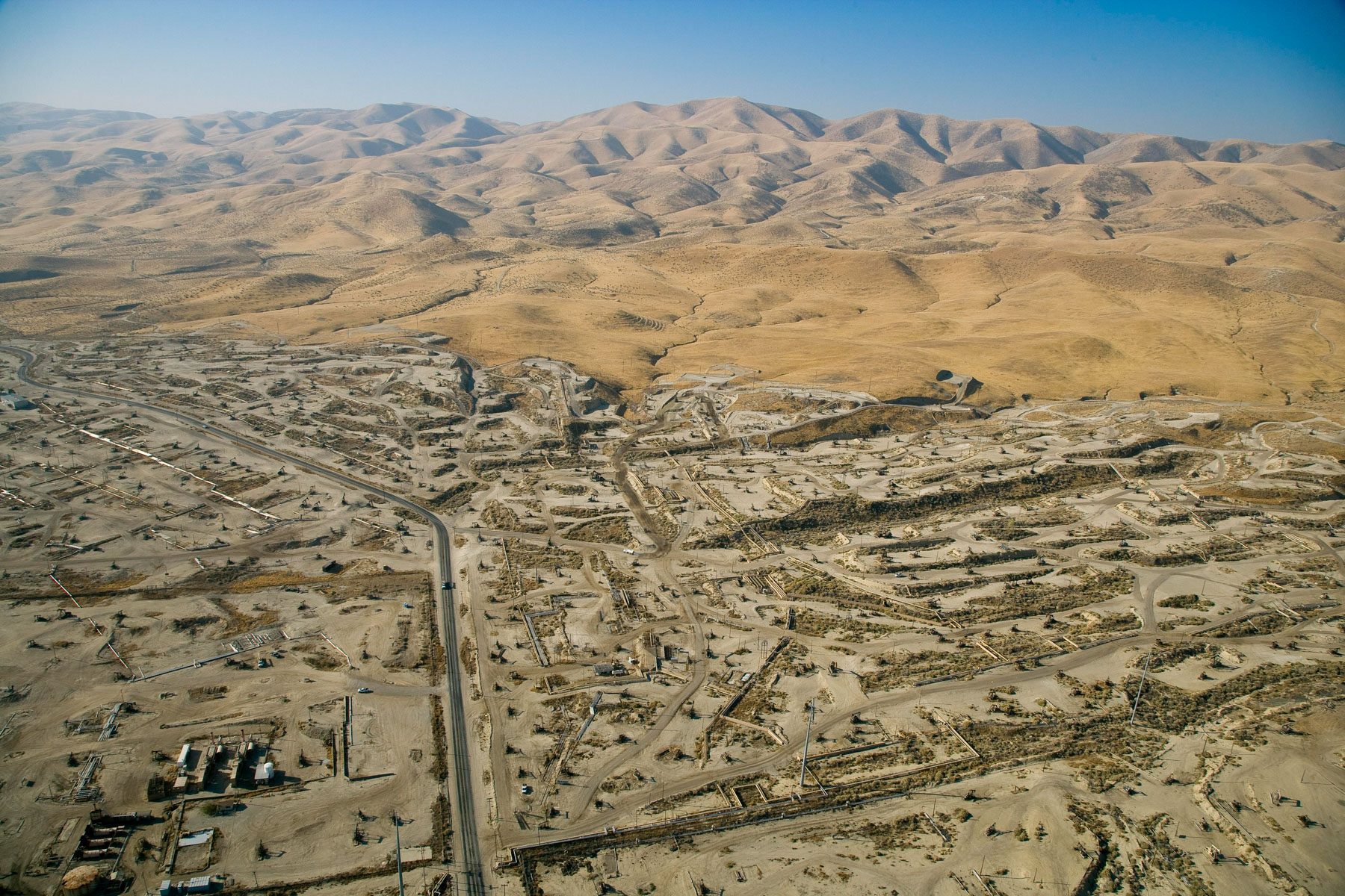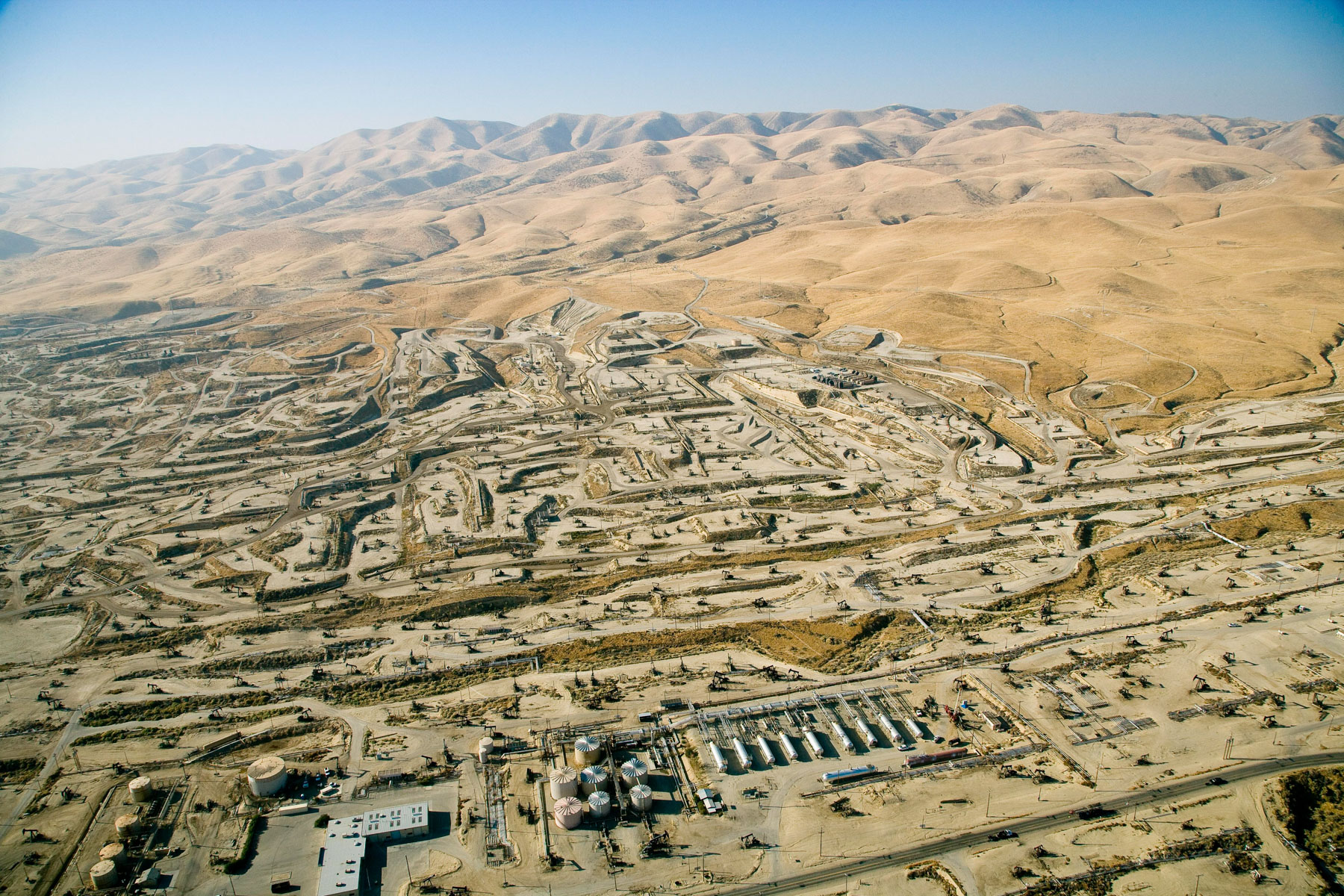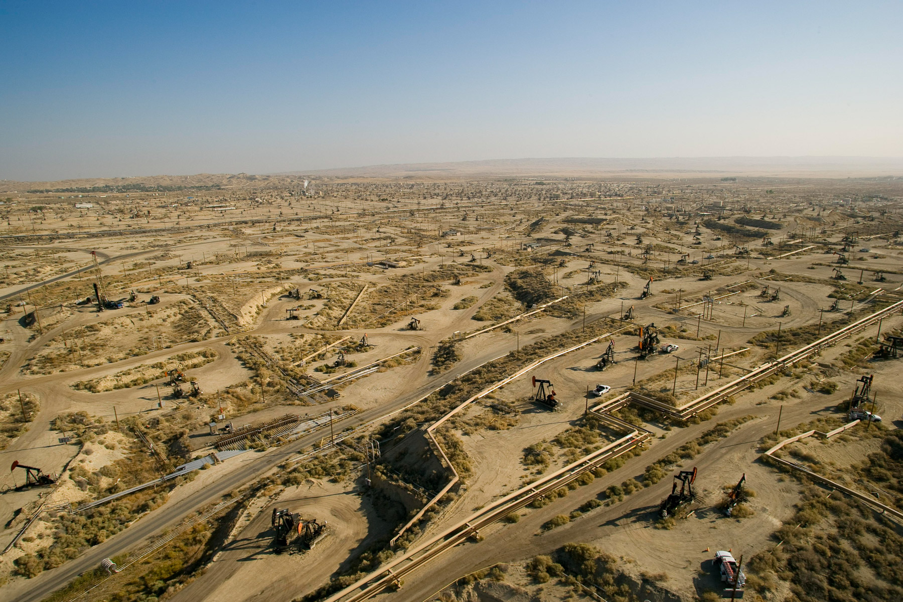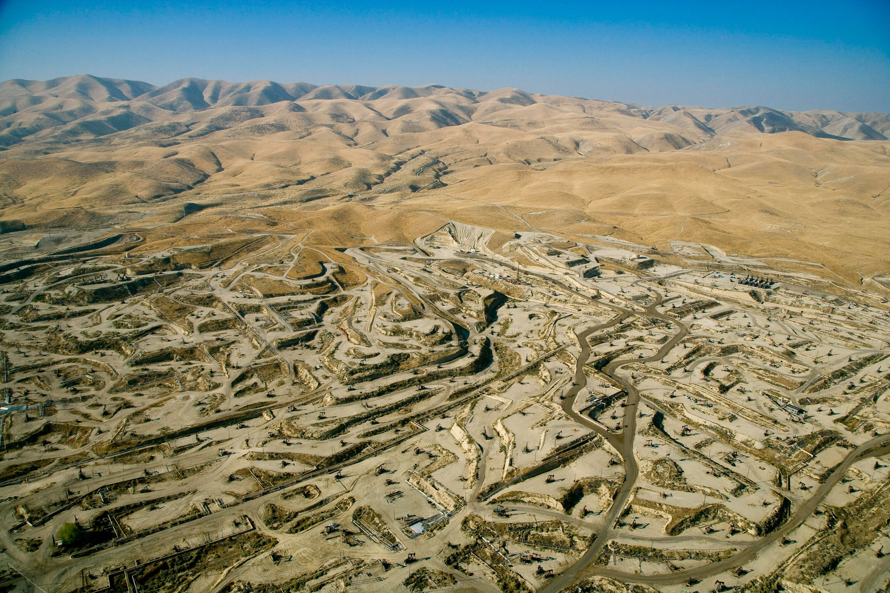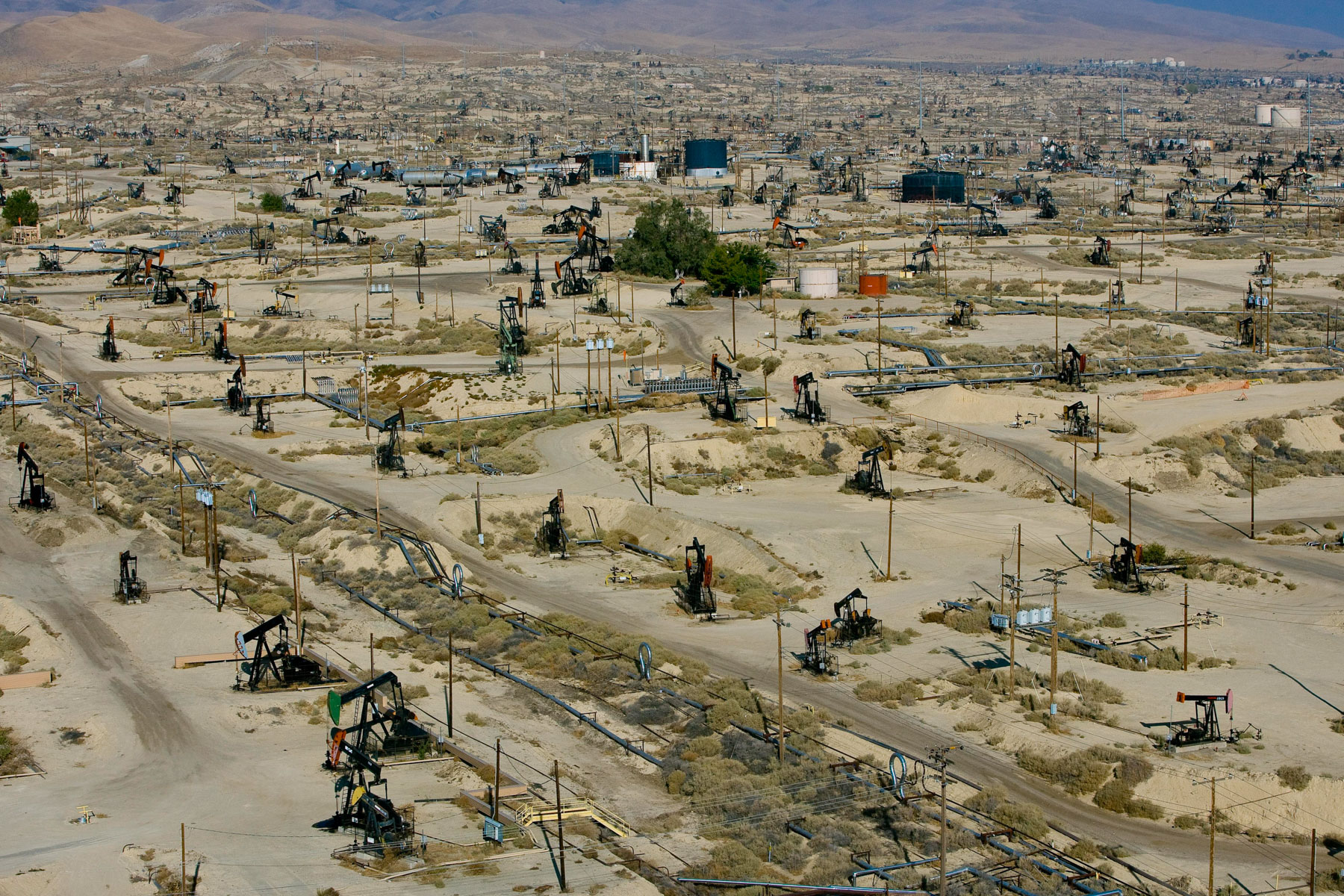 Champs de pétrole près de Bakersfield en Californie, États-Unis (35°27' N – 119°43' O).