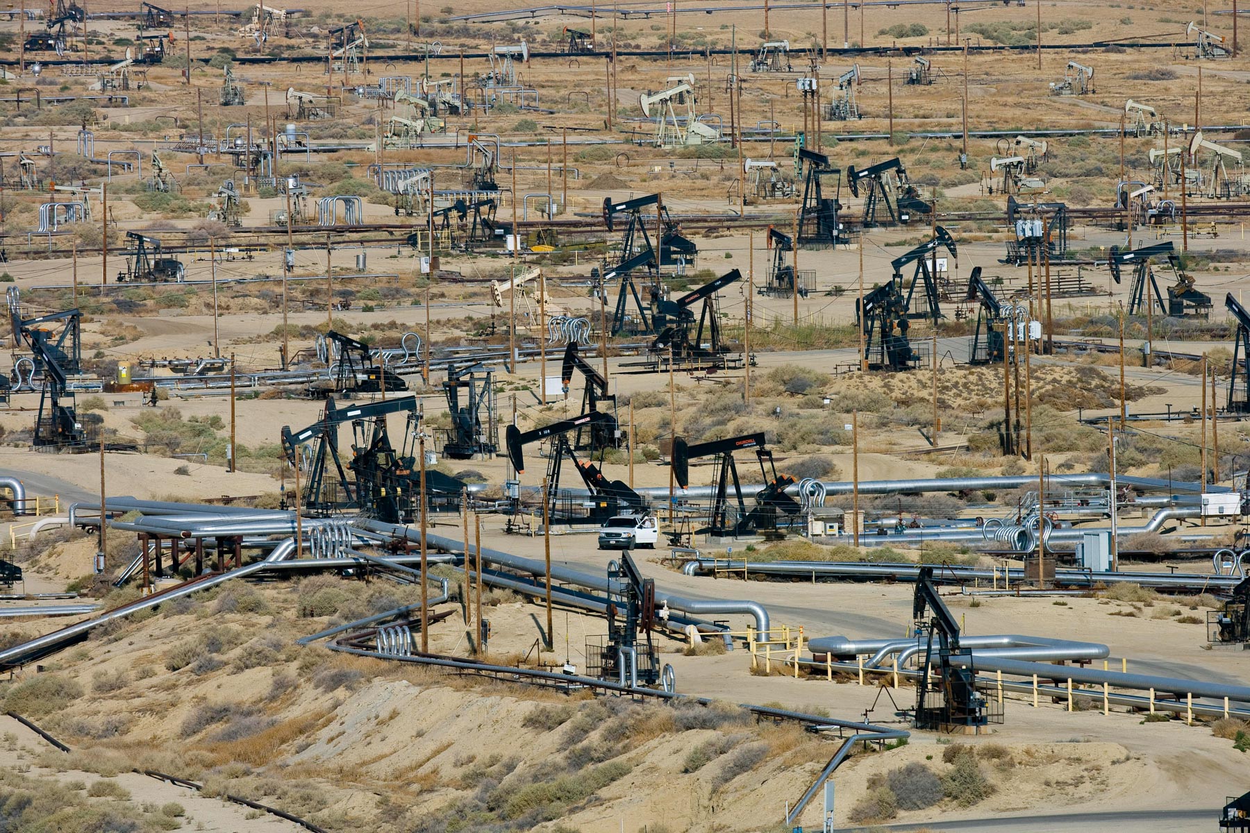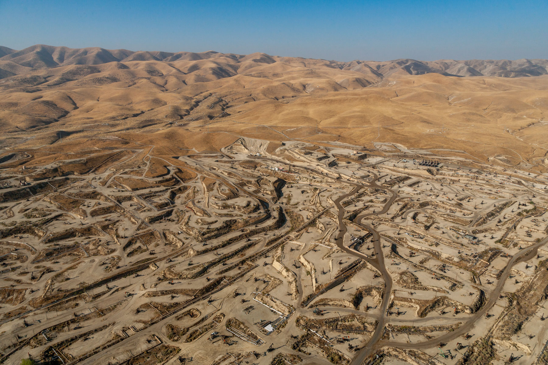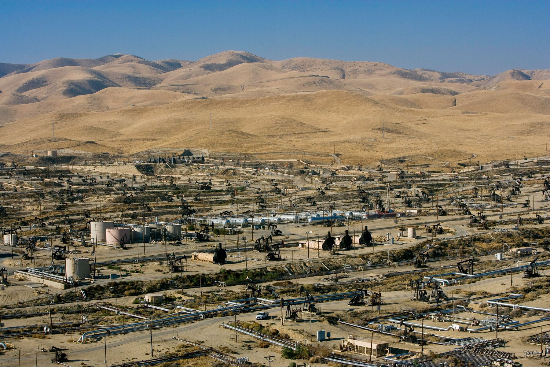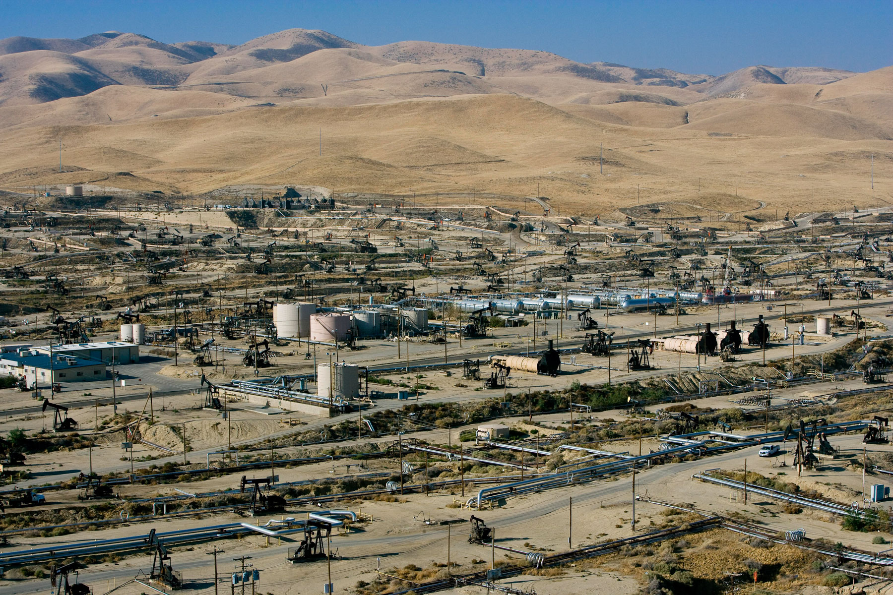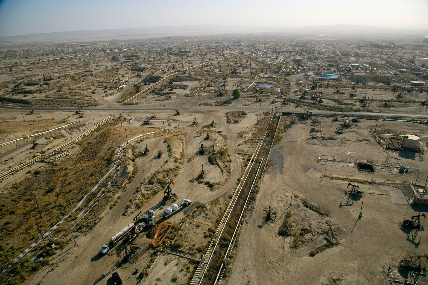 Champs de pétrole près de Bakersfield en Californie, États-Unis (35°27' N – 119°43' O).