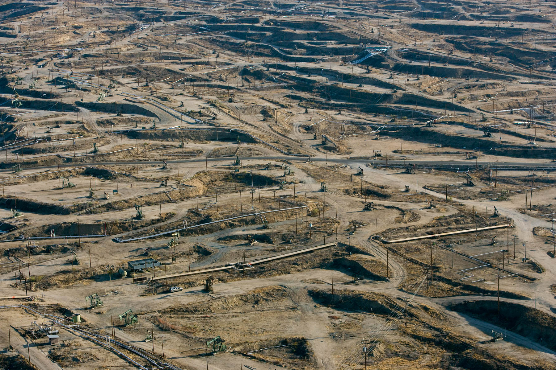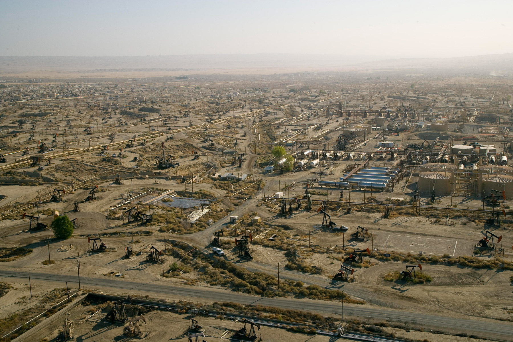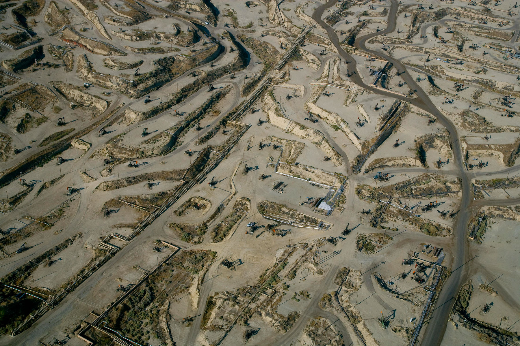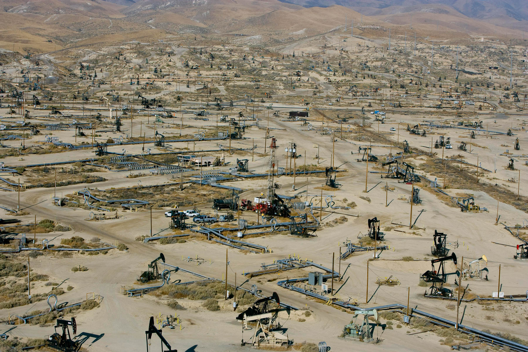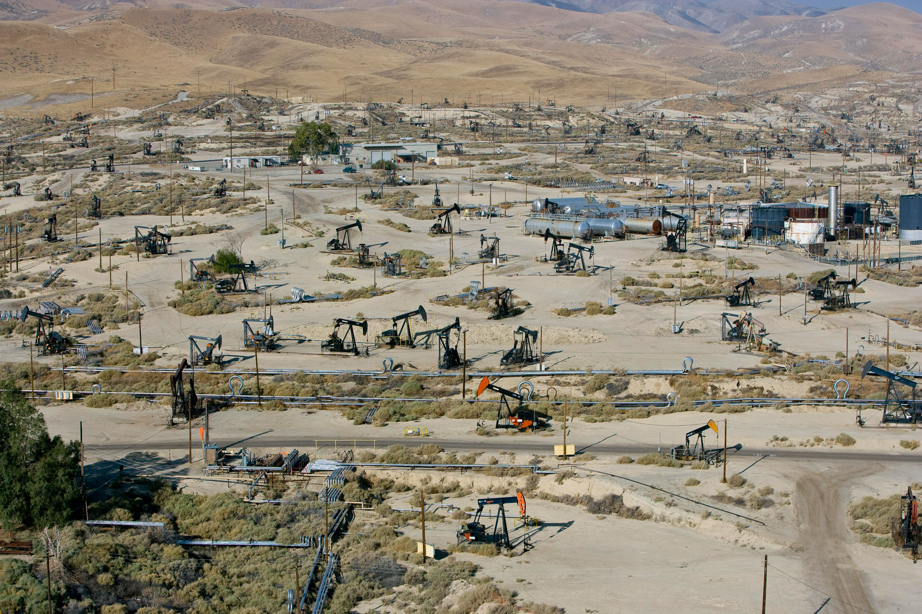 Champs de pétrole près de Bakersfield en Californie, États-Unis (35°27' N – 119°43' O).