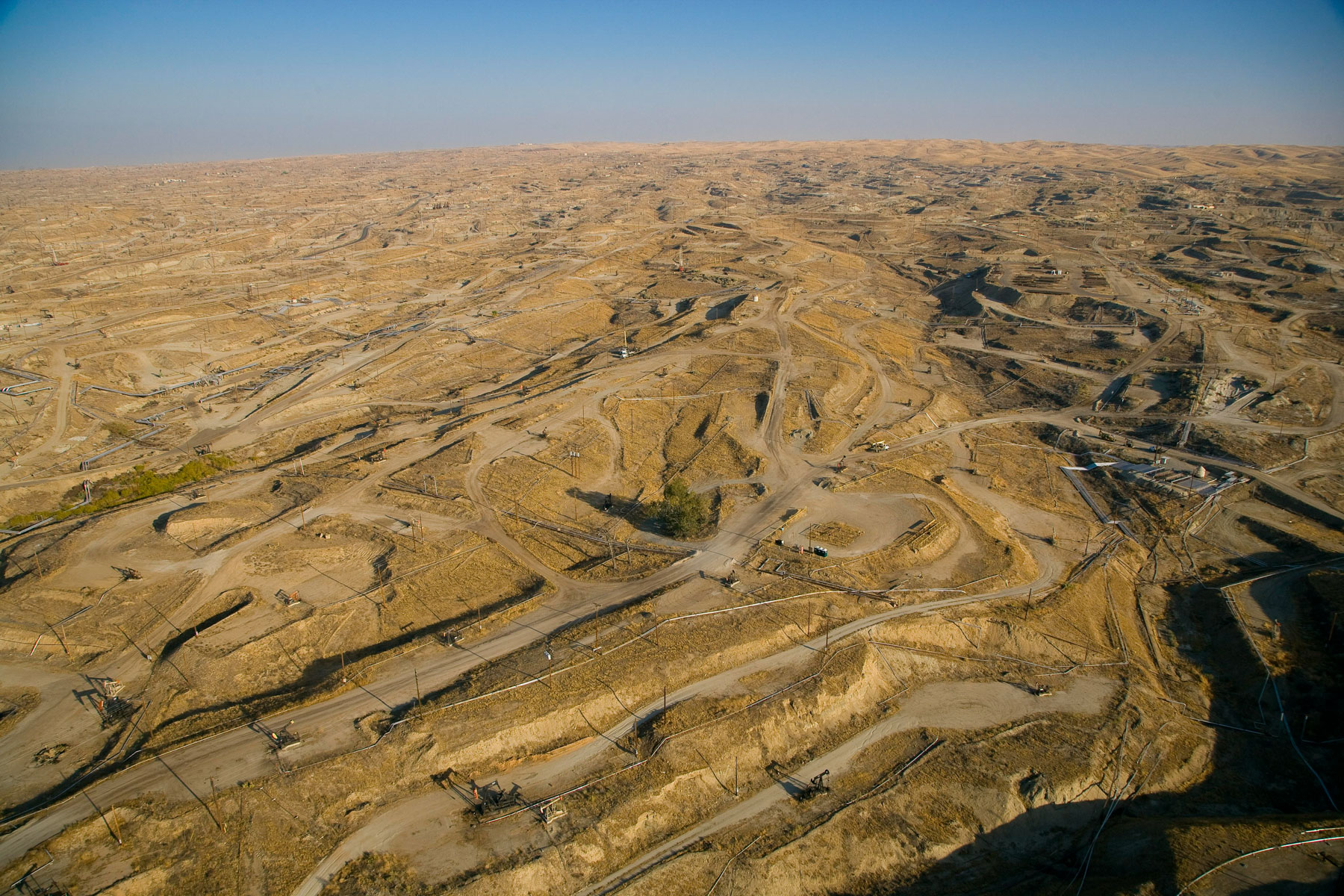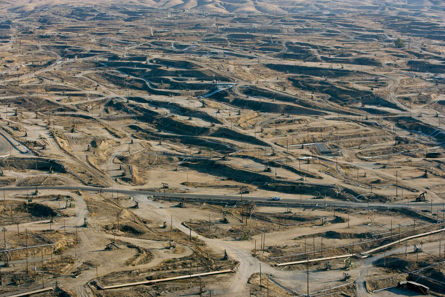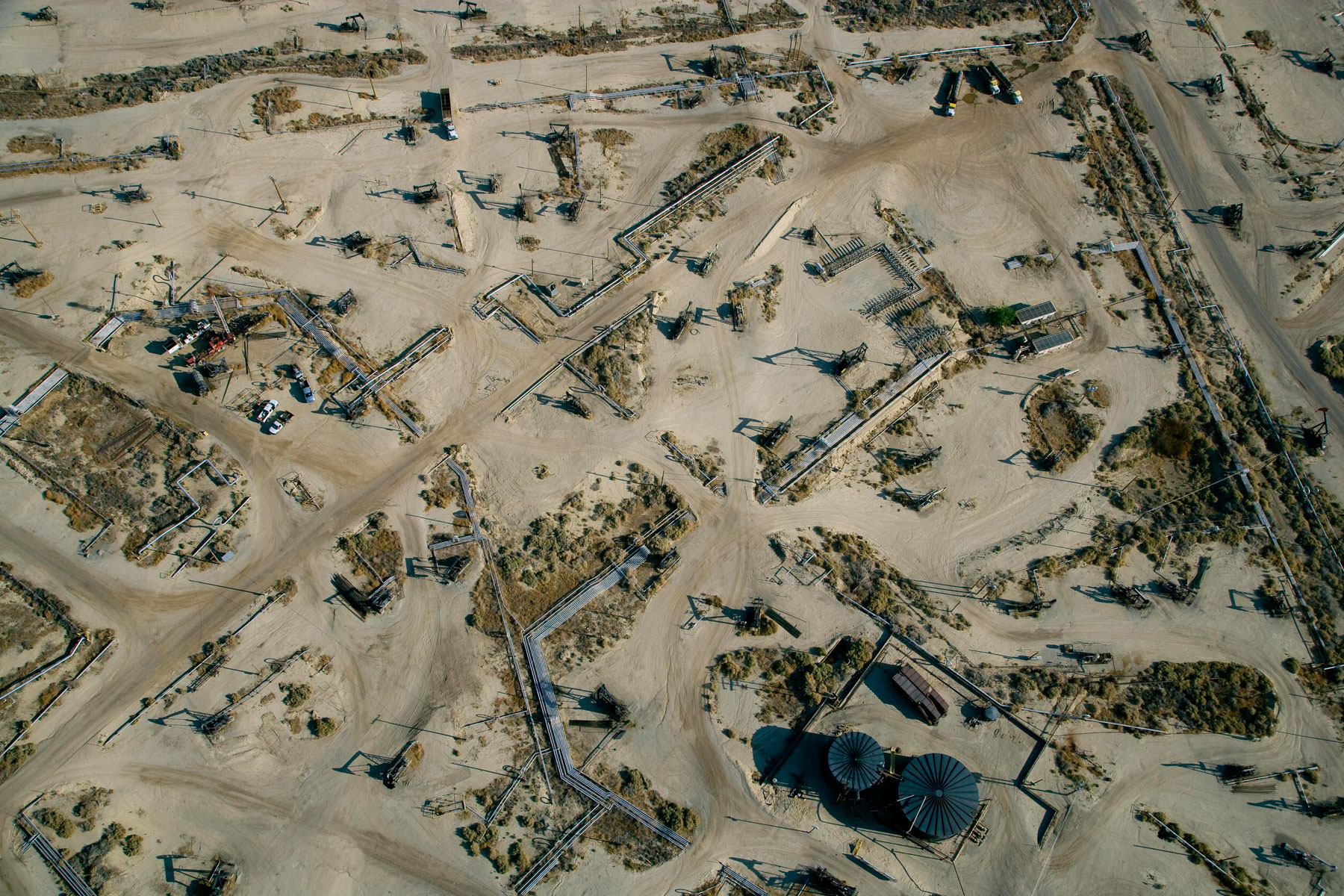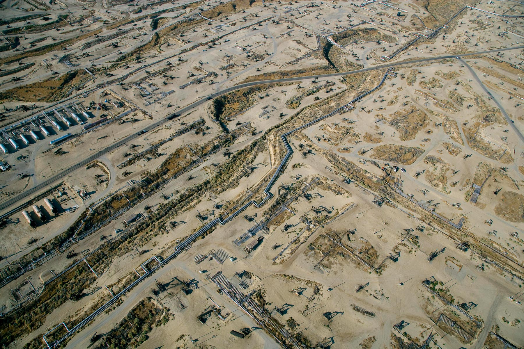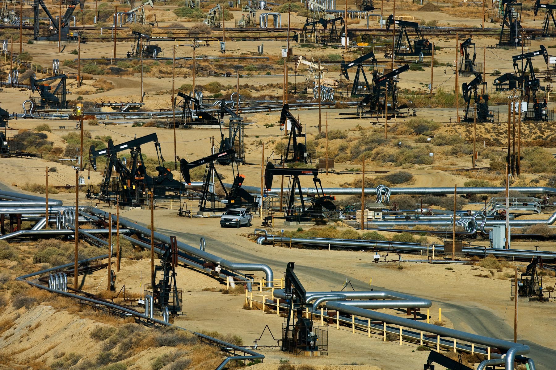 Champs de pétrole près de Bakersfield en Californie, États-Unis (35°27' N – 119°43' O).