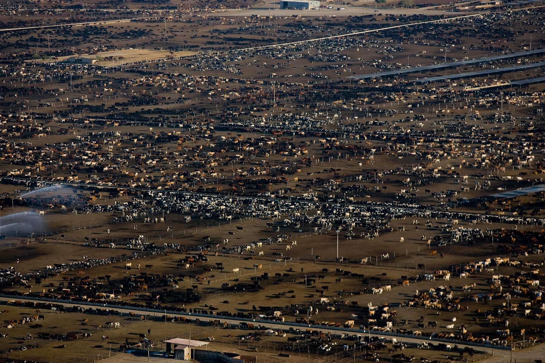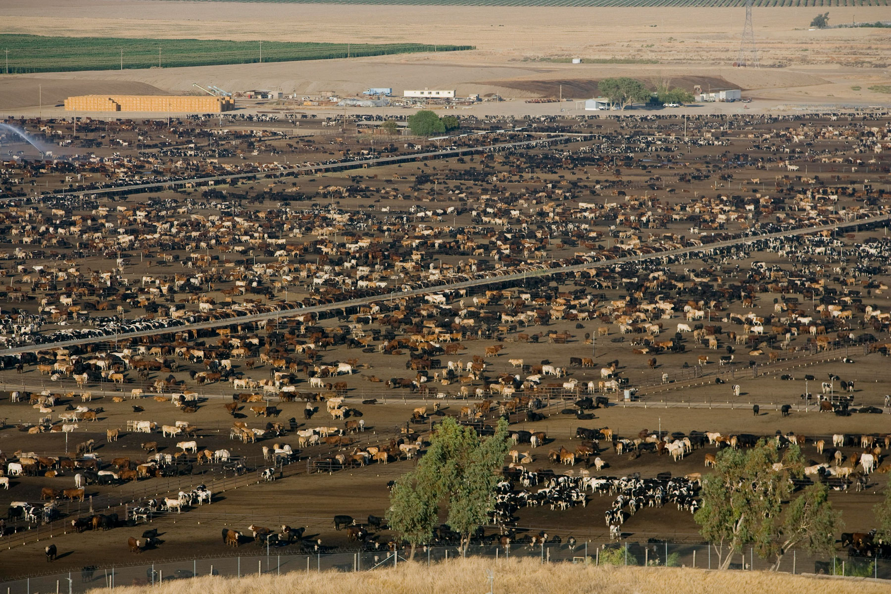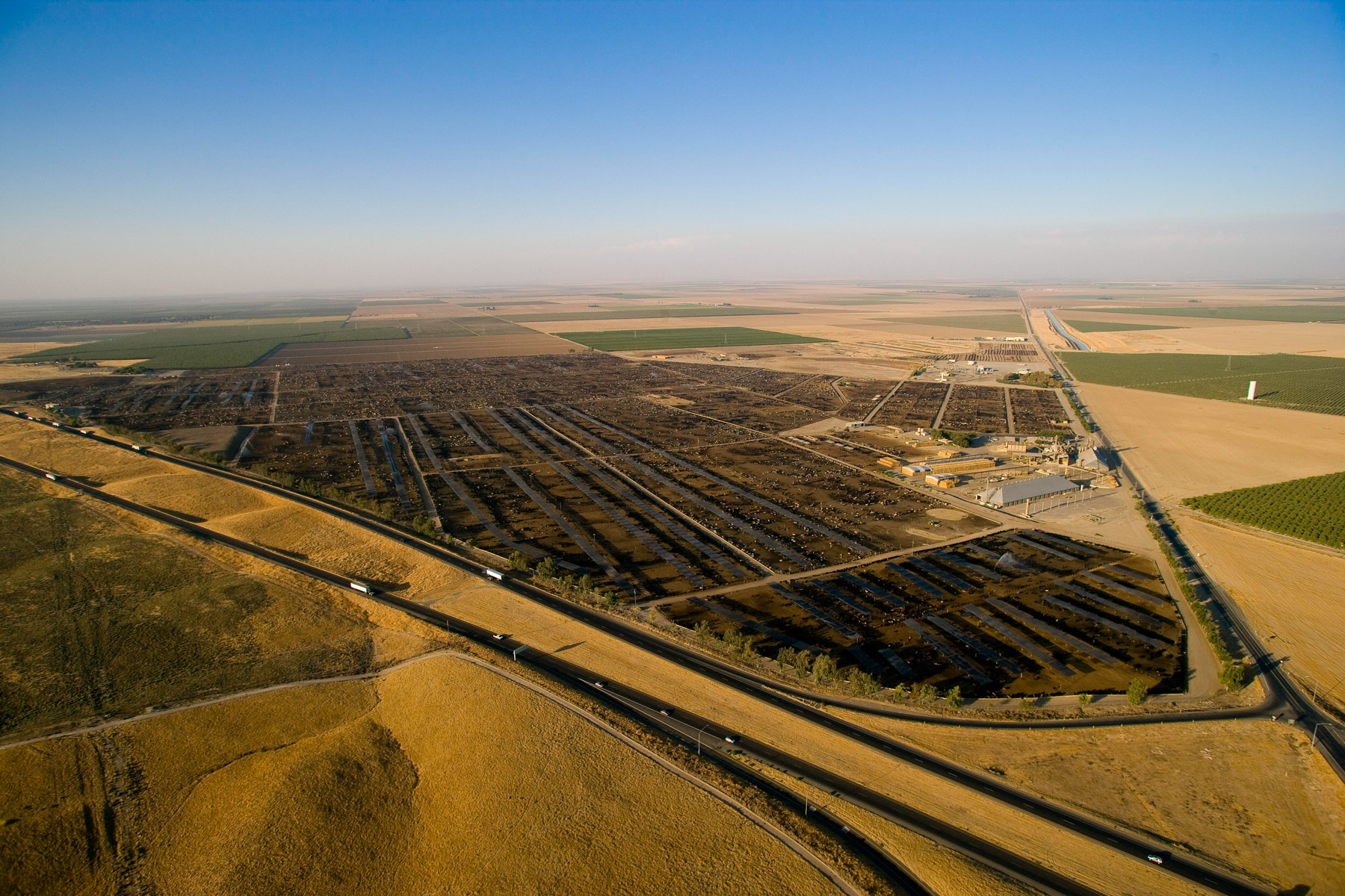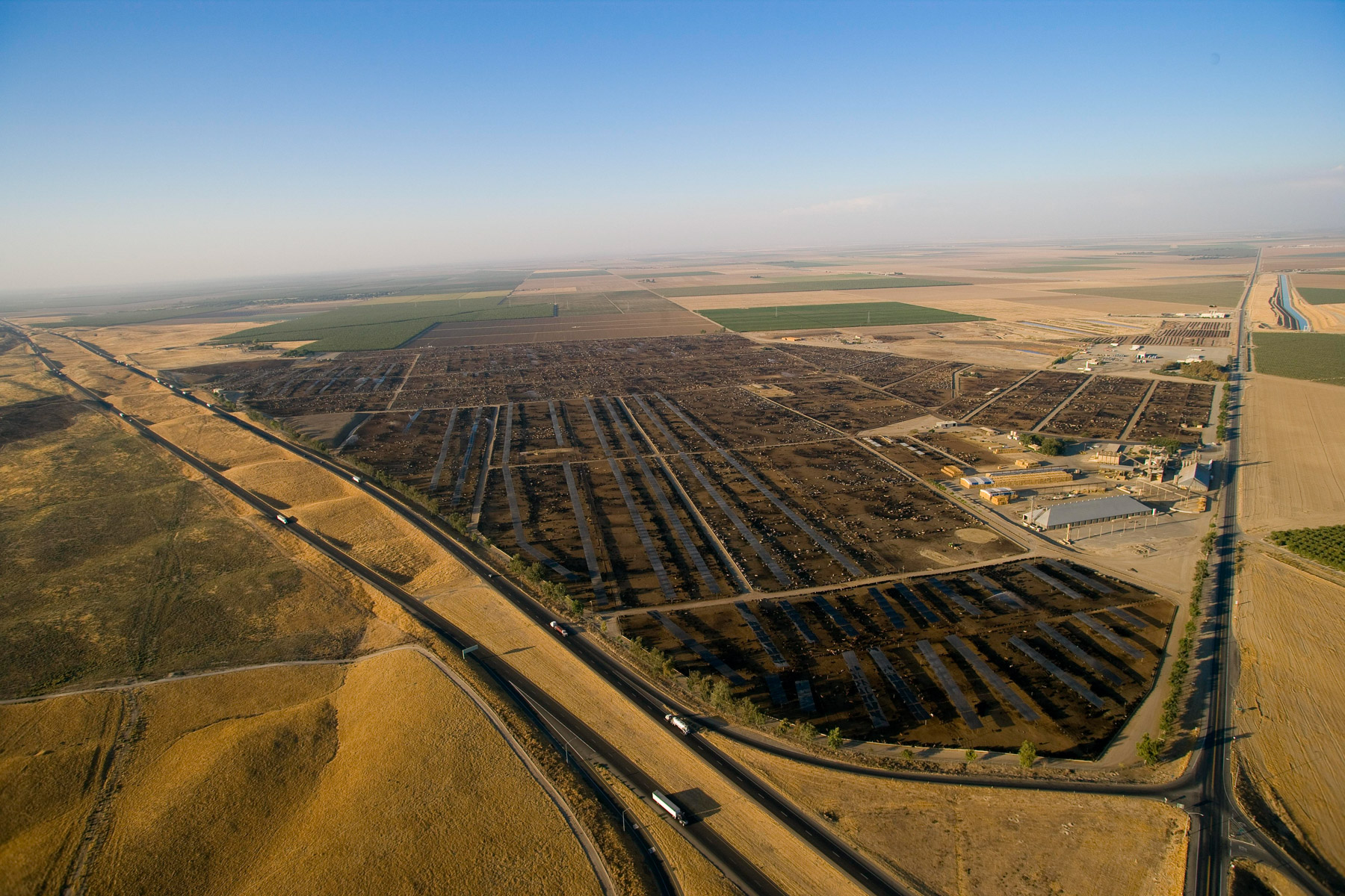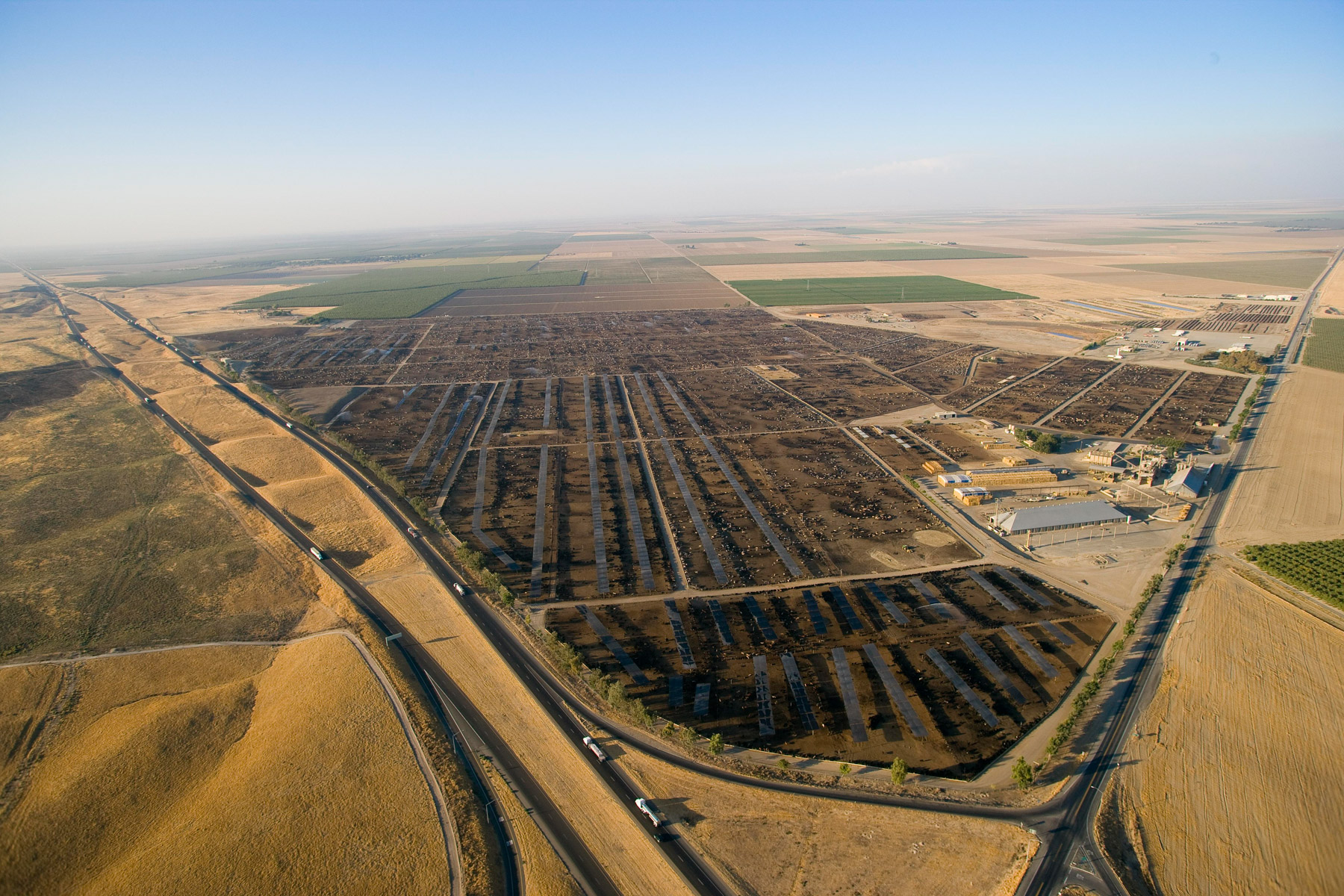 Feedlot near Bakersfield, California, United States (35°19' N - 120°16' W).