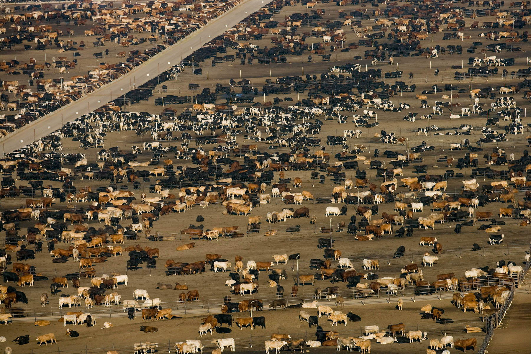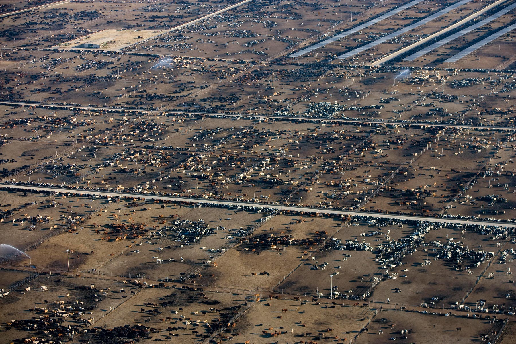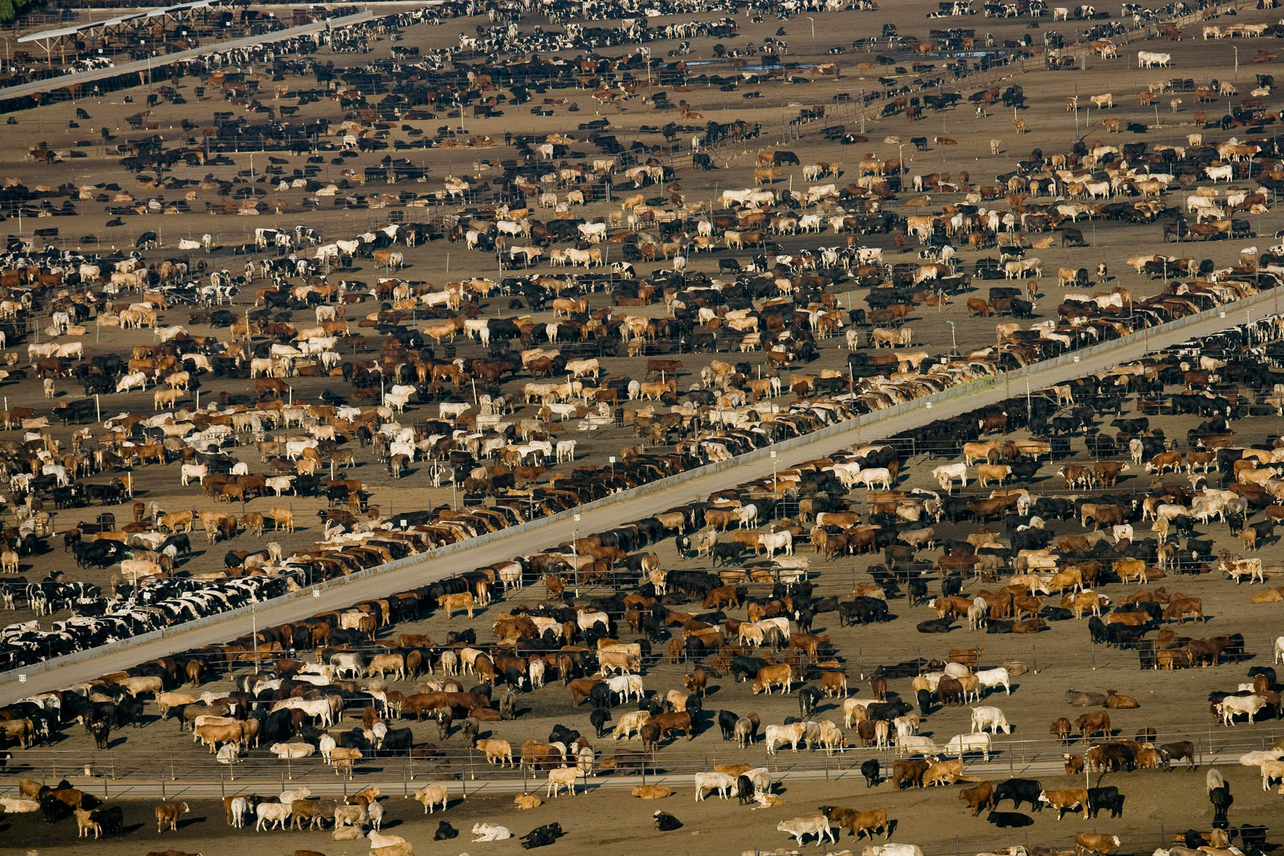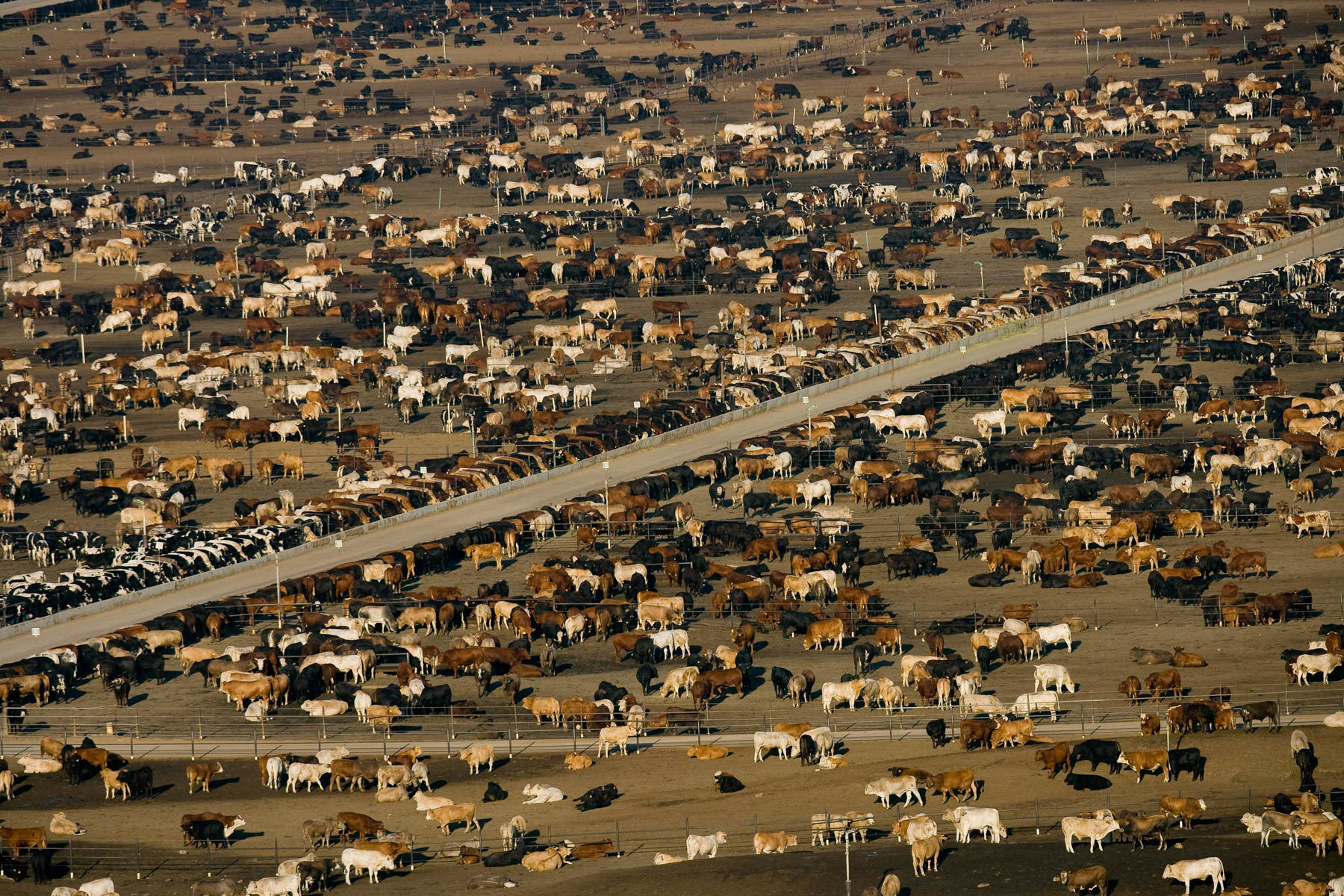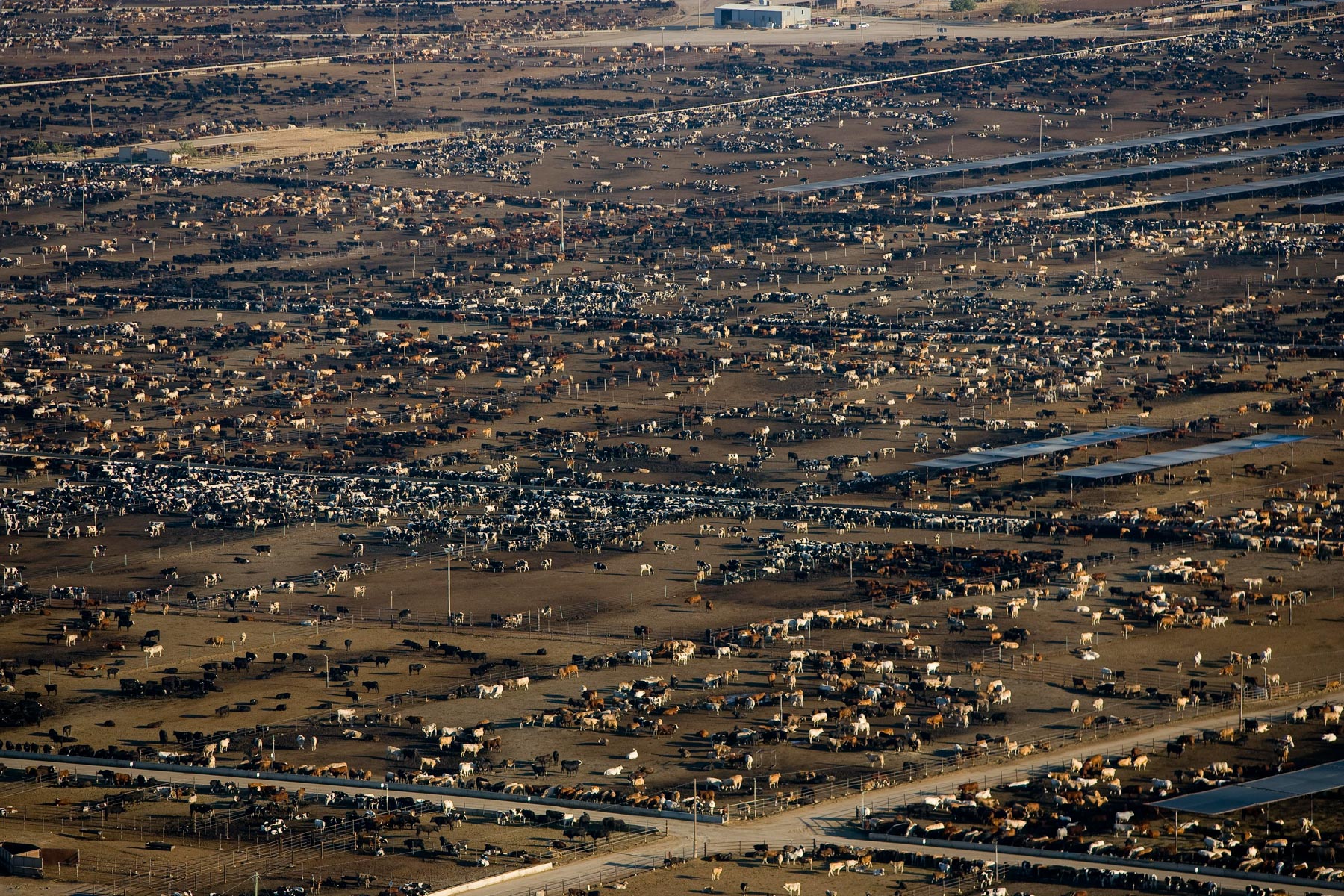 Feedlot near Bakersfield, California, United States (35°19' N - 120°16' W).