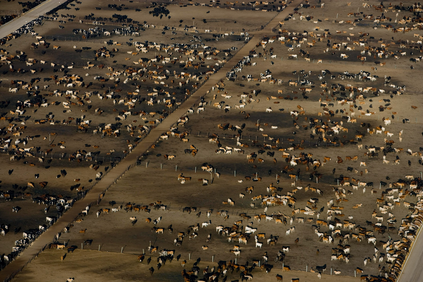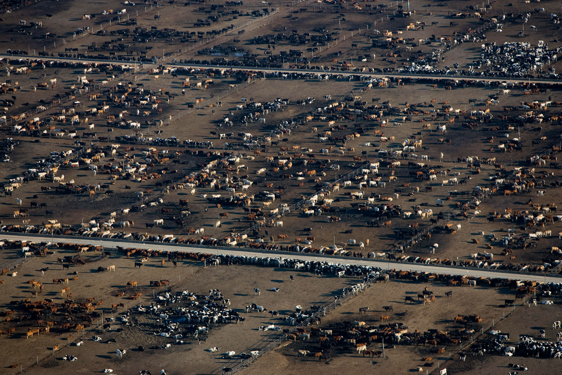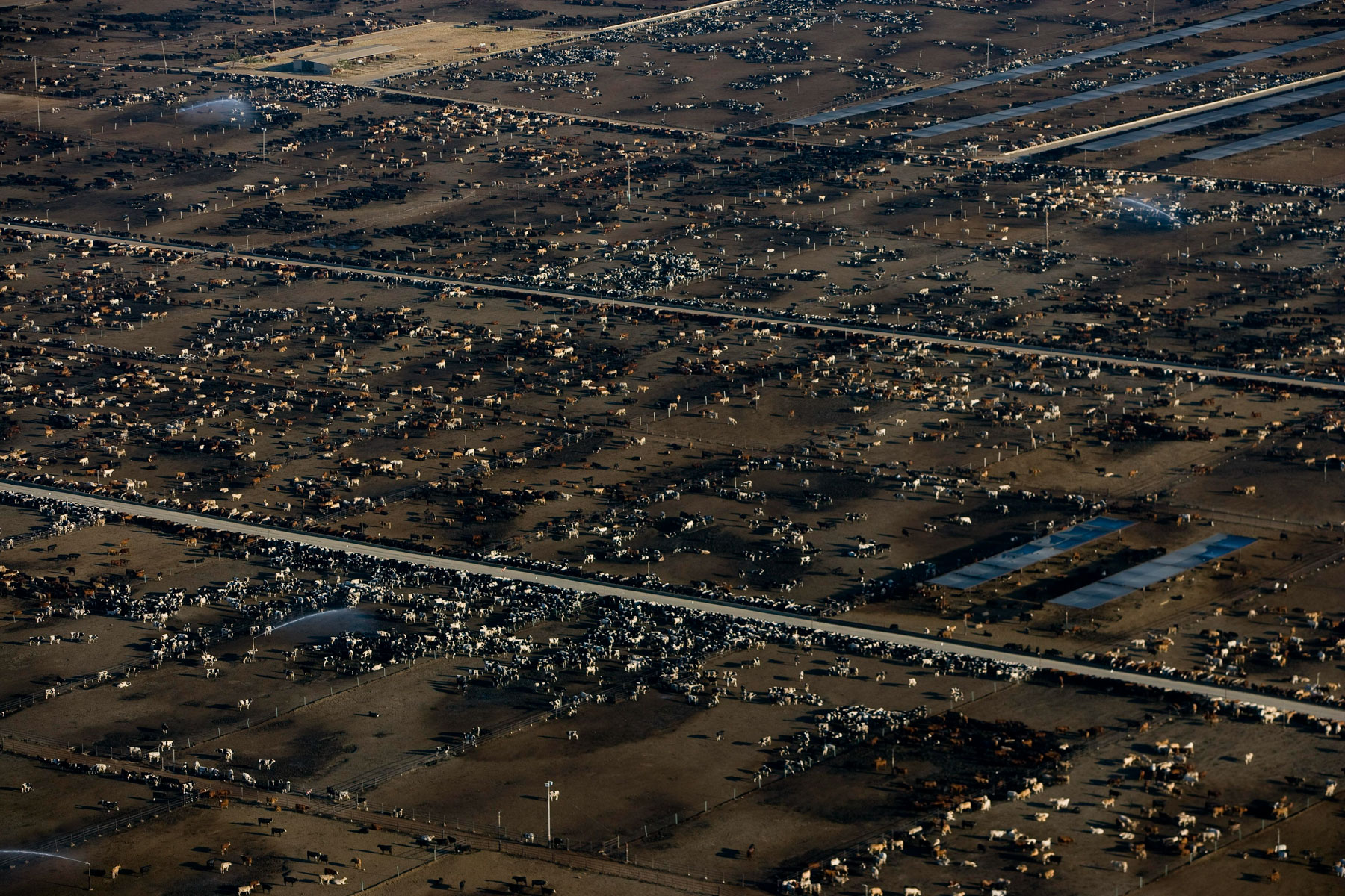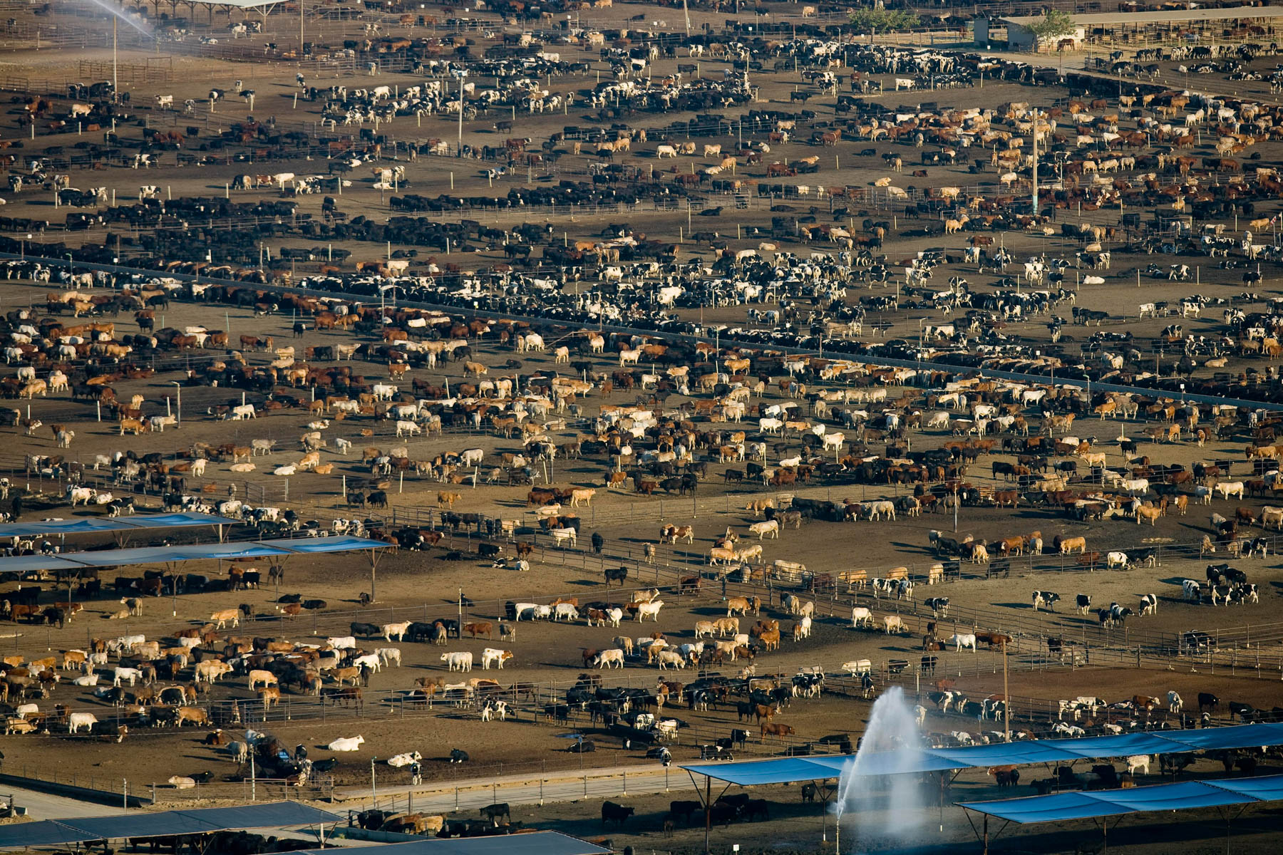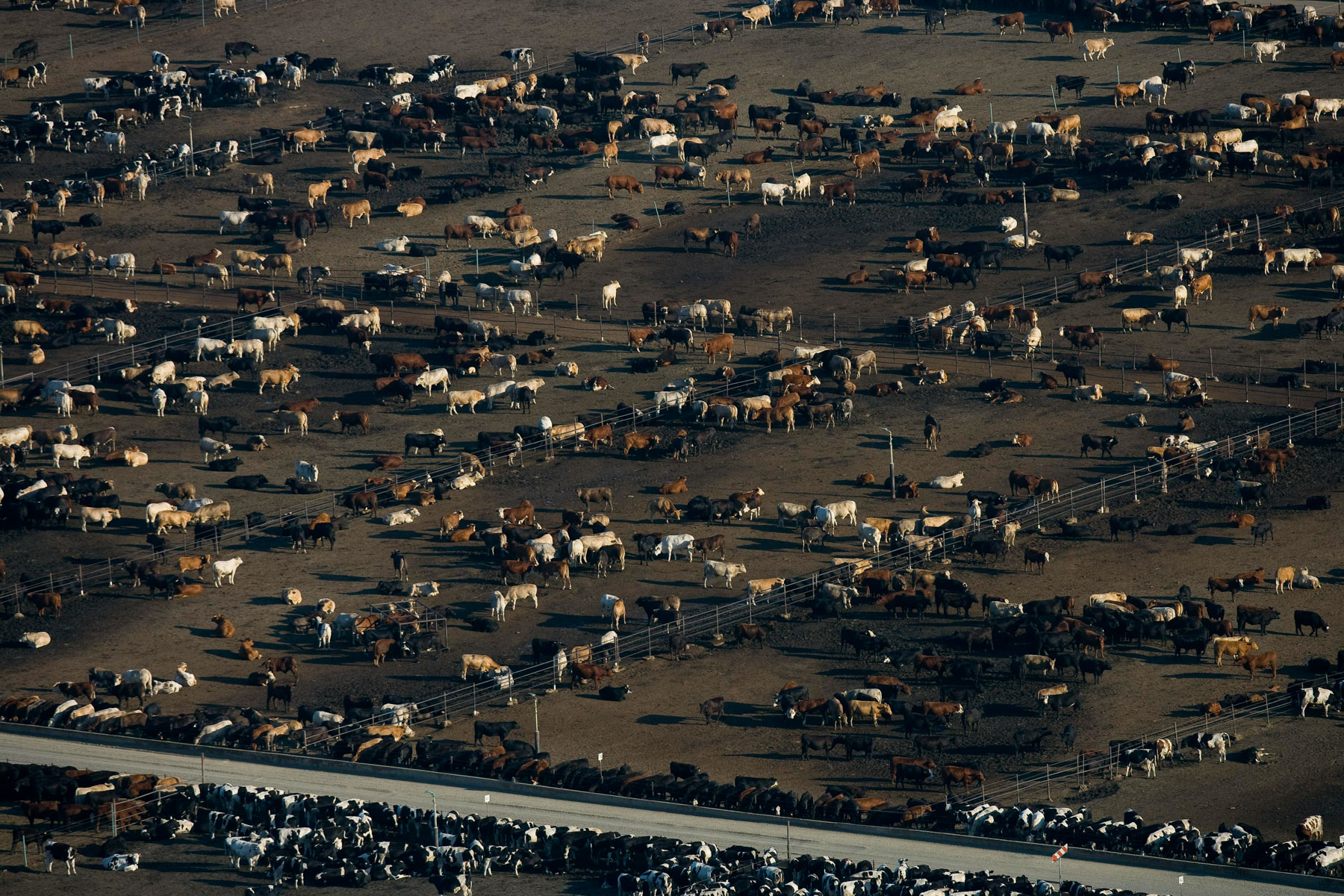 Feedlot near Bakersfield, California, United States (35°19' N - 120°16' W).