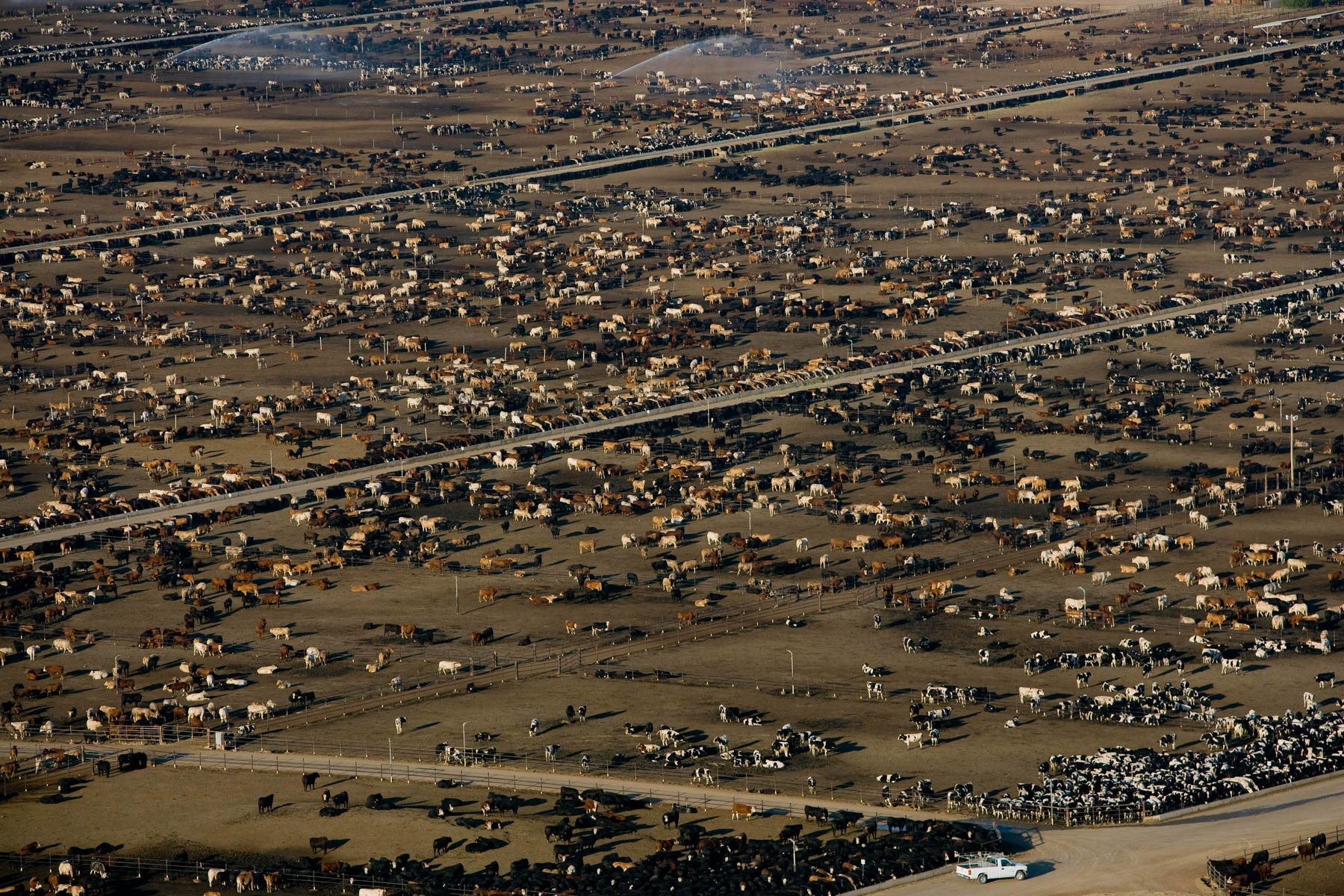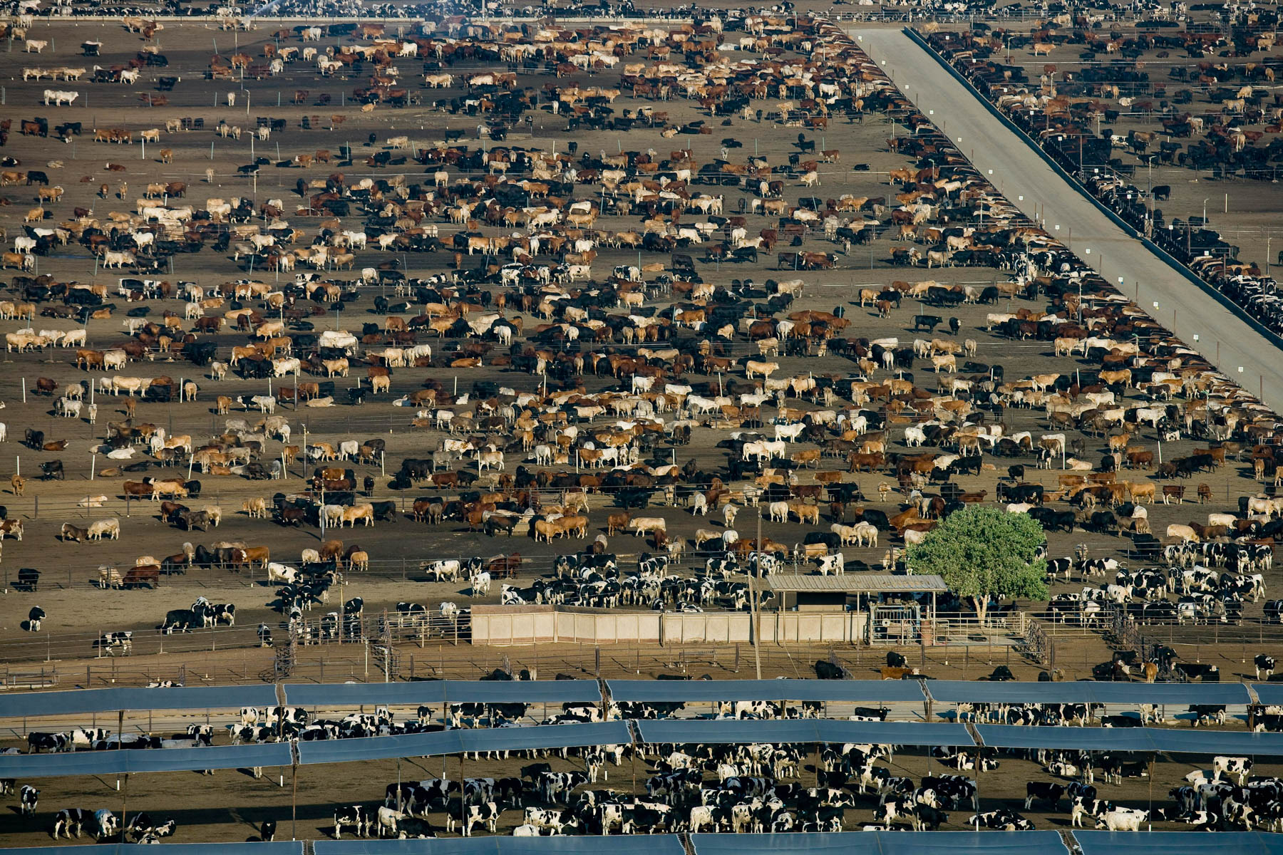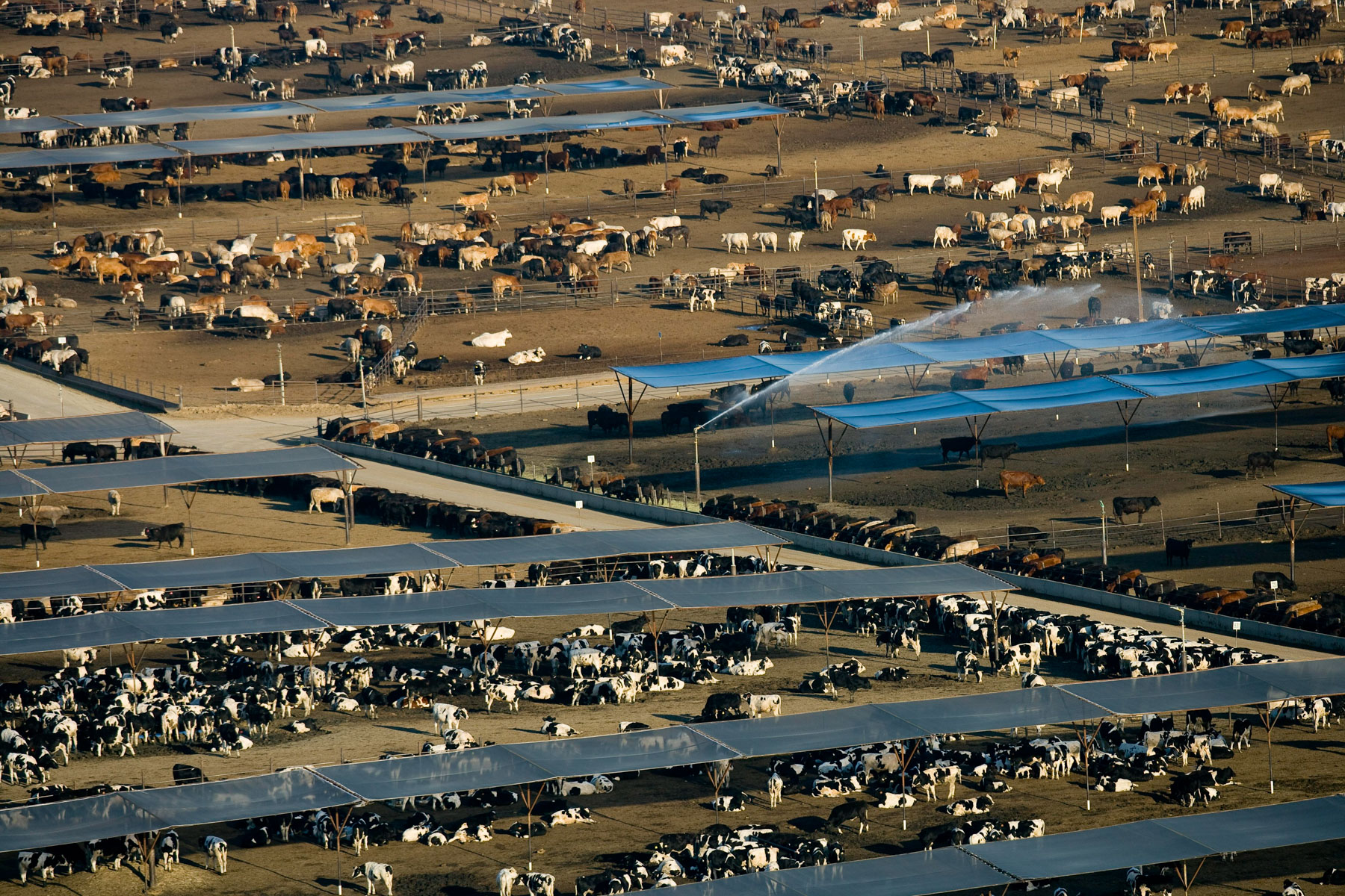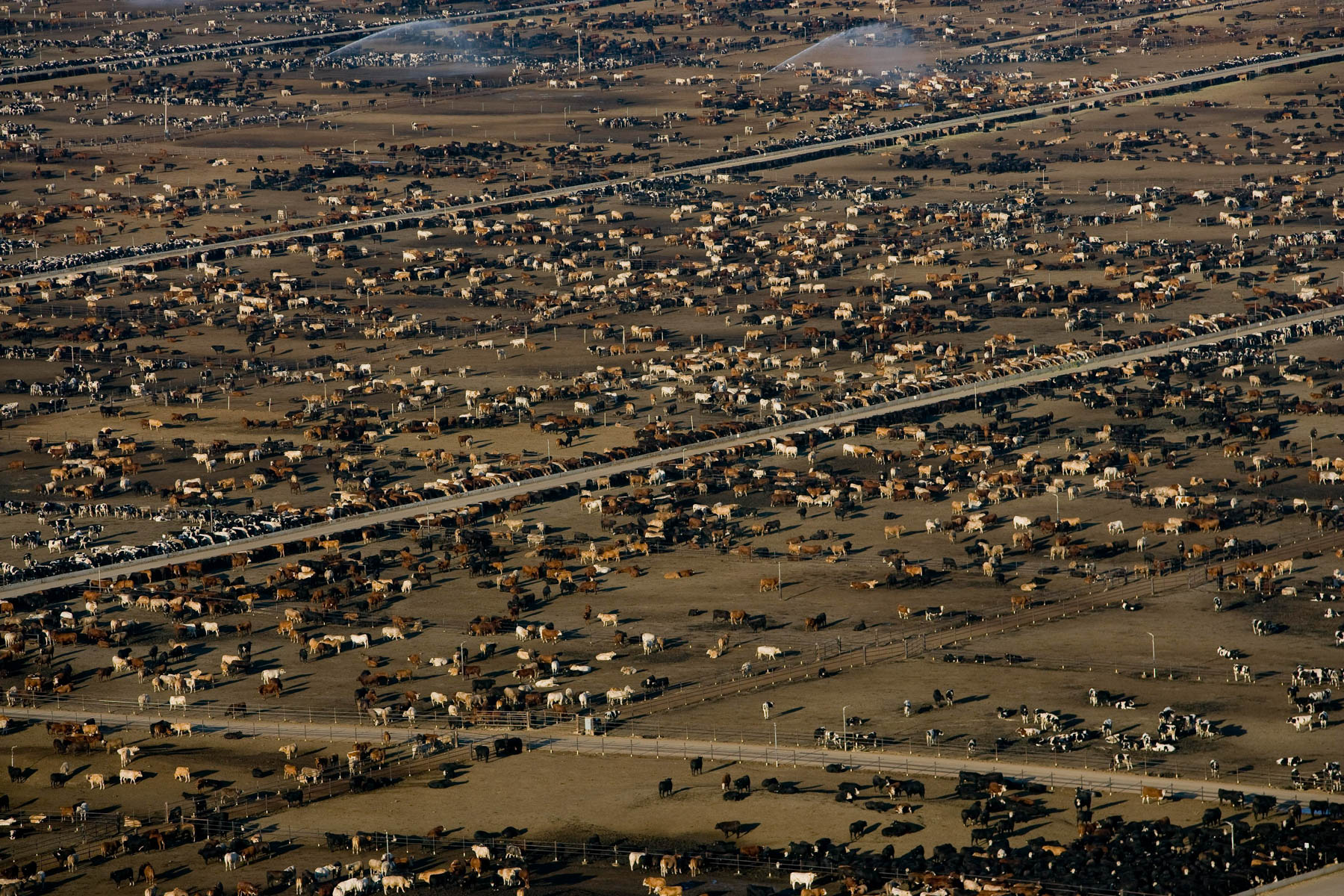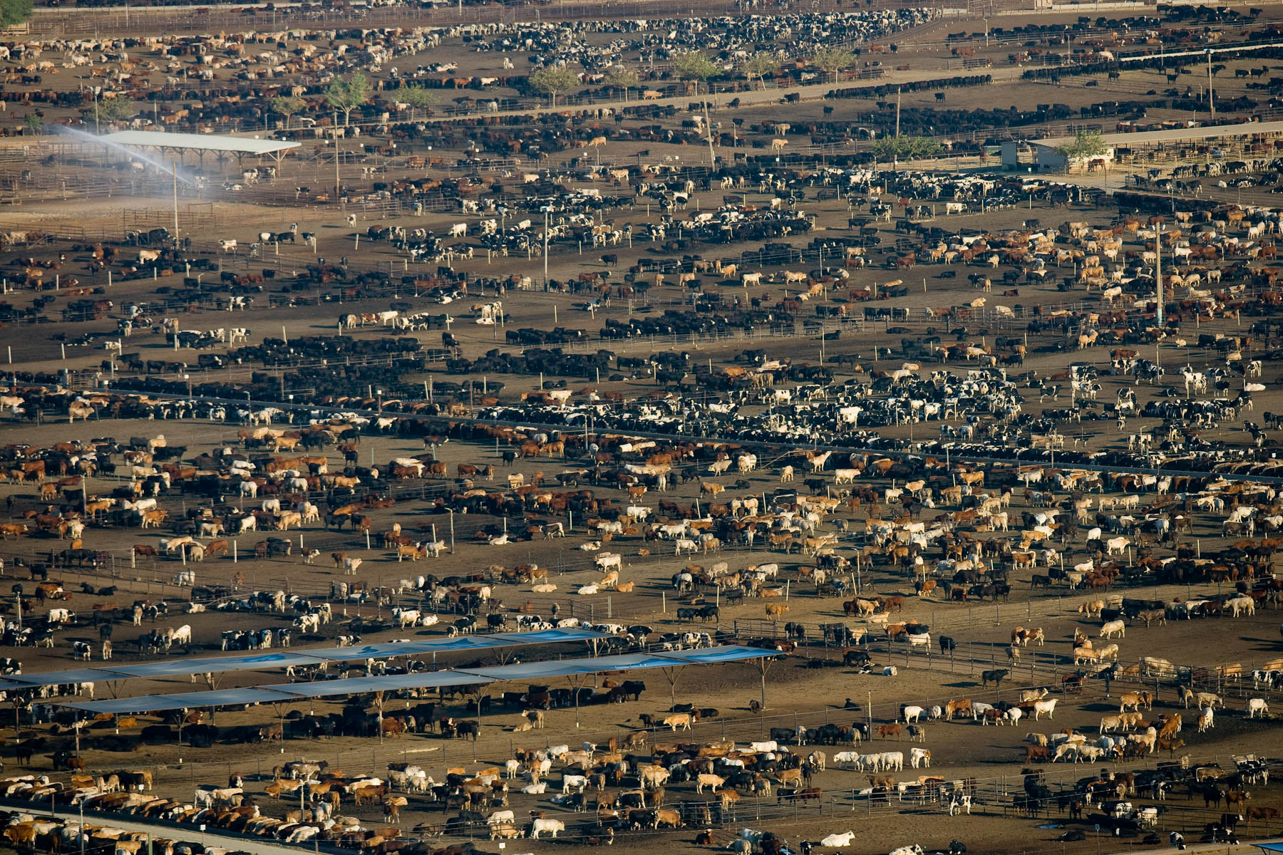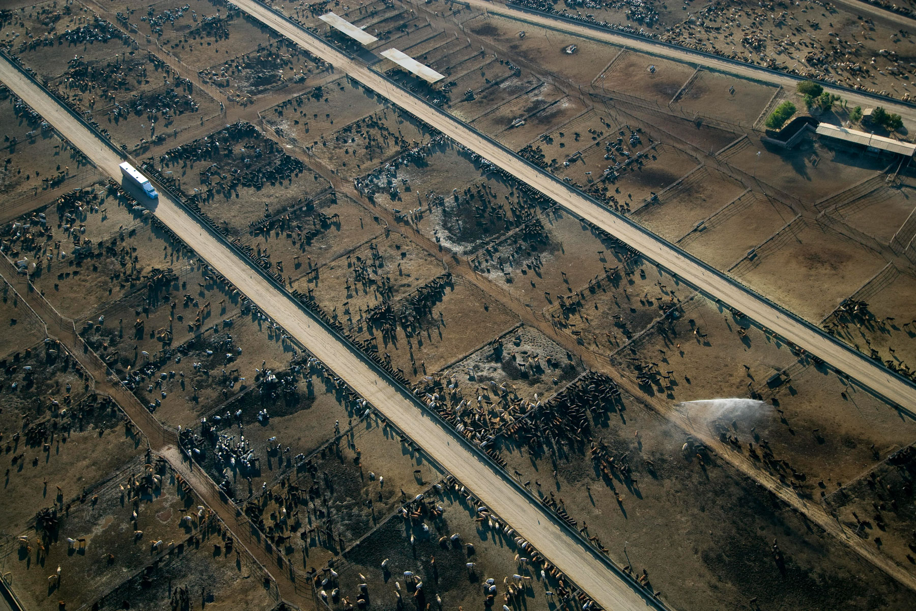 Feedlot near Bakersfield, California, United States (35°19' N - 120°16' W).
