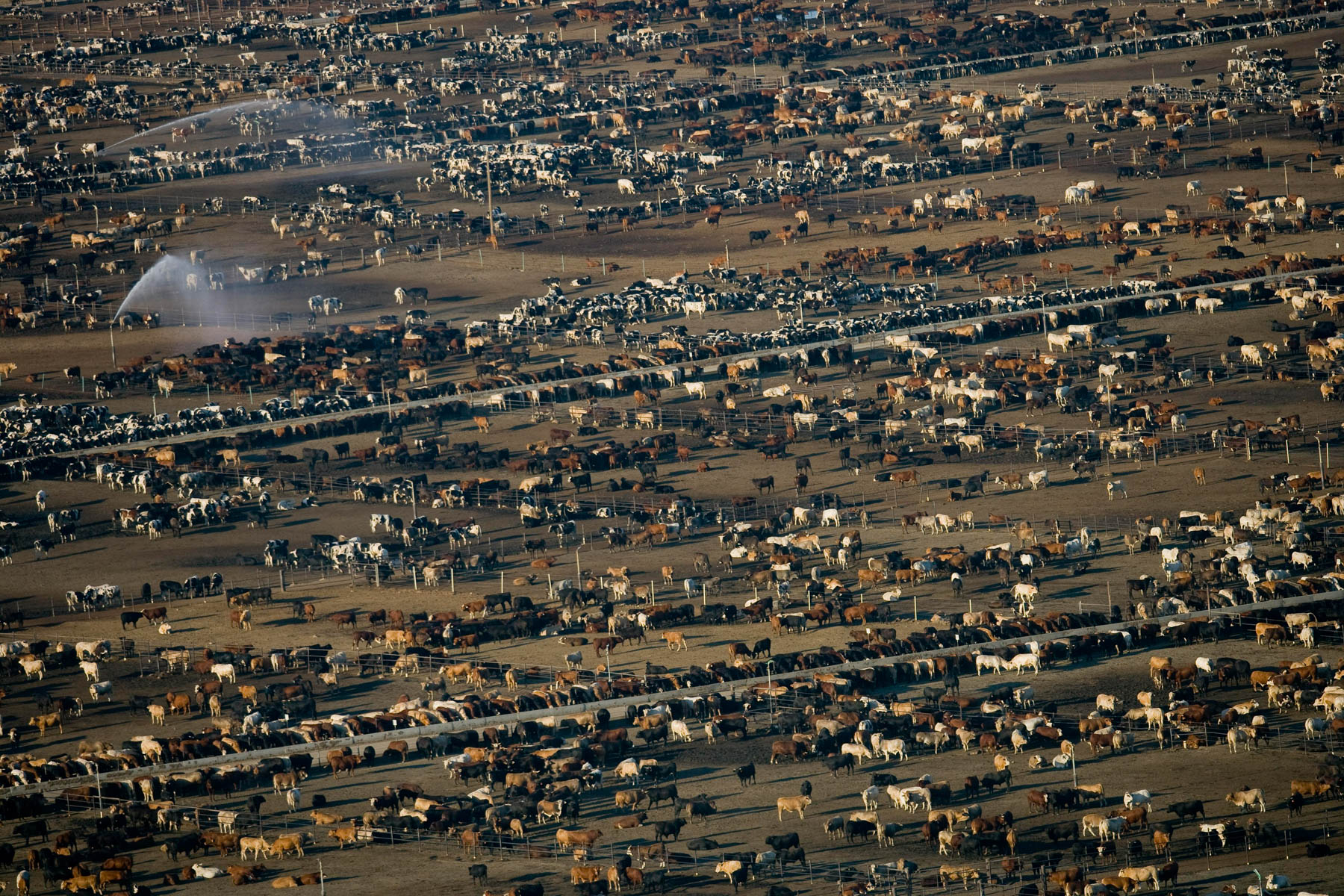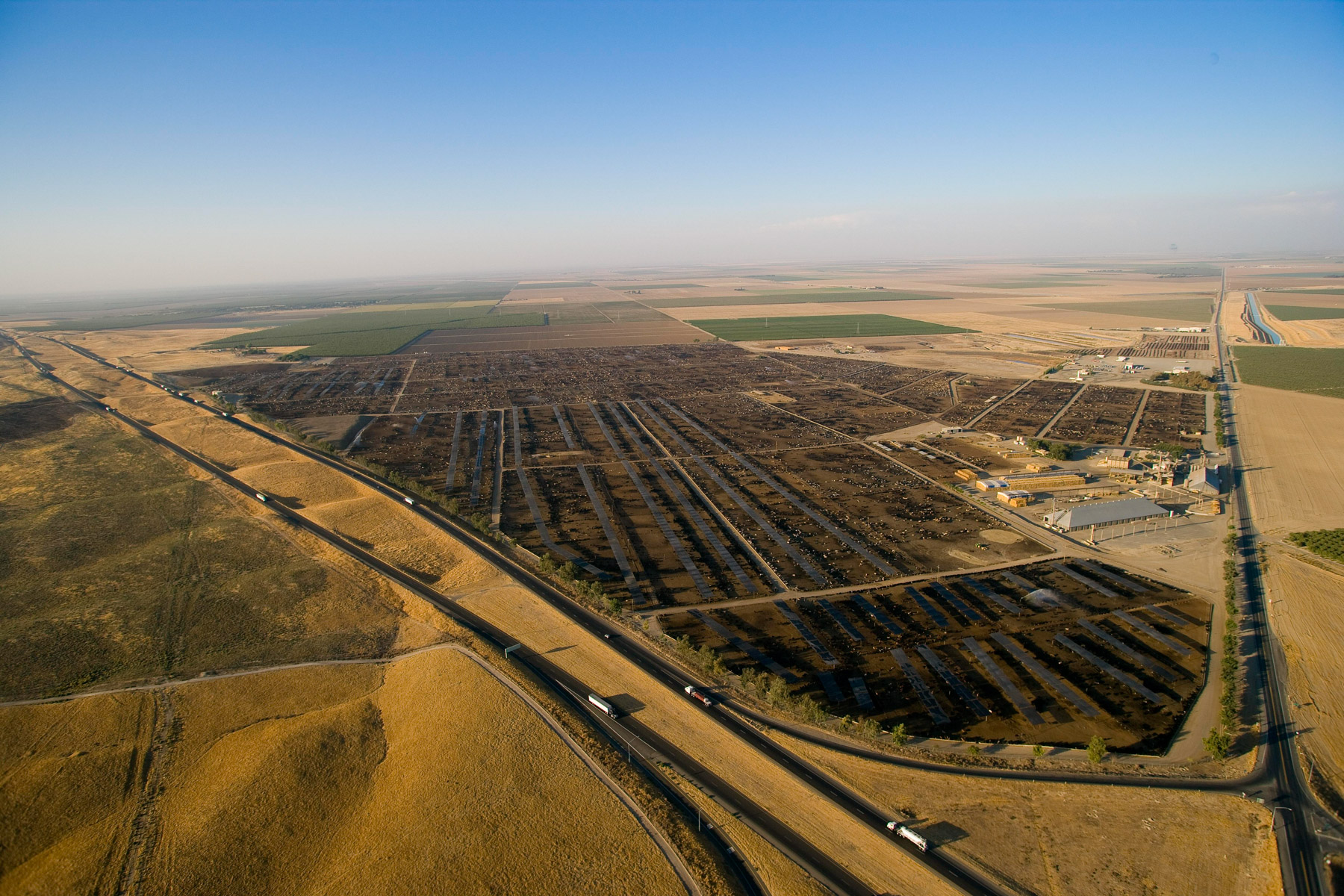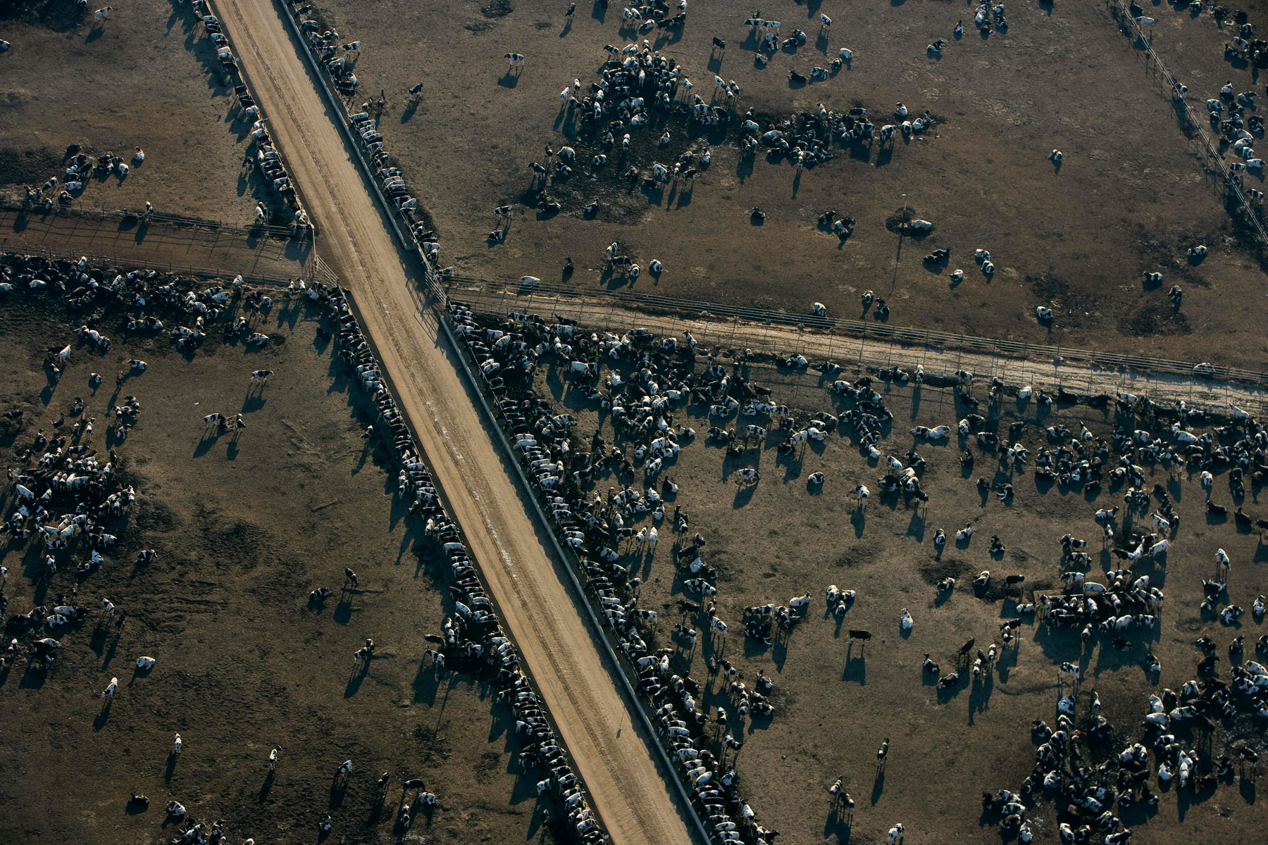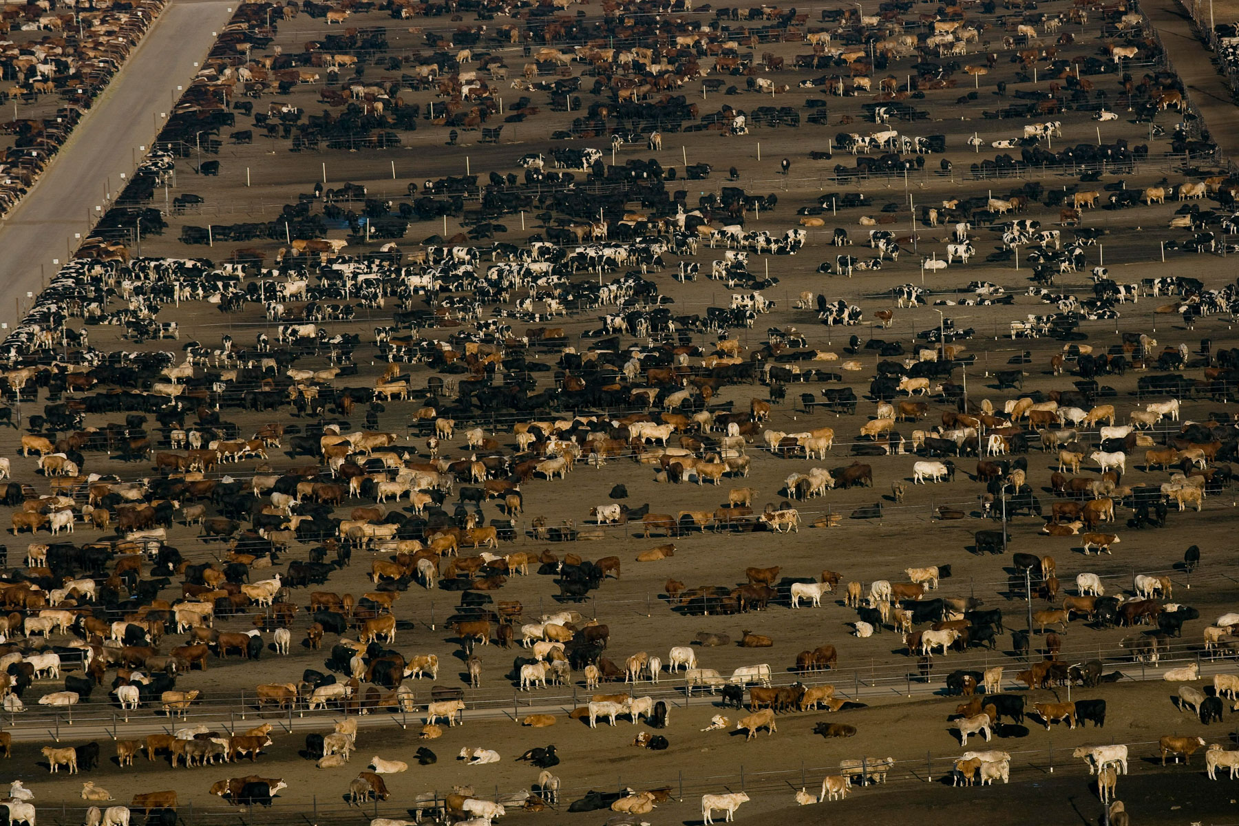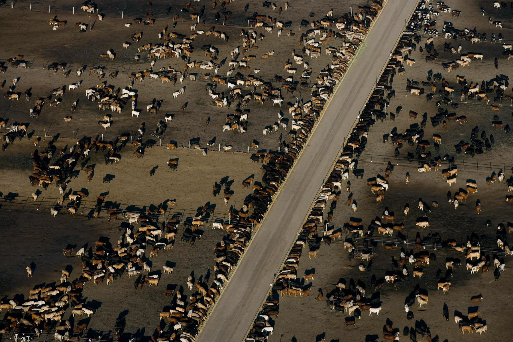 Feedlot near Bakersfield, California, United States (35°19' N - 120°16' W).