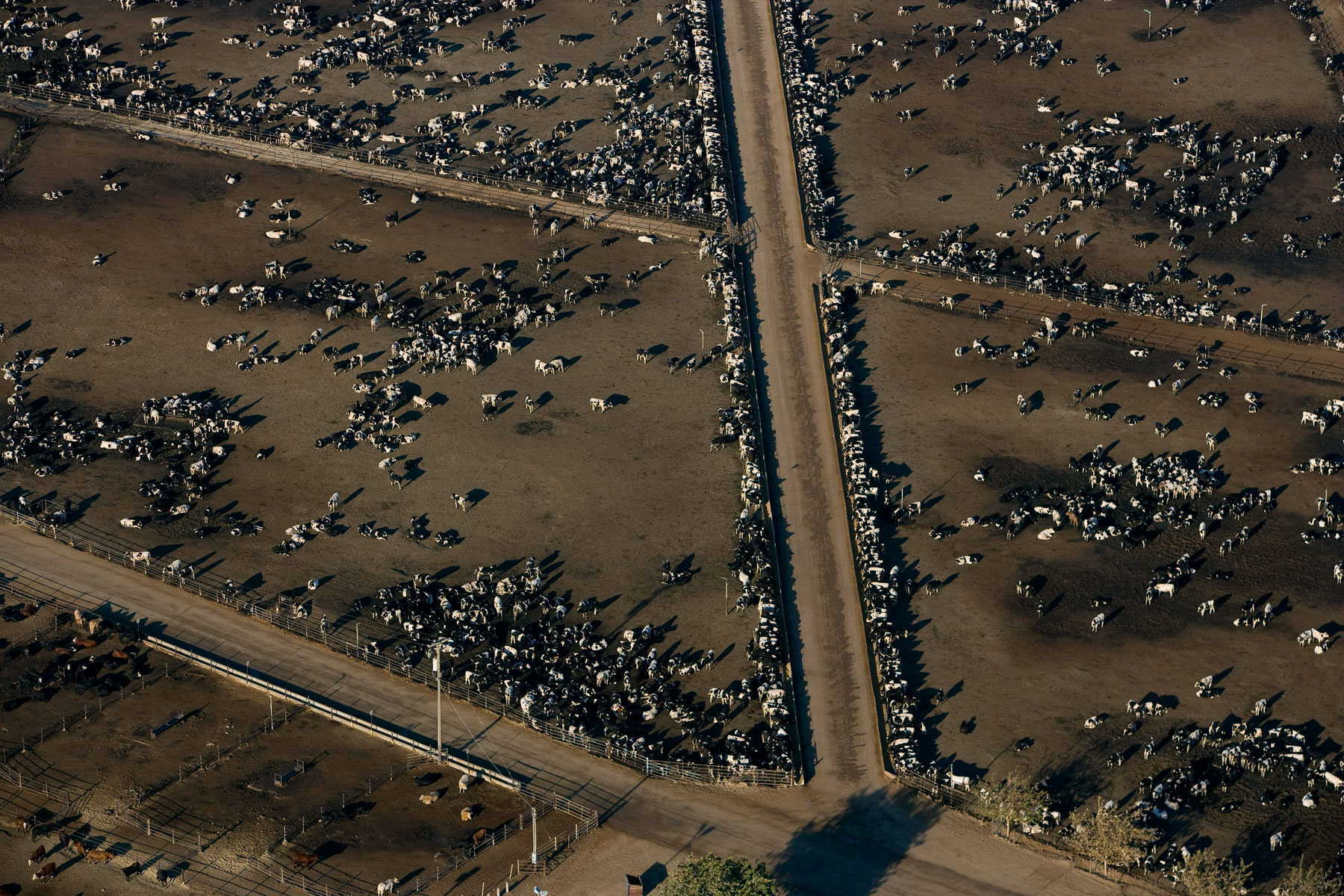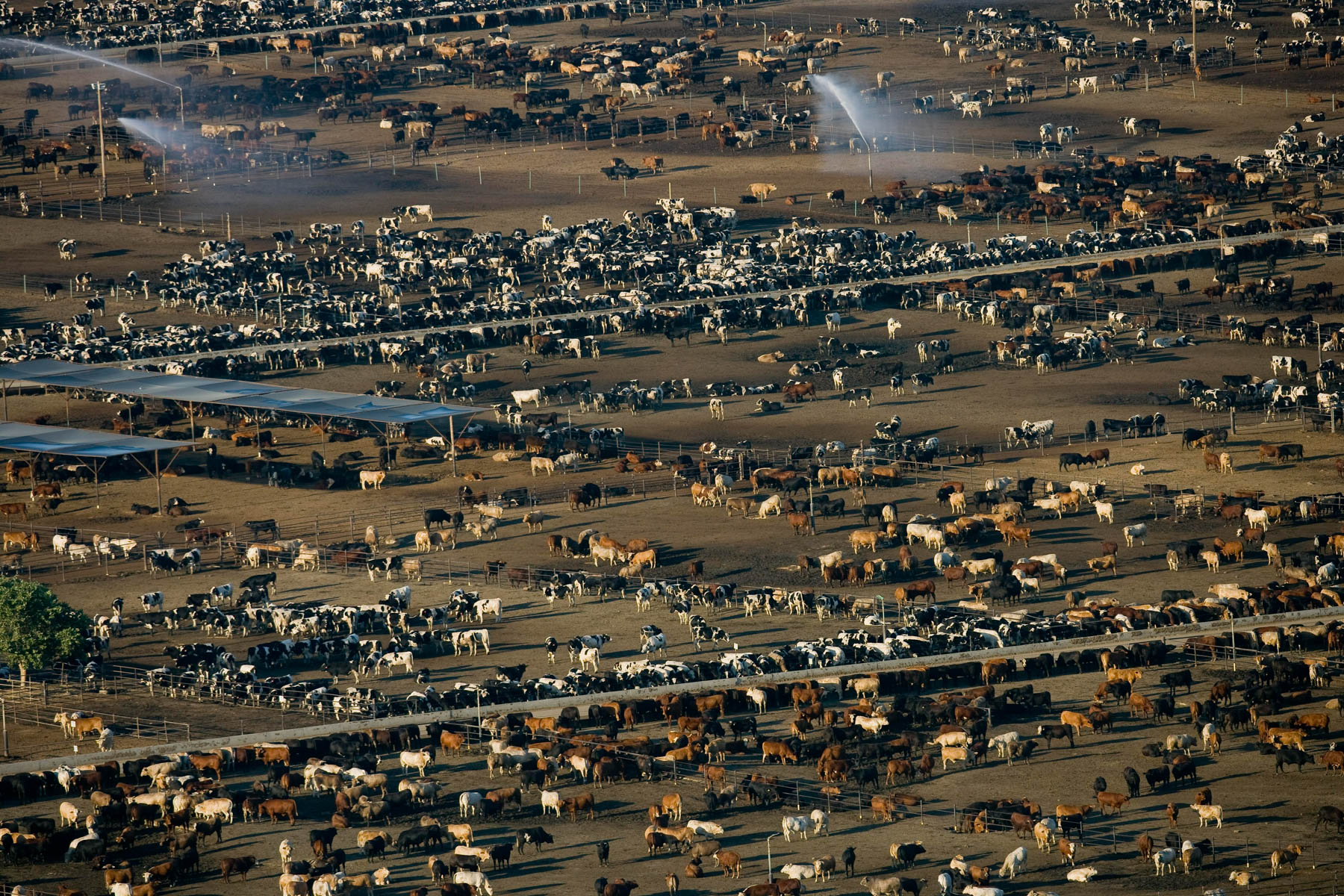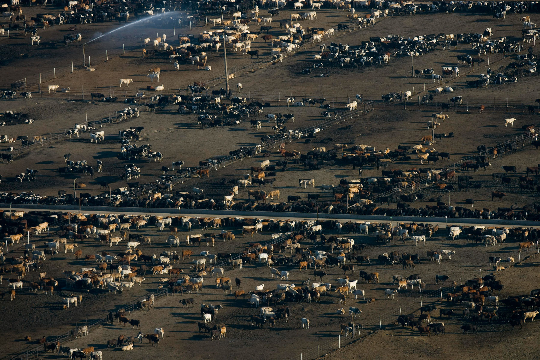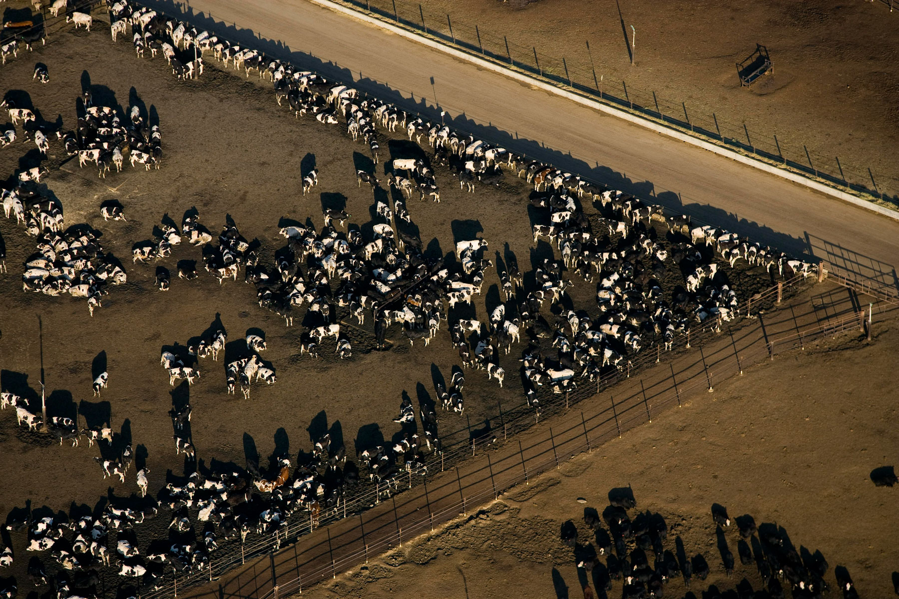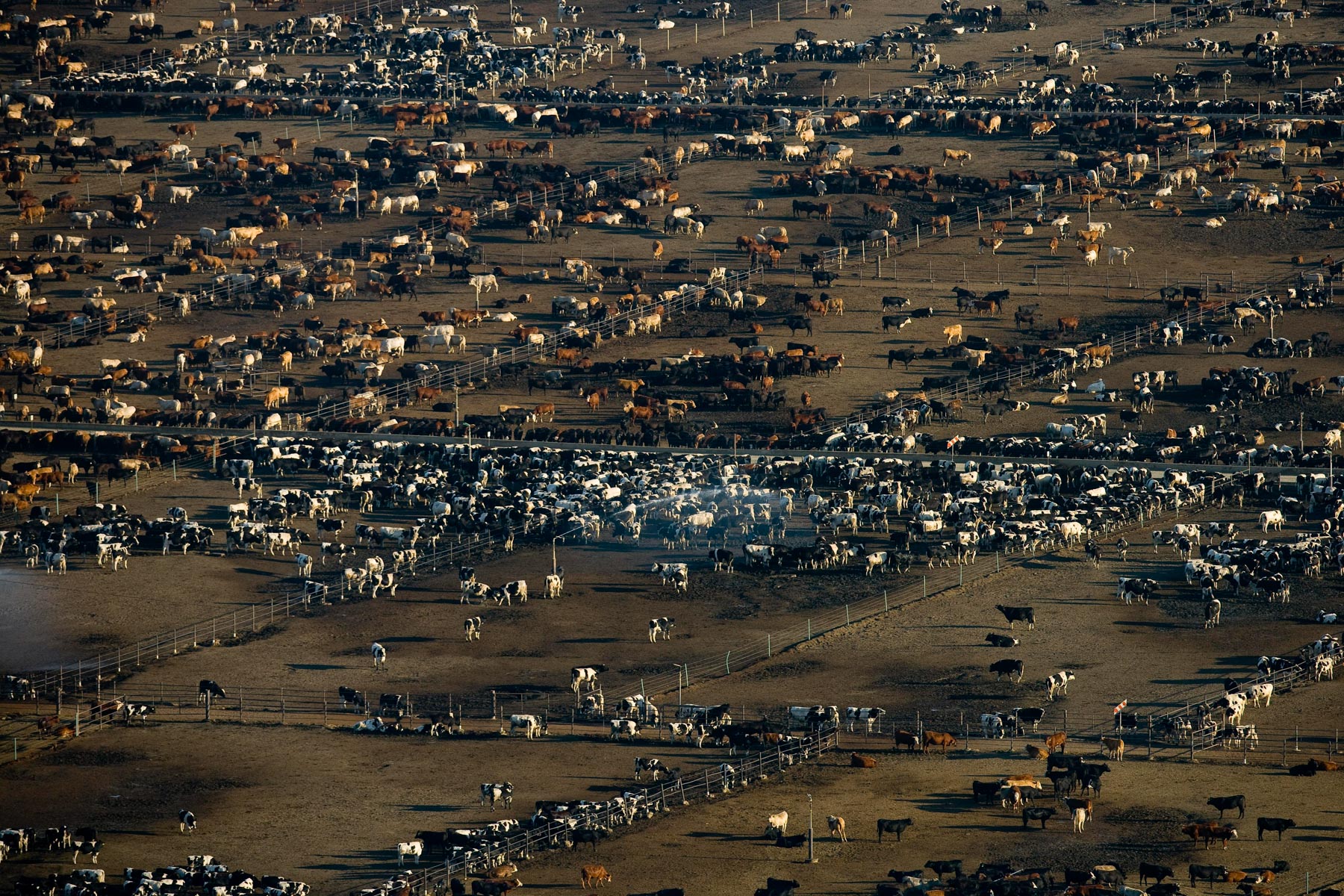 Feedlot near Bakersfield, California, United States (35°19' N - 120°16' W).