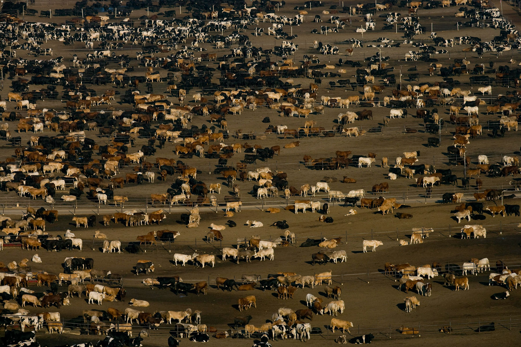 Feedlot à proximité de Bakersfield, Californie, États Unis (35°19’ N - 120°16’ O).