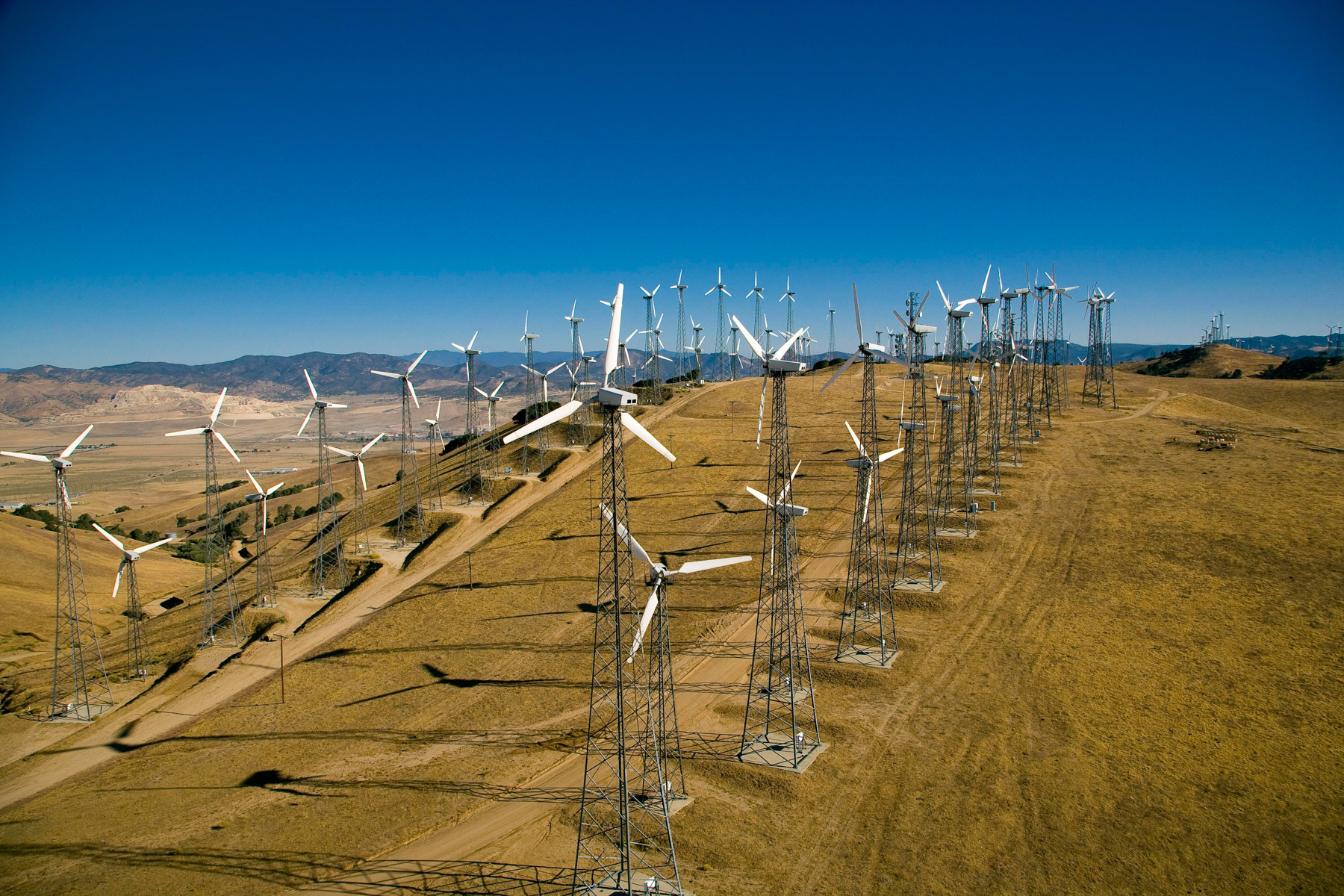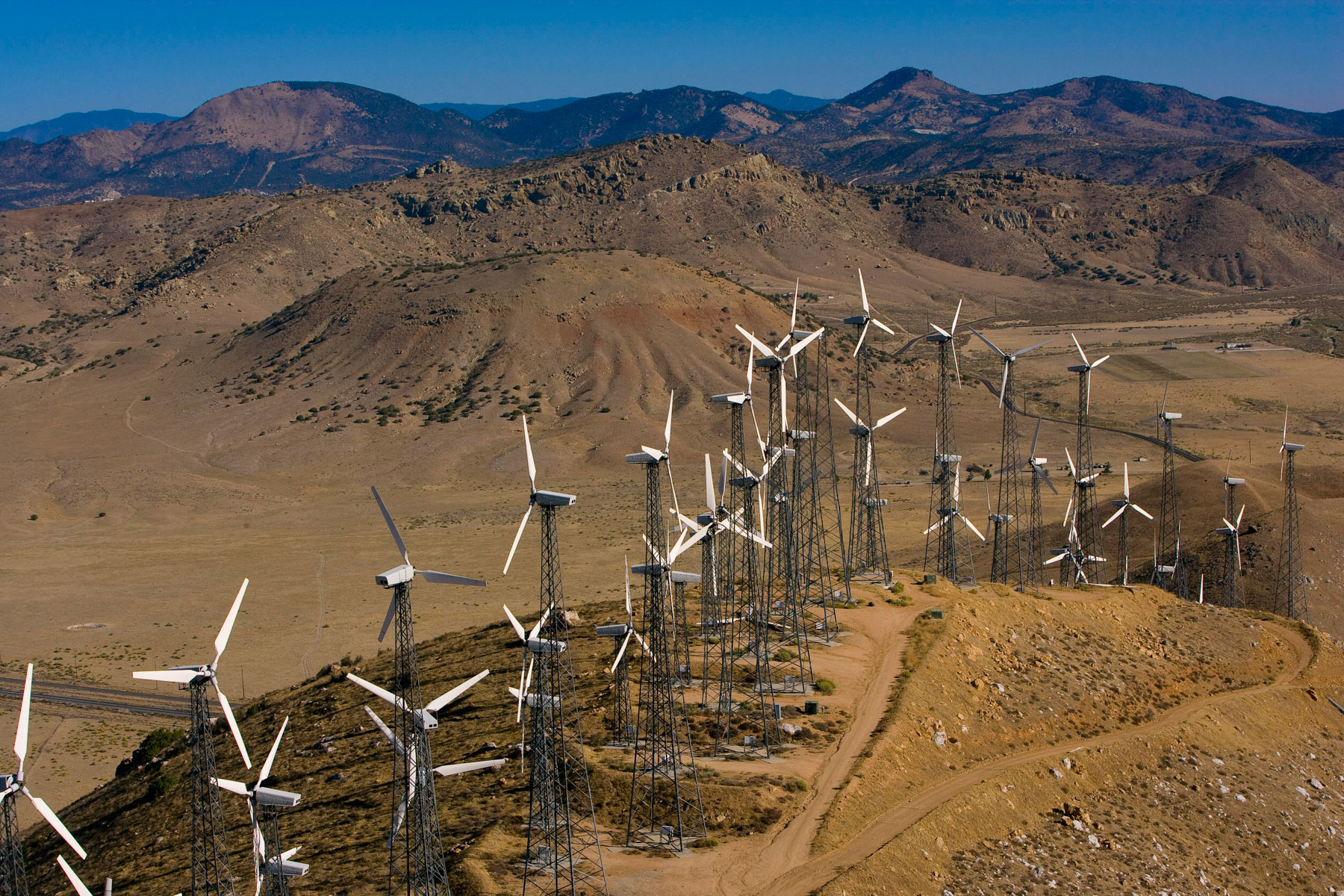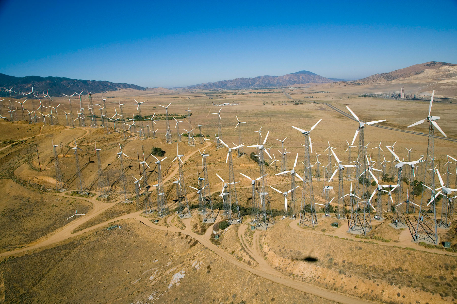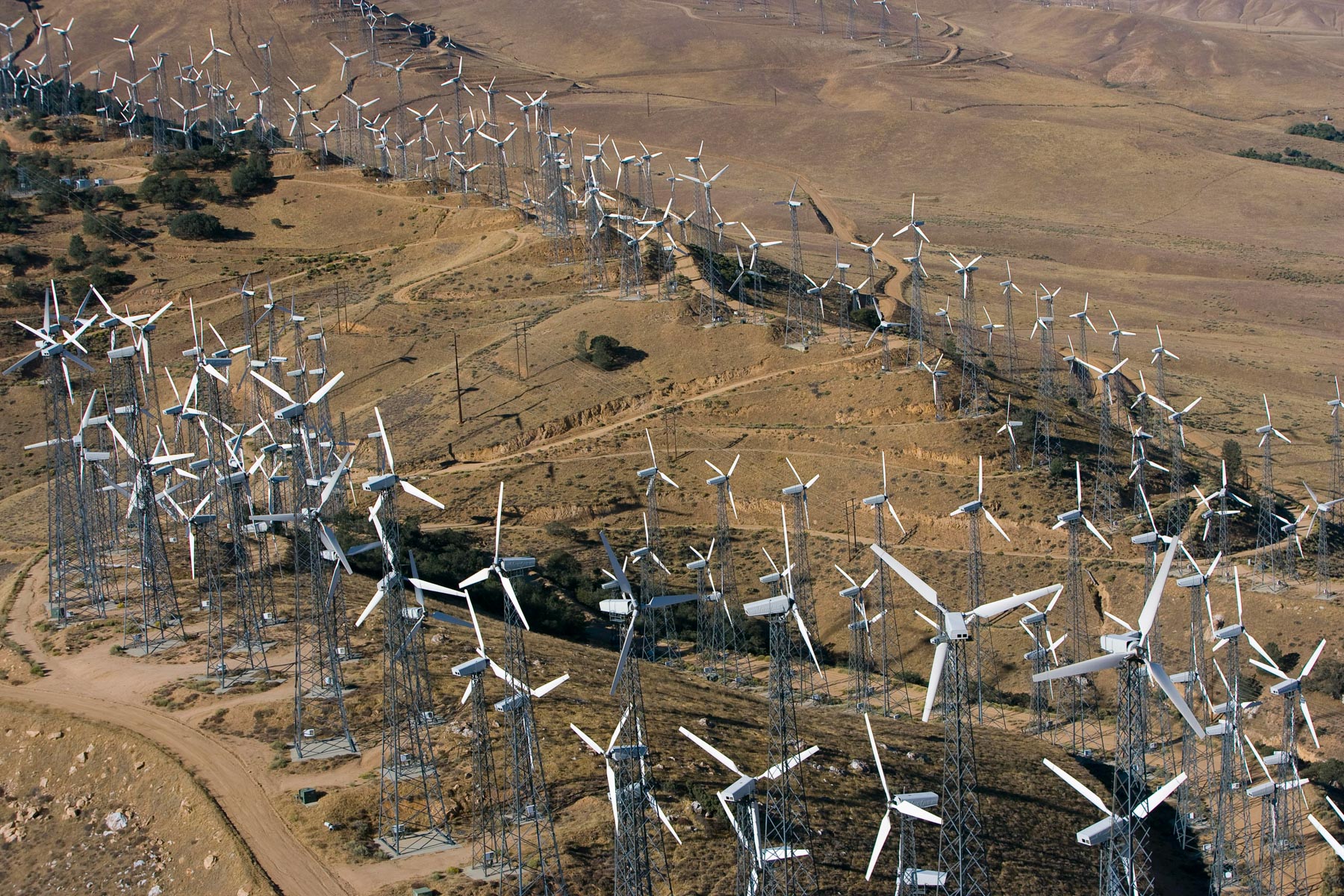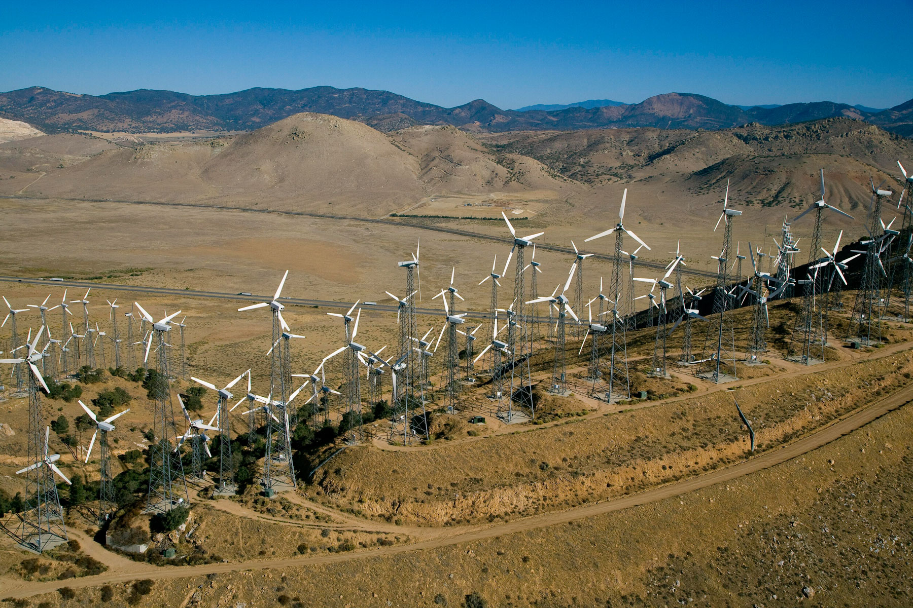 Éoliennes de San Gorgonio Pass, dans les environs de Palm Spring, Californie, États-Unis (33°55’ N – 116°42’ O).