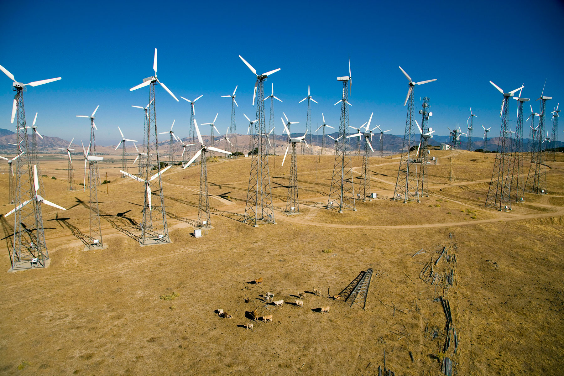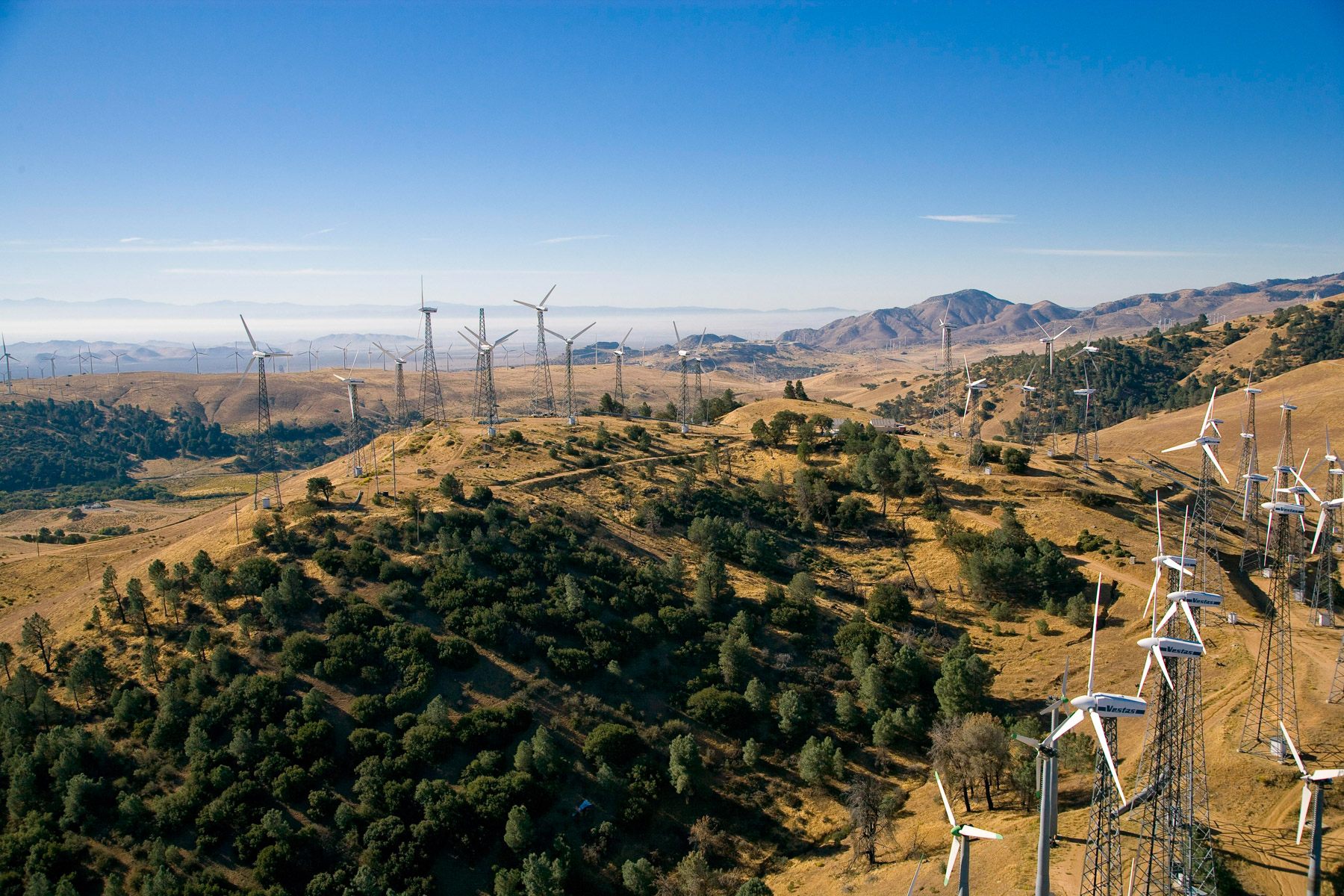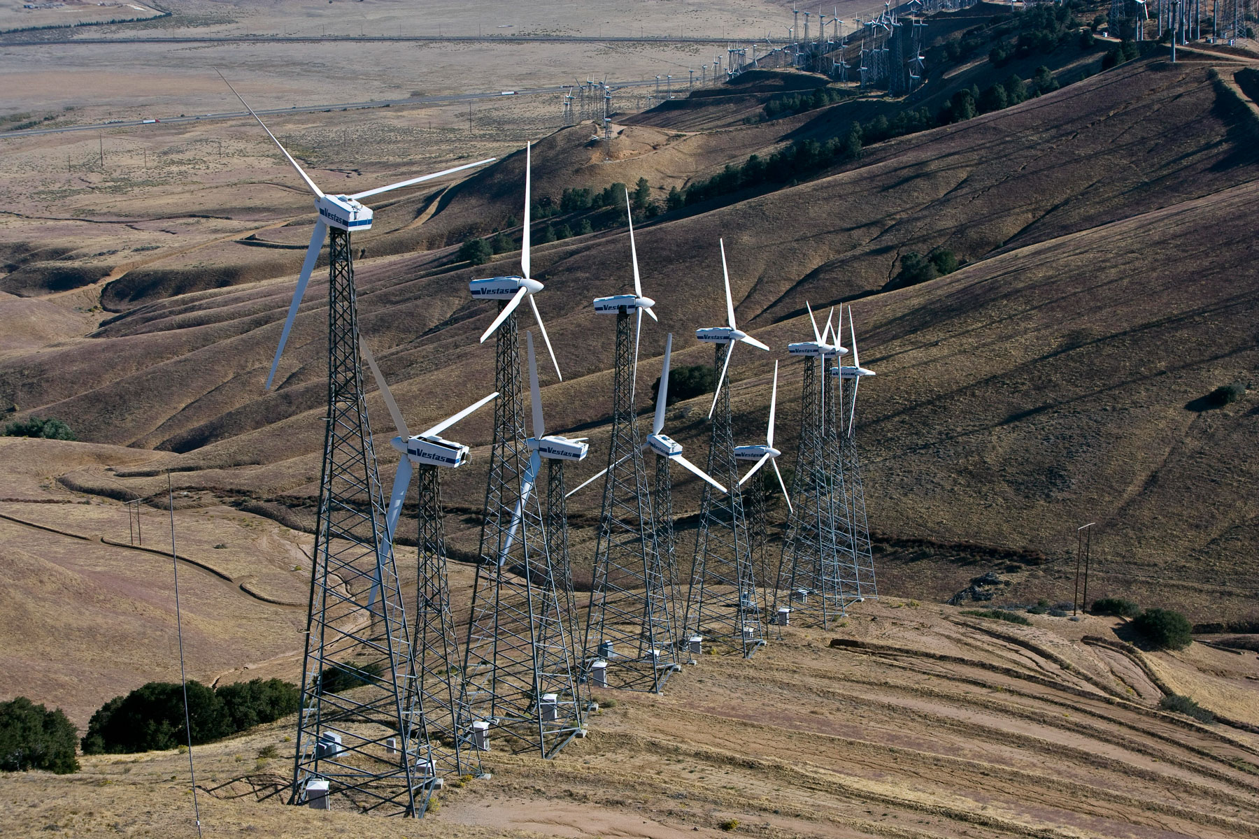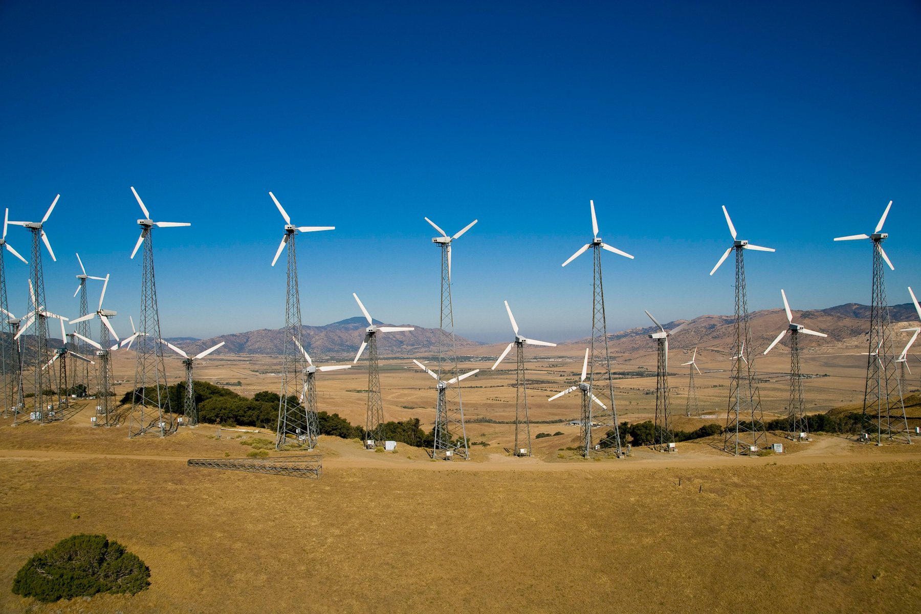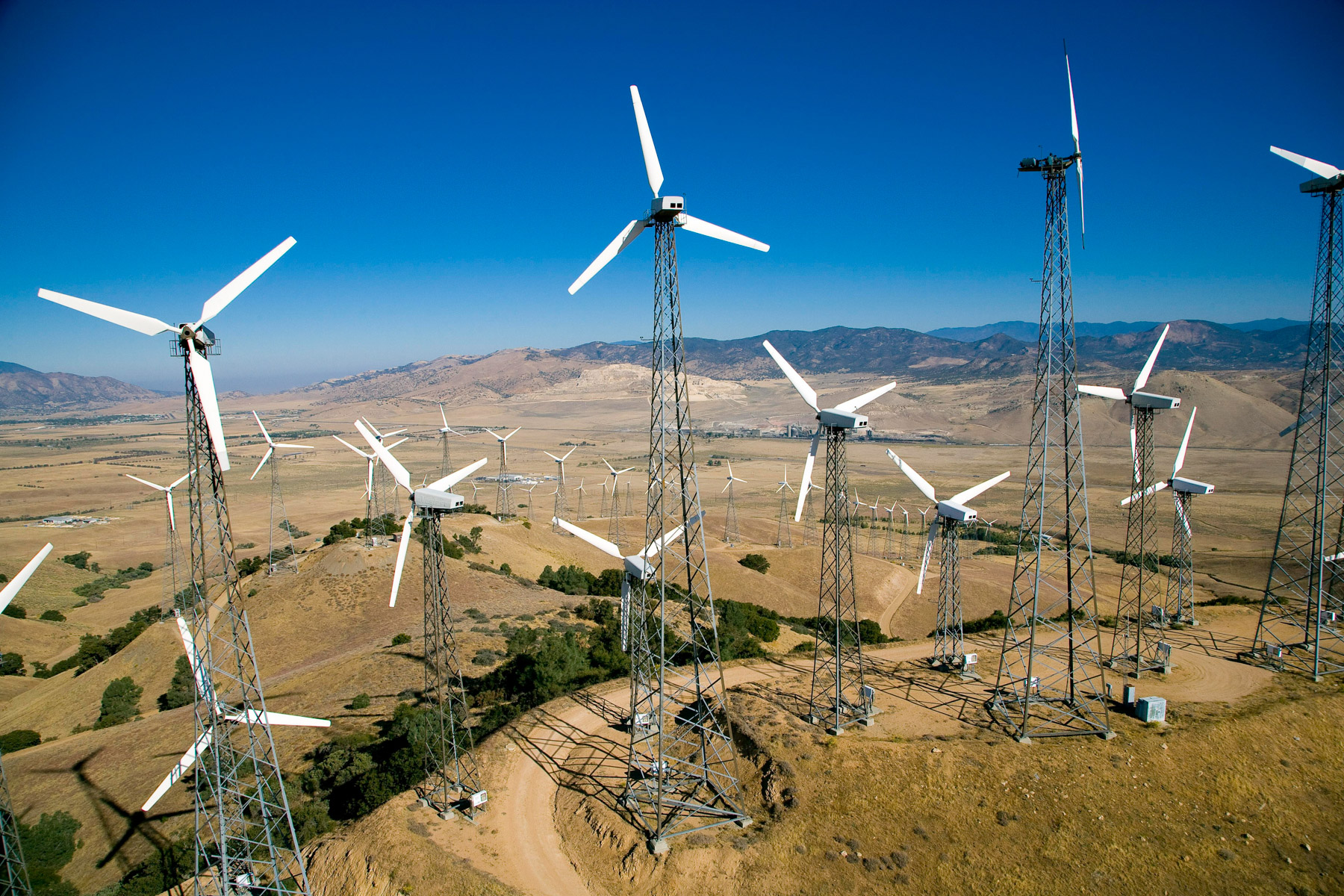 Éoliennes de San Gorgonio Pass, dans les environs de Palm Spring, Californie, États-Unis (33°55’ N – 116°42’ O).