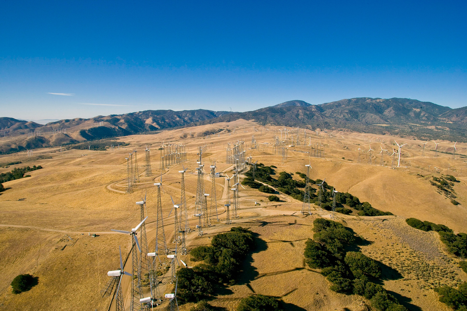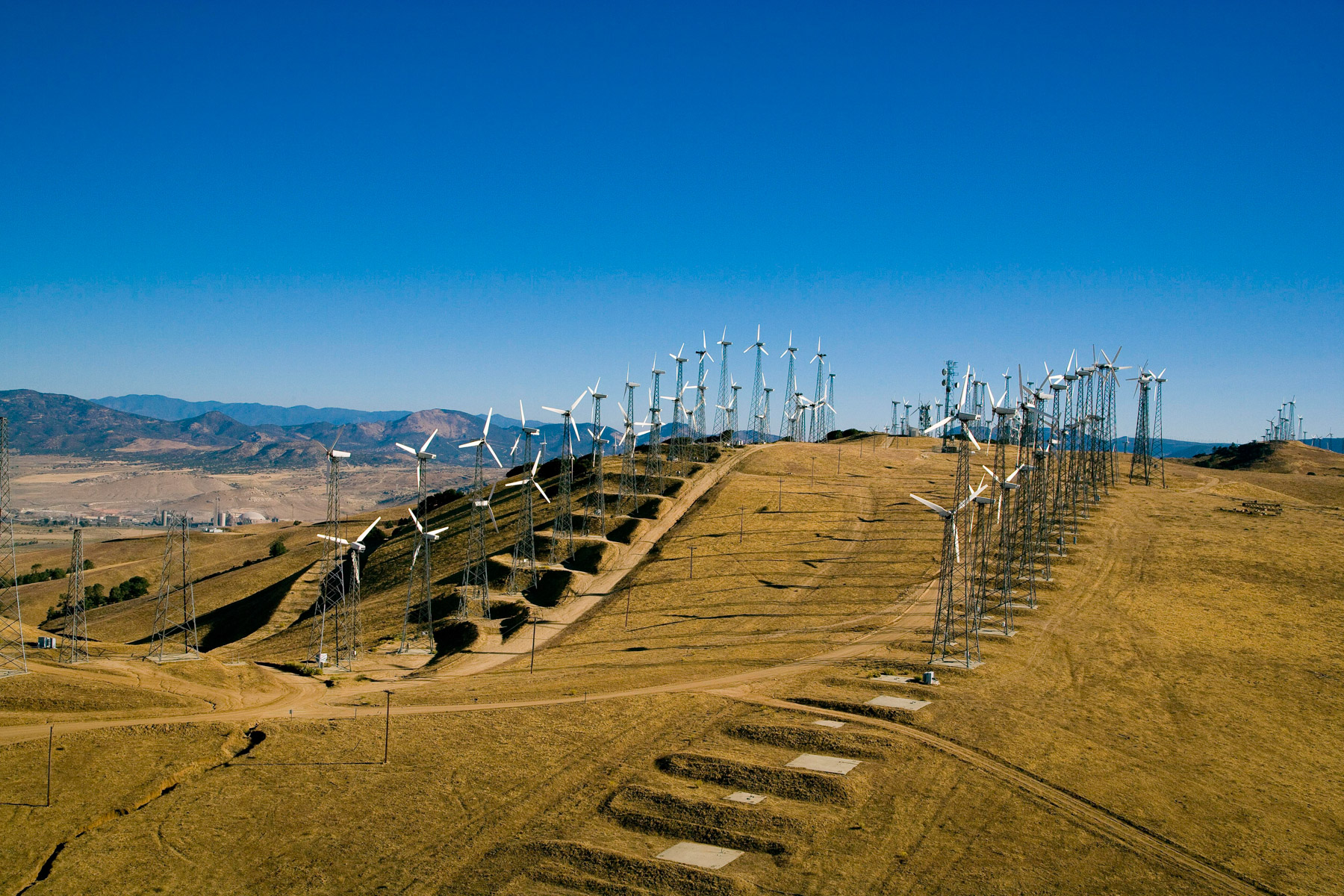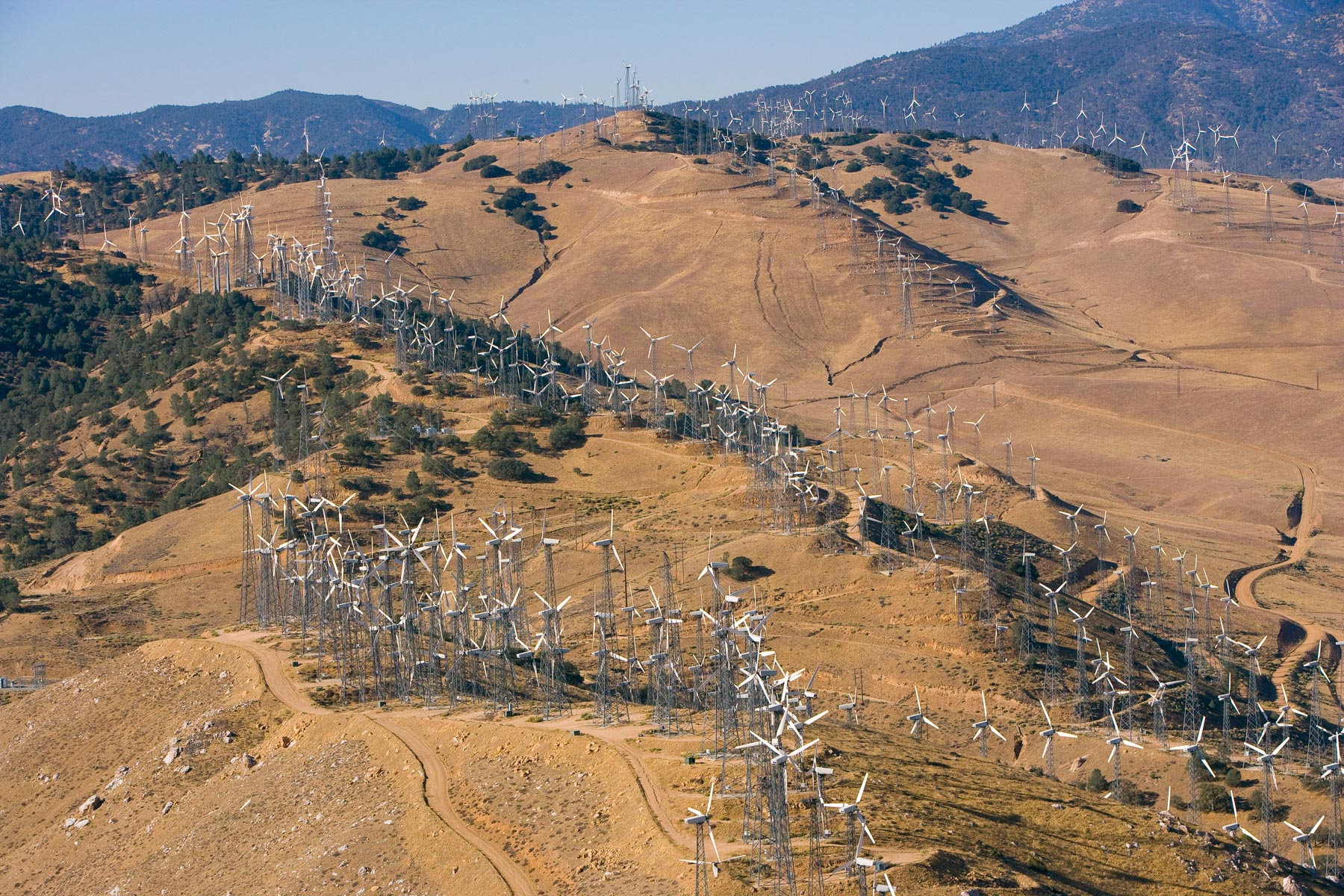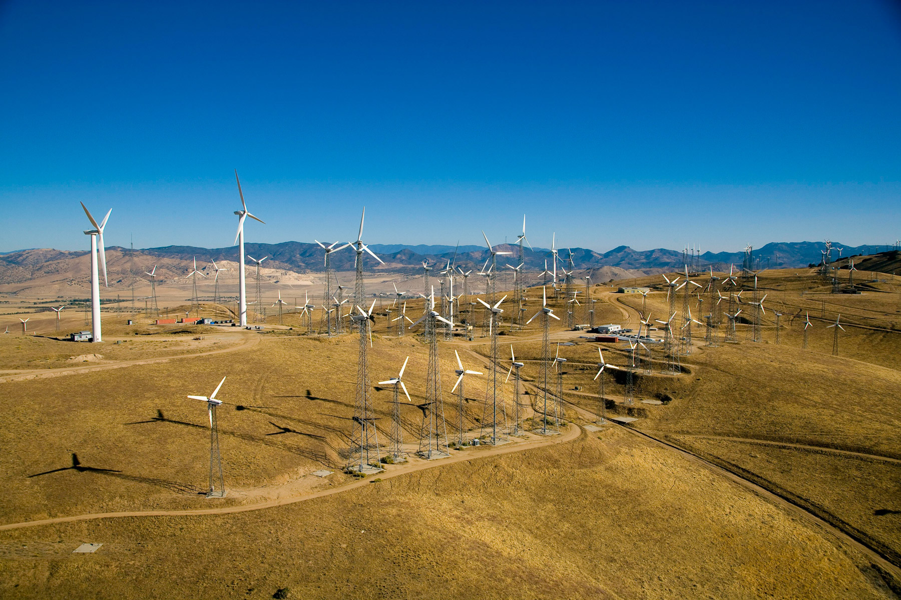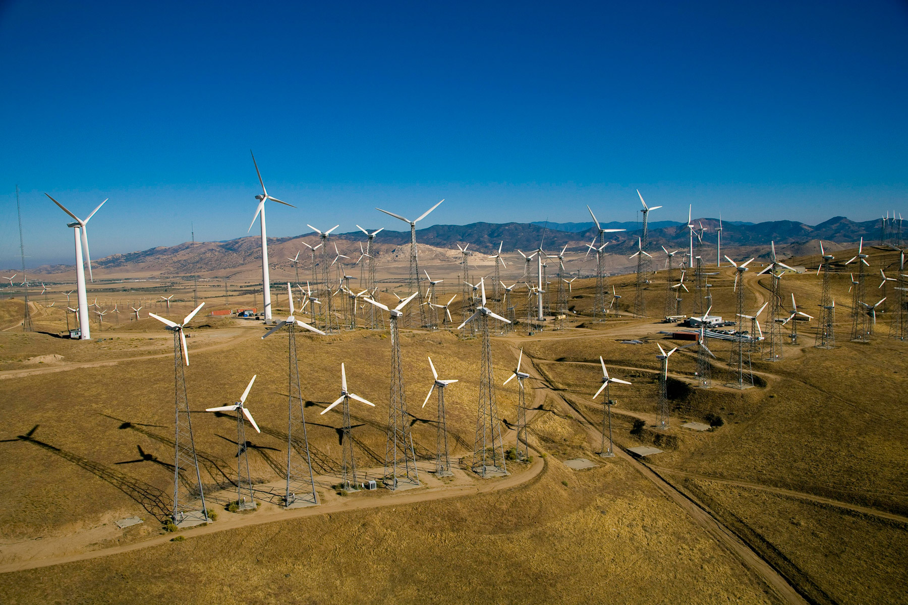 Éoliennes de San Gorgonio Pass, dans les environs de Palm Spring, Californie, États-Unis (33°55’ N – 116°42’ O).
