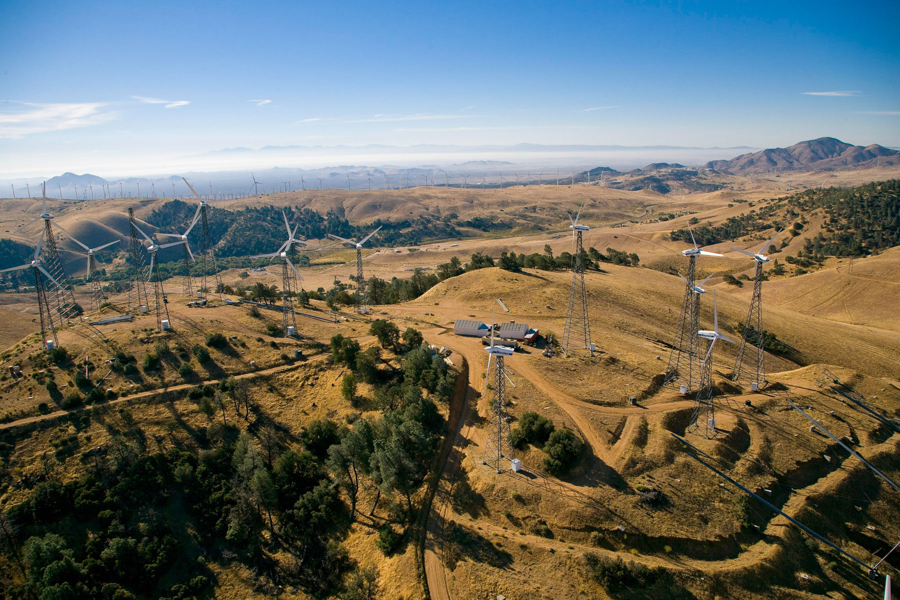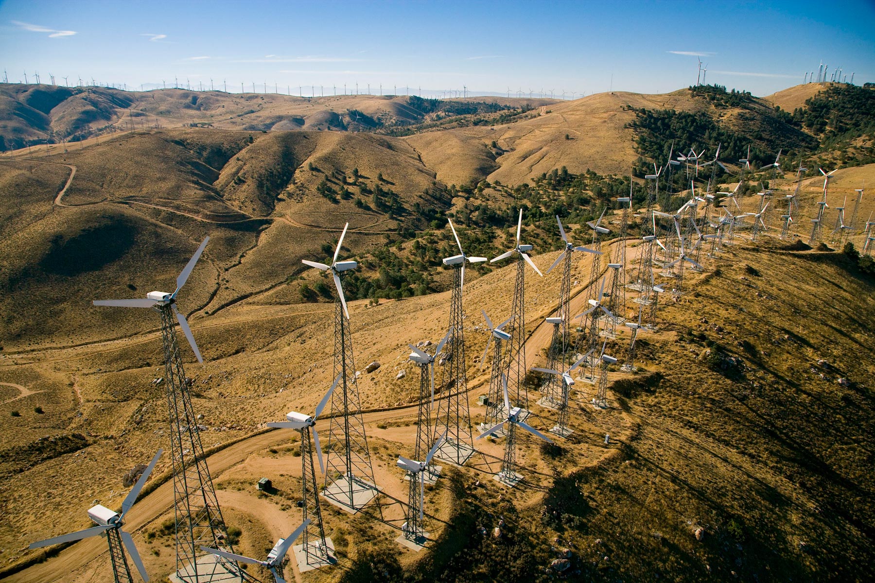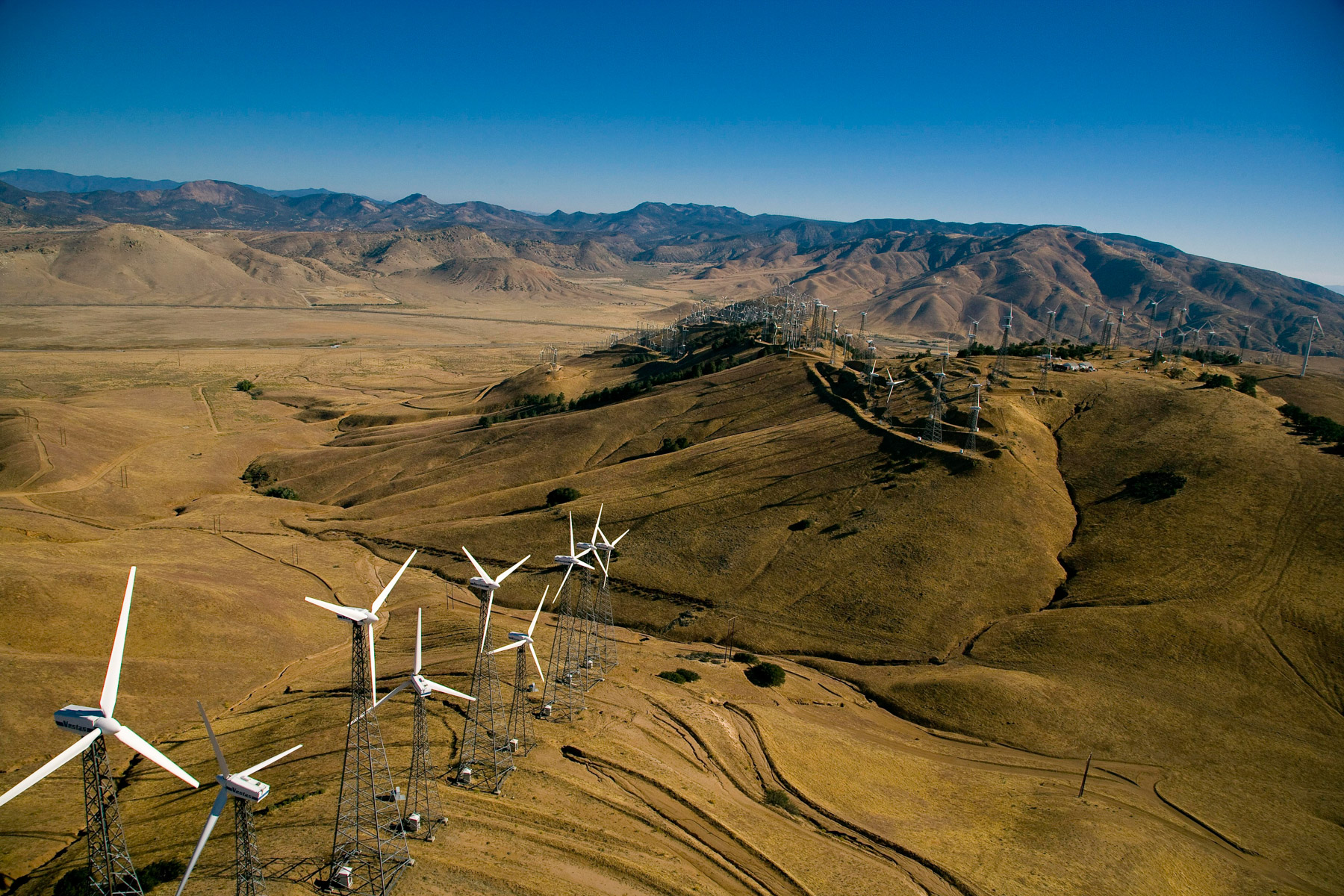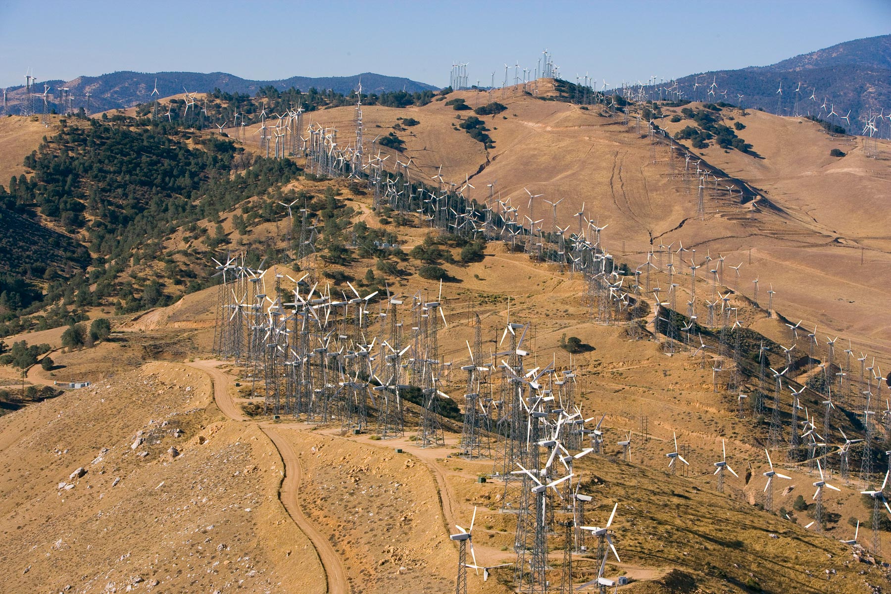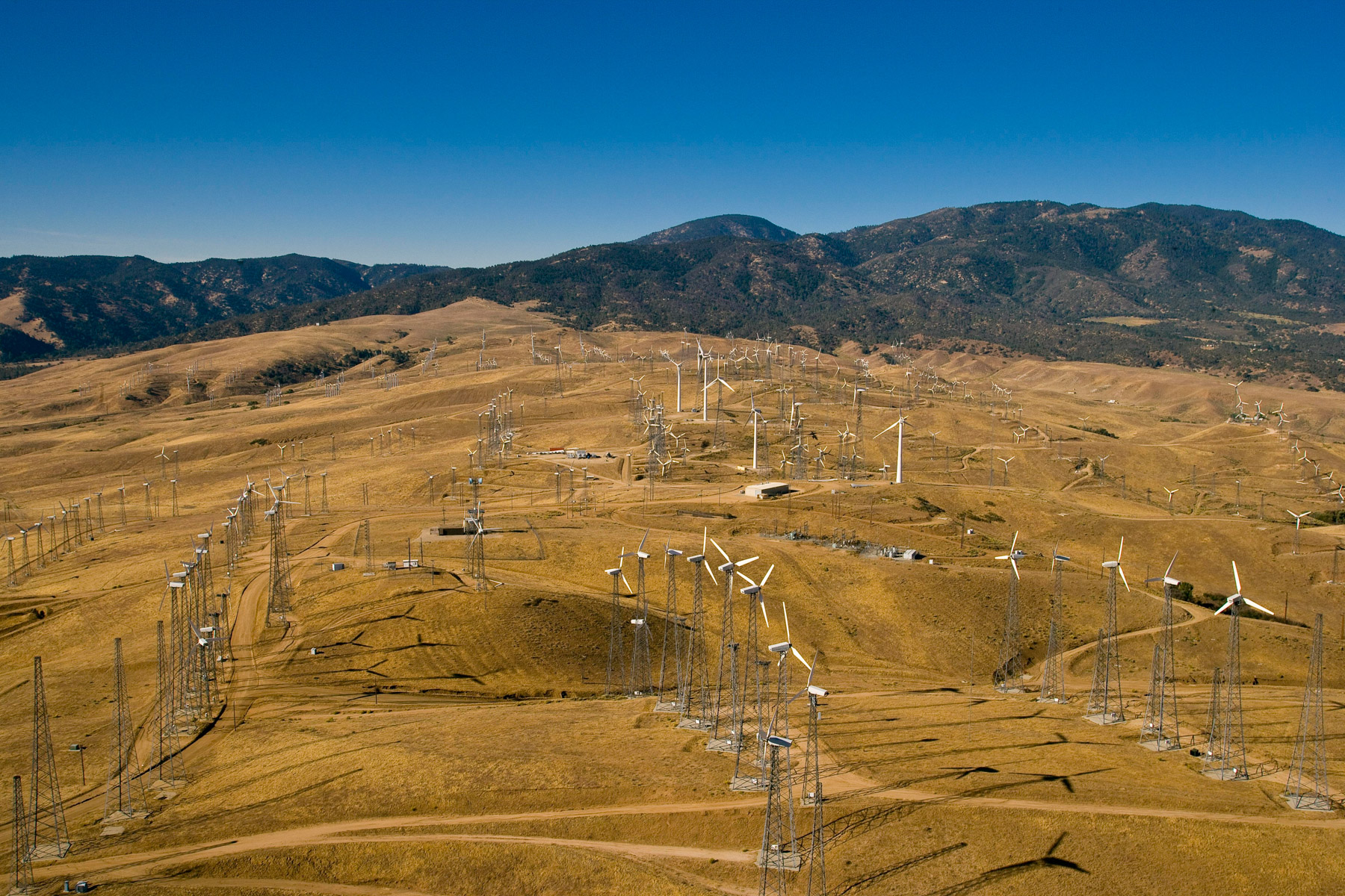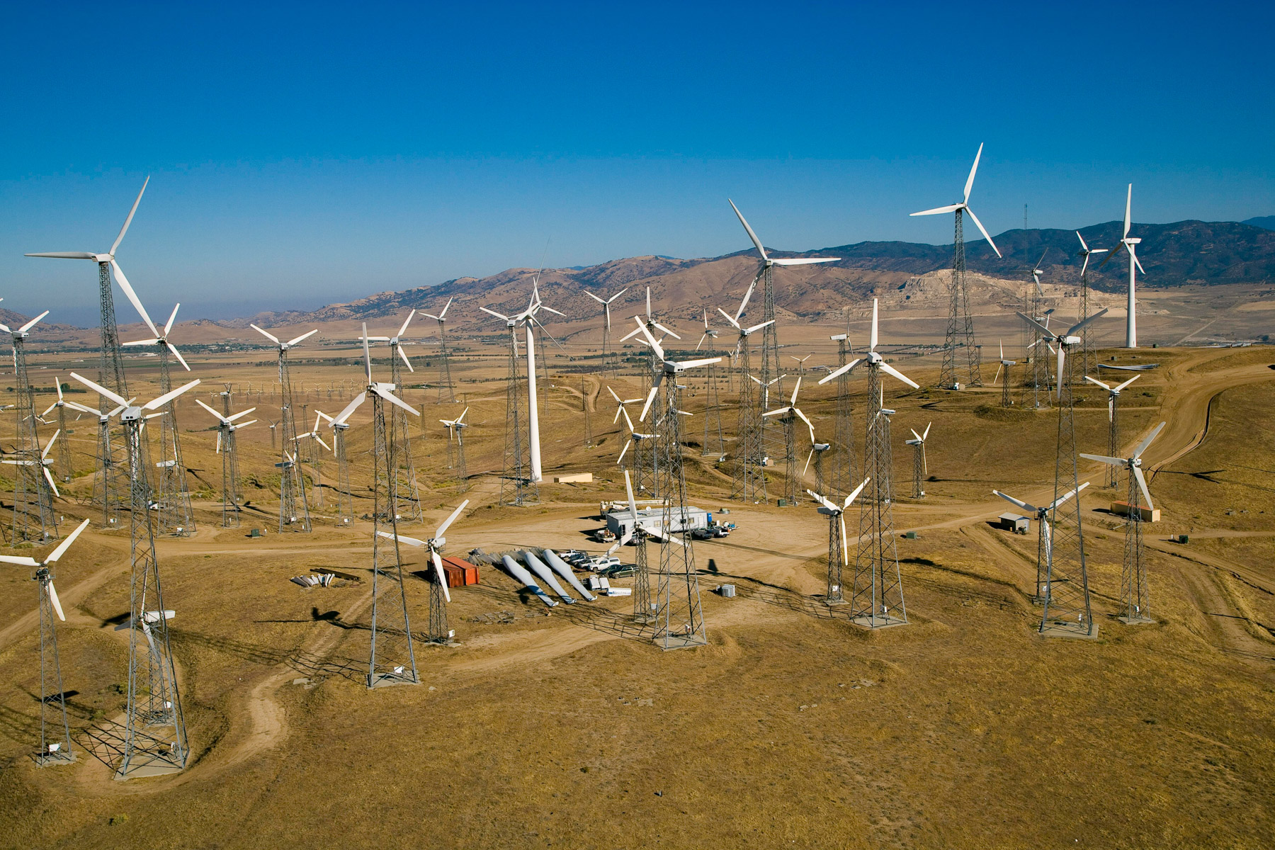 Éoliennes de San Gorgonio Pass, dans les environs de Palm Spring, Californie, États-Unis (33°55’ N – 116°42’ O).